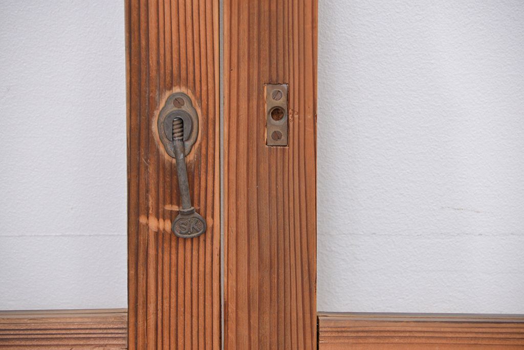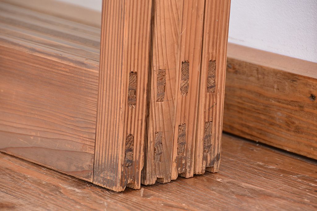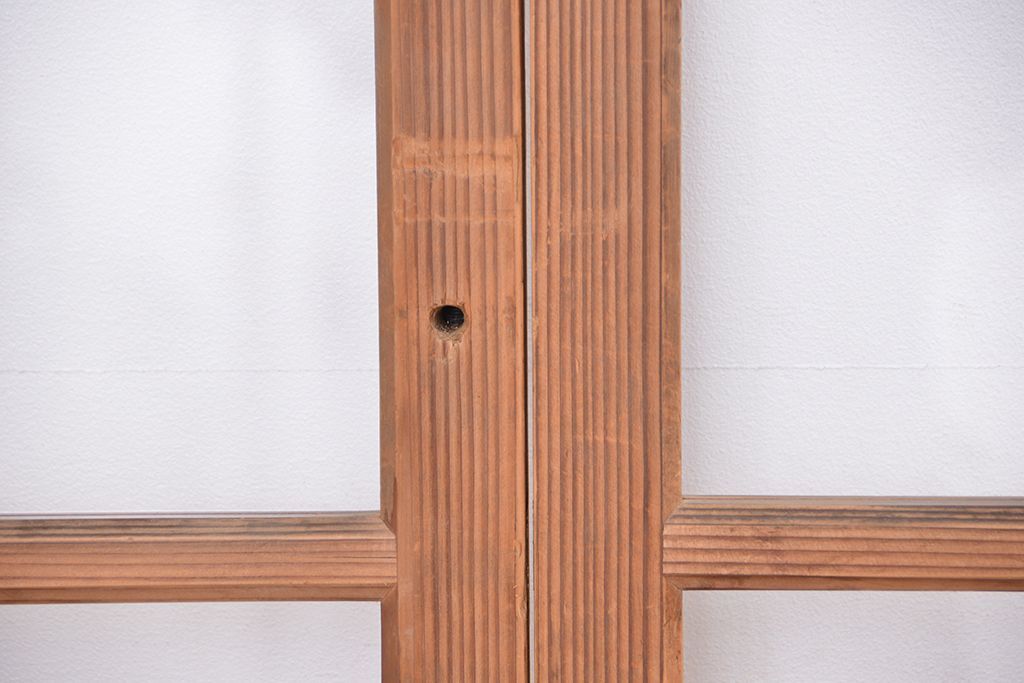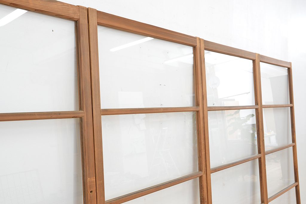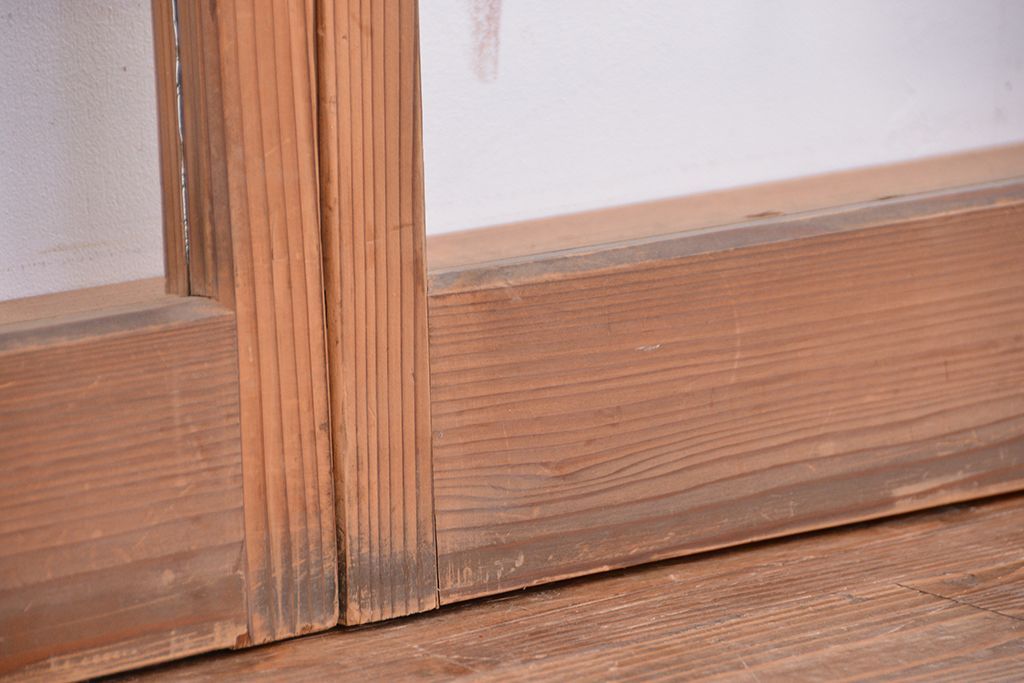 アンティーク 古い木味のレトロなシンプルガラス引き戸 4枚セット(ガラス戸、建具)