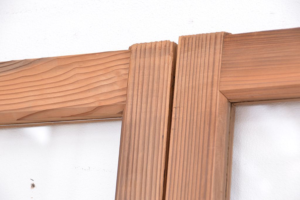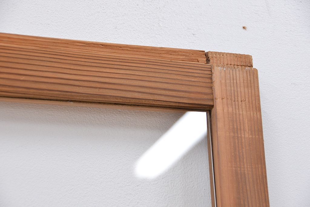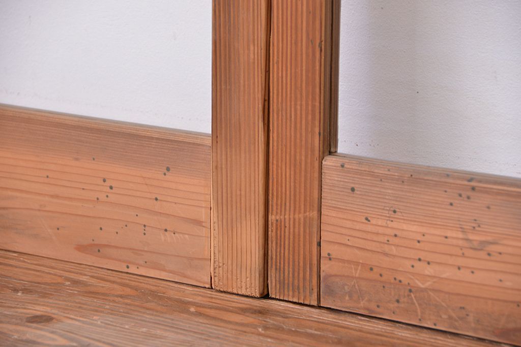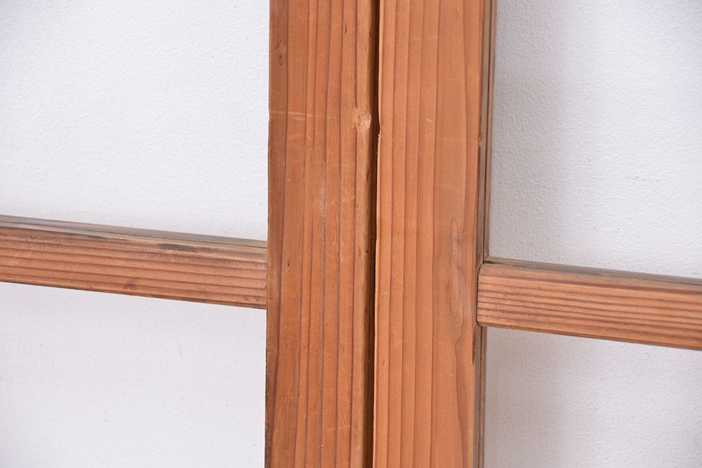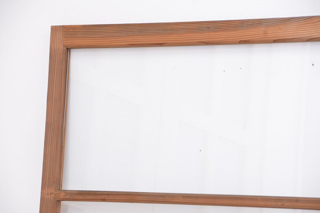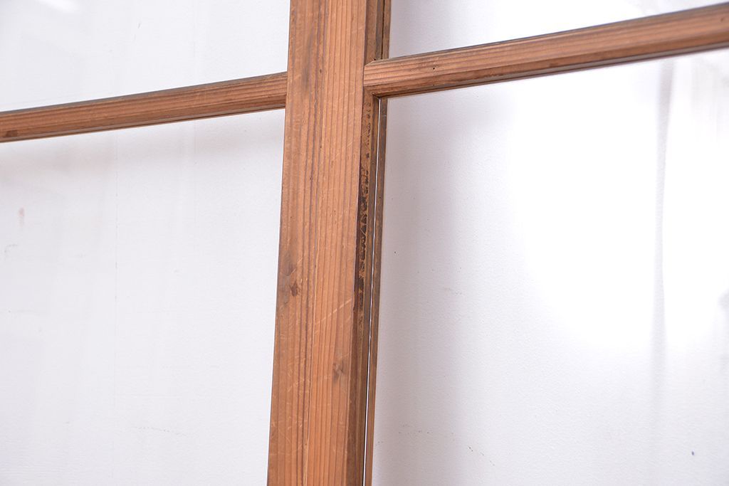 アンティーク 古い木味のレトロなシンプルガラス引き戸 4枚セット(ガラス戸、建具)です。