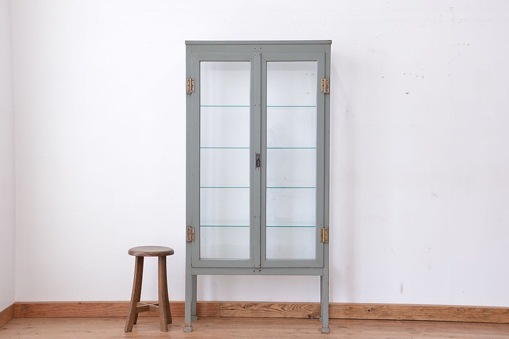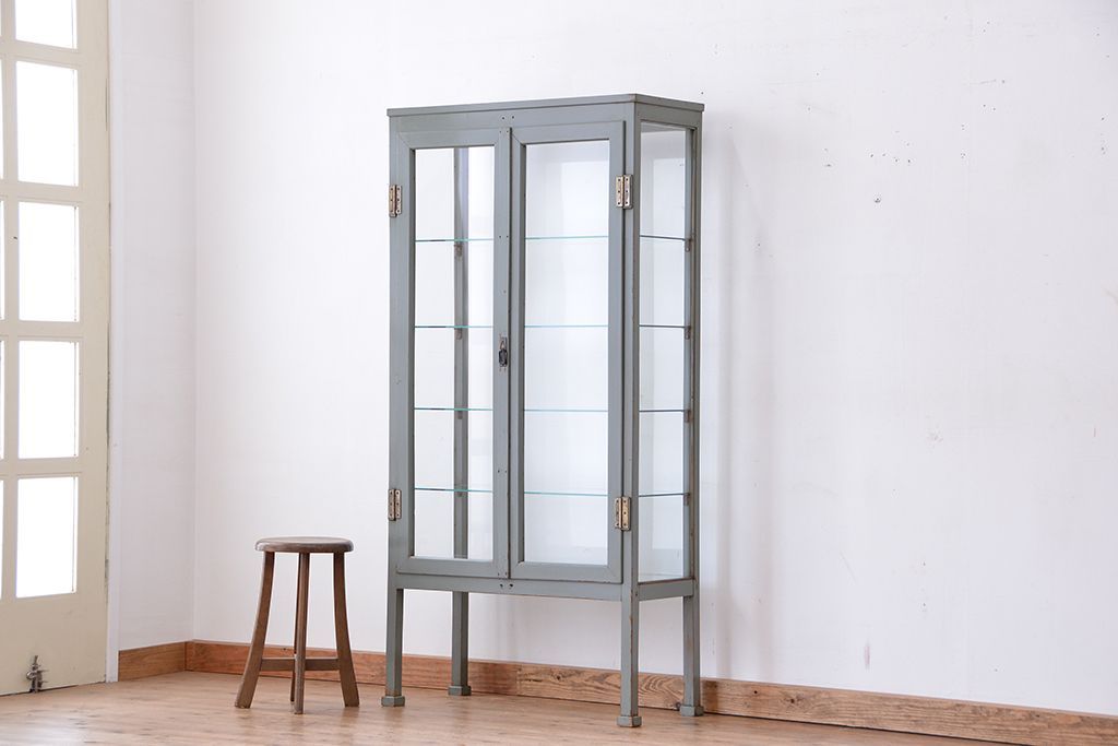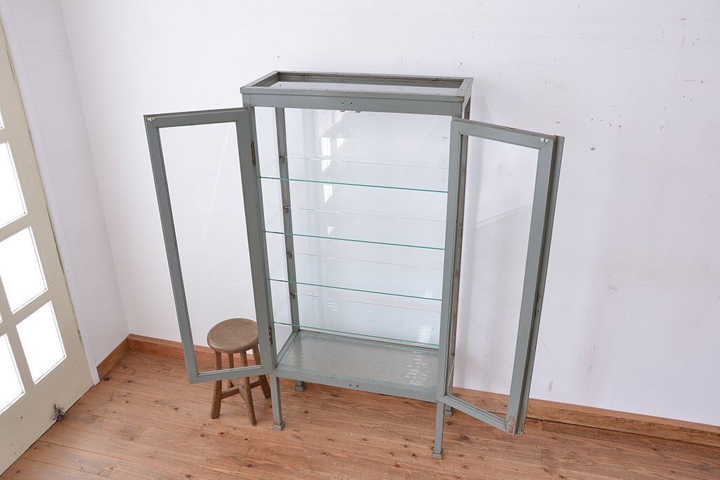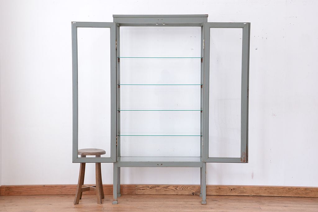 シンプルでクールな6面ガラスケビント(ブルーグレイ)(ショーケース)です。