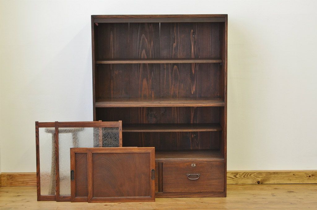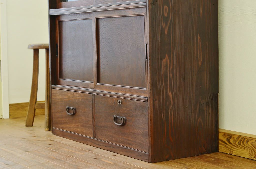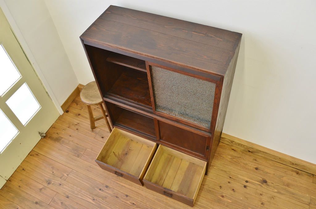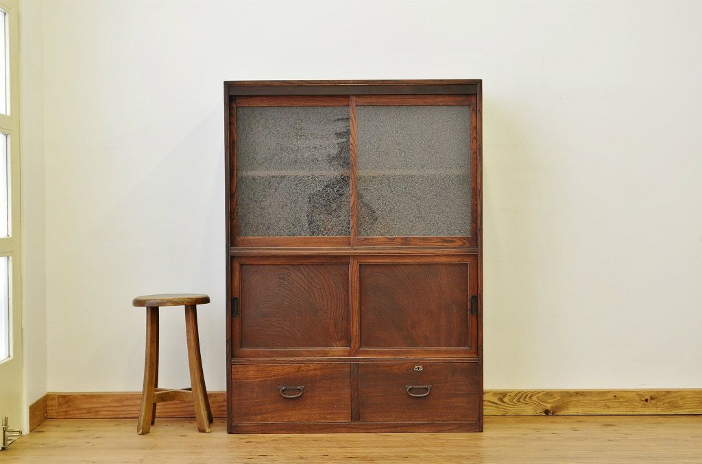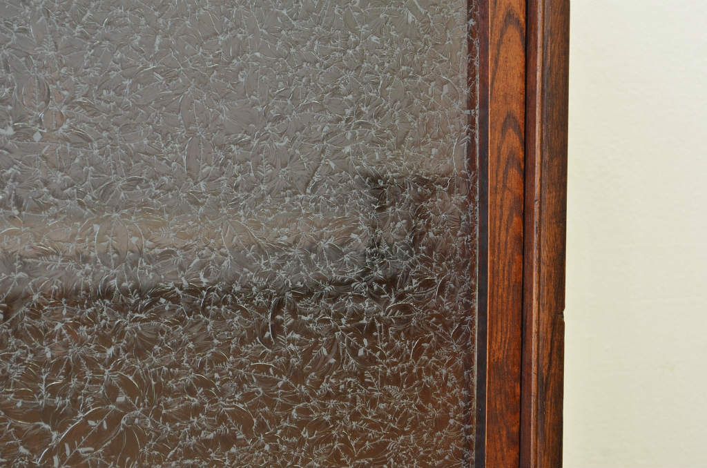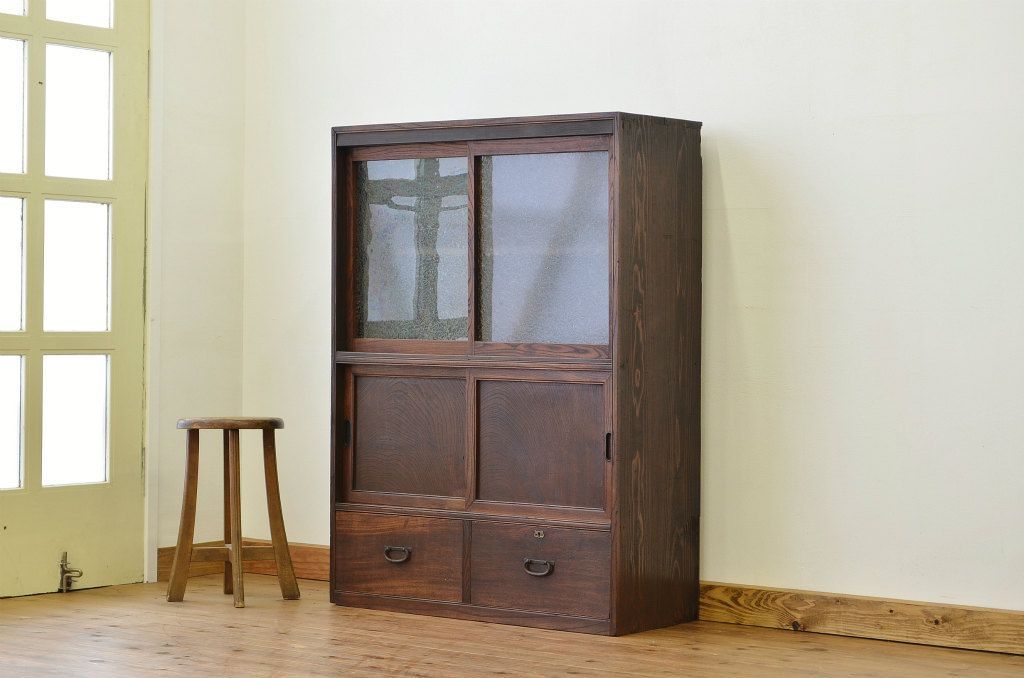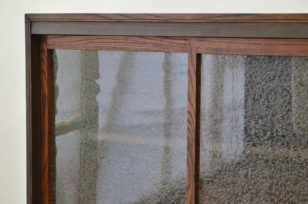 アンティーク家具 素敵な雰囲気!古いお家の結霜ガラス収納棚(アンティーク・食器棚)