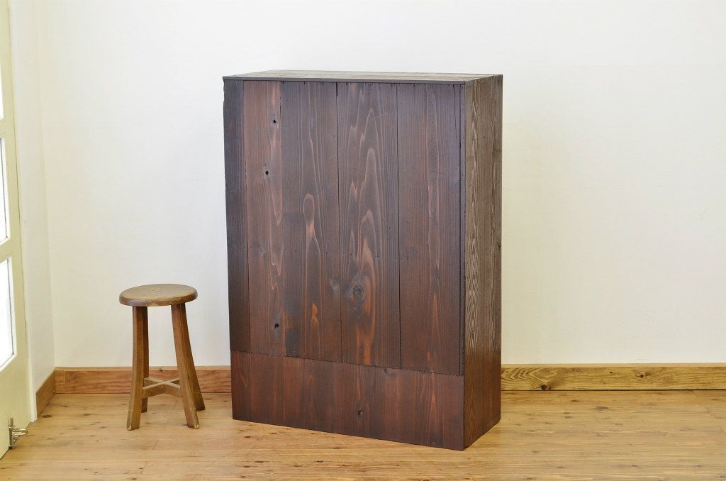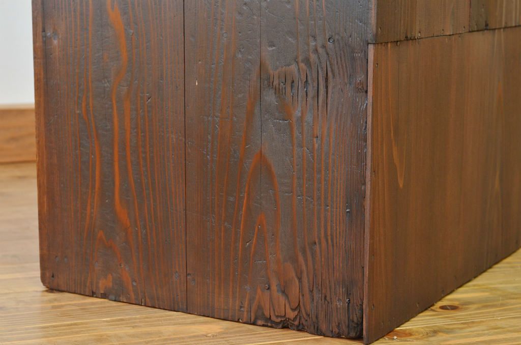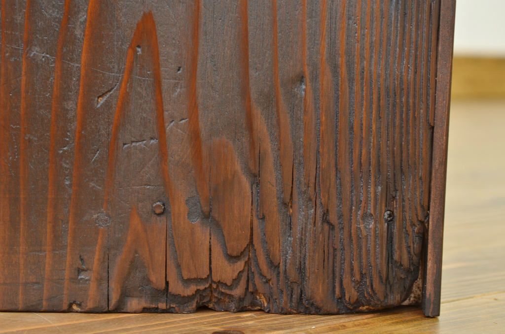 画像にありますように側面の杉板に若干のやせ(イタミ)が目立つ所がありますが、使用上、強度上に問題はありません。