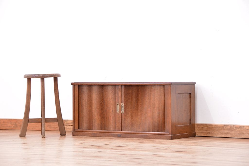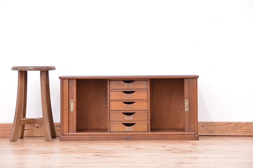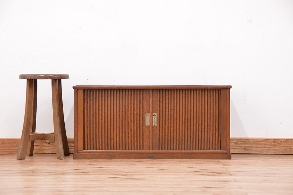 アンティーク 古いナラ材の上質なシャッター書類棚(収納棚、本立て、小引き出し)です。