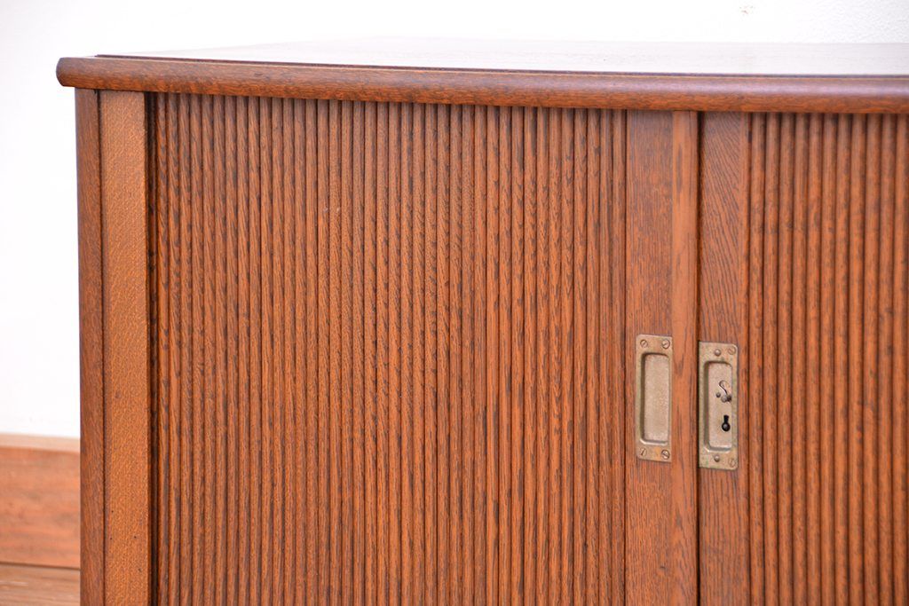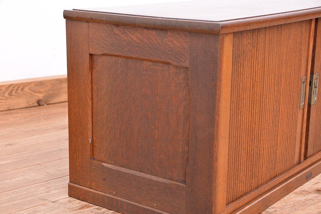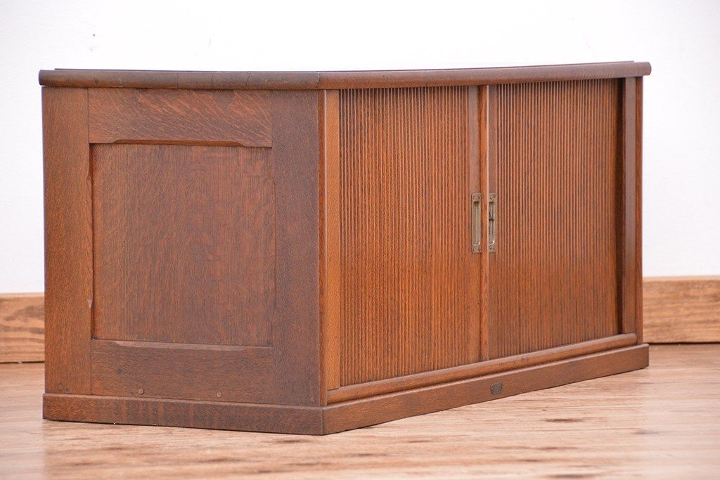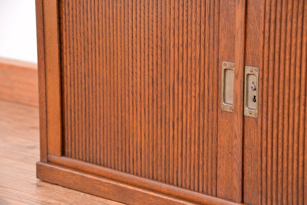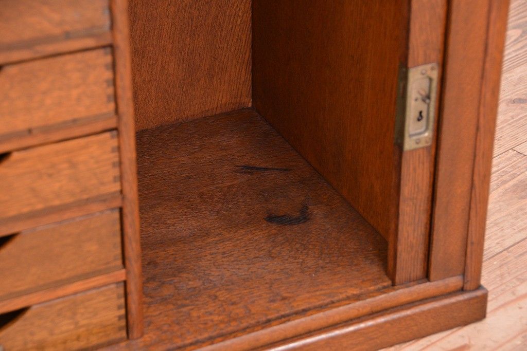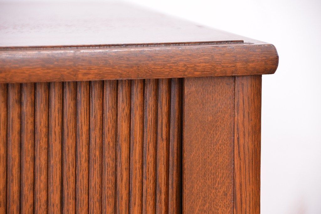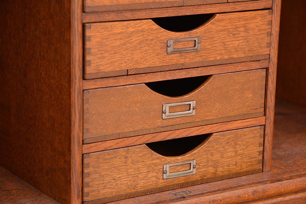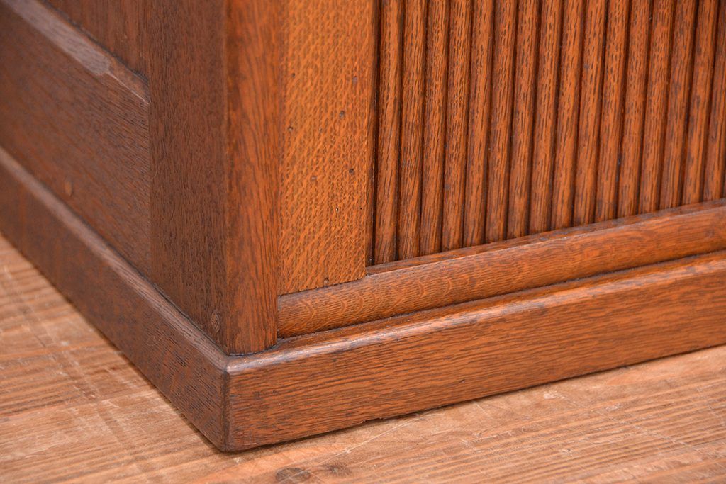 アンティーク家具 アンティーク 古いナラ材の上質なシャッター書類棚(収納棚、本立て、小引き出し)