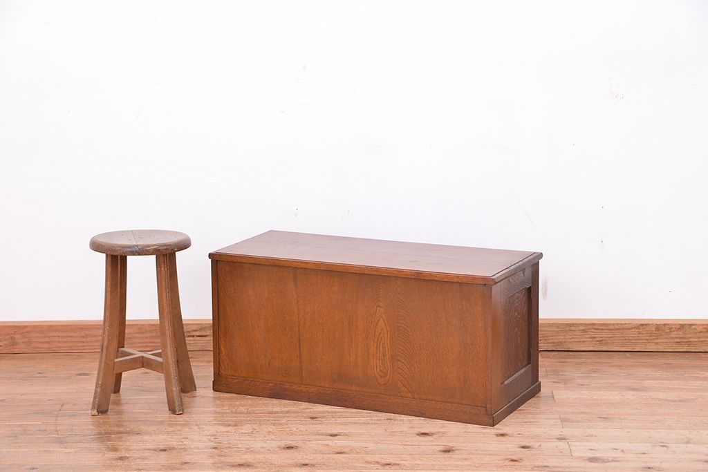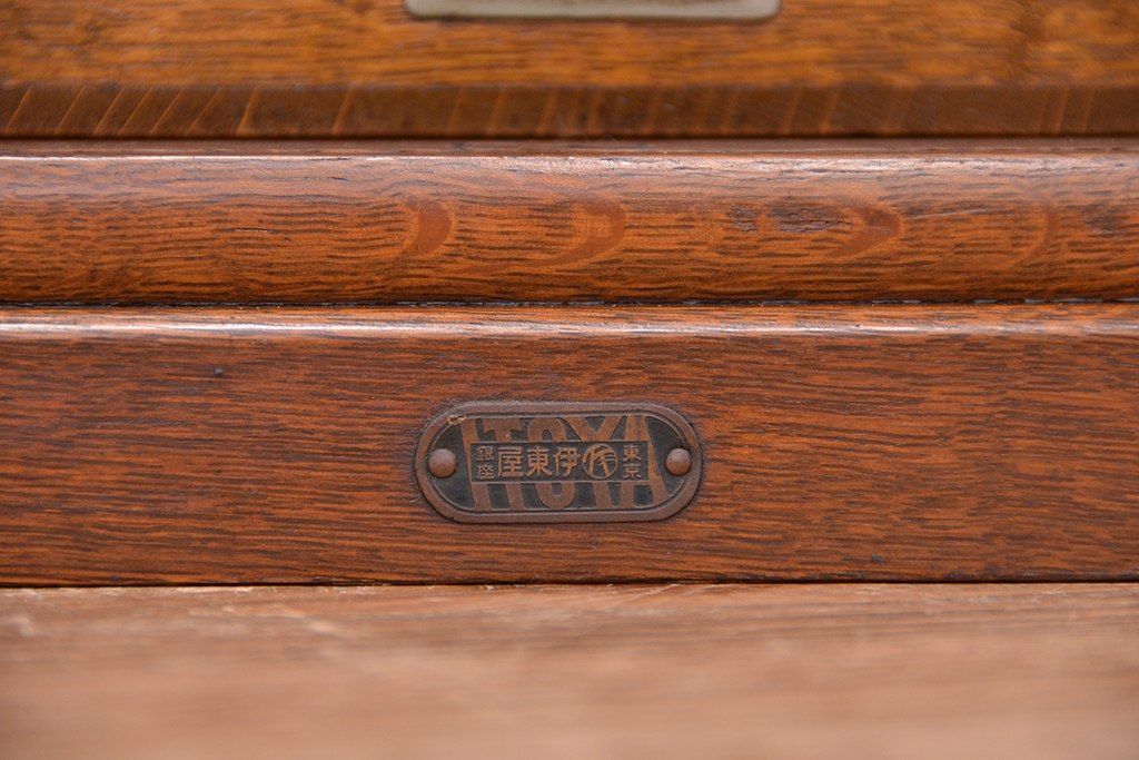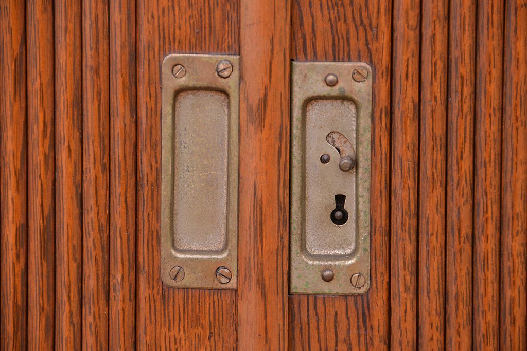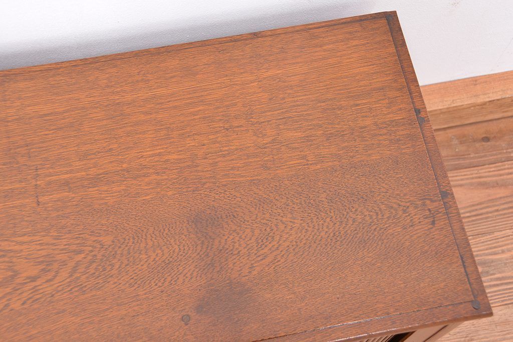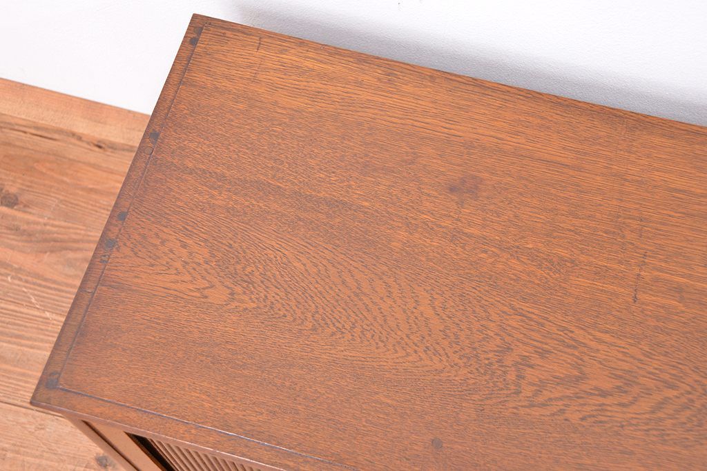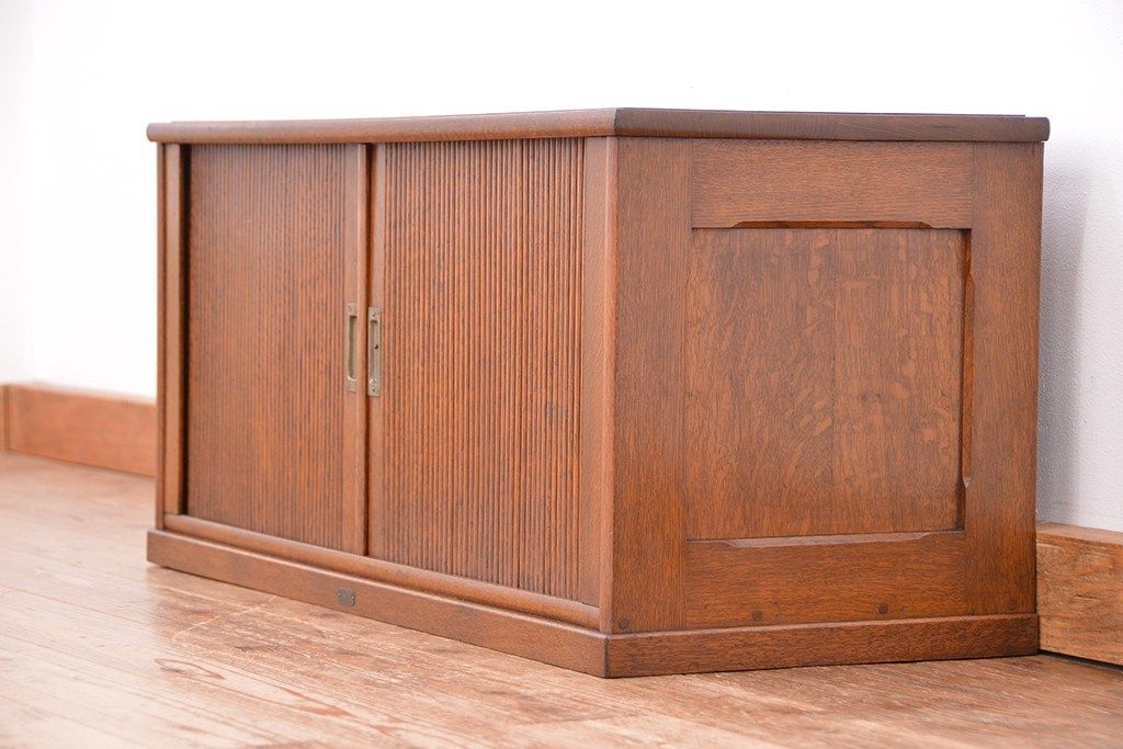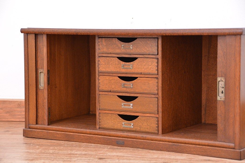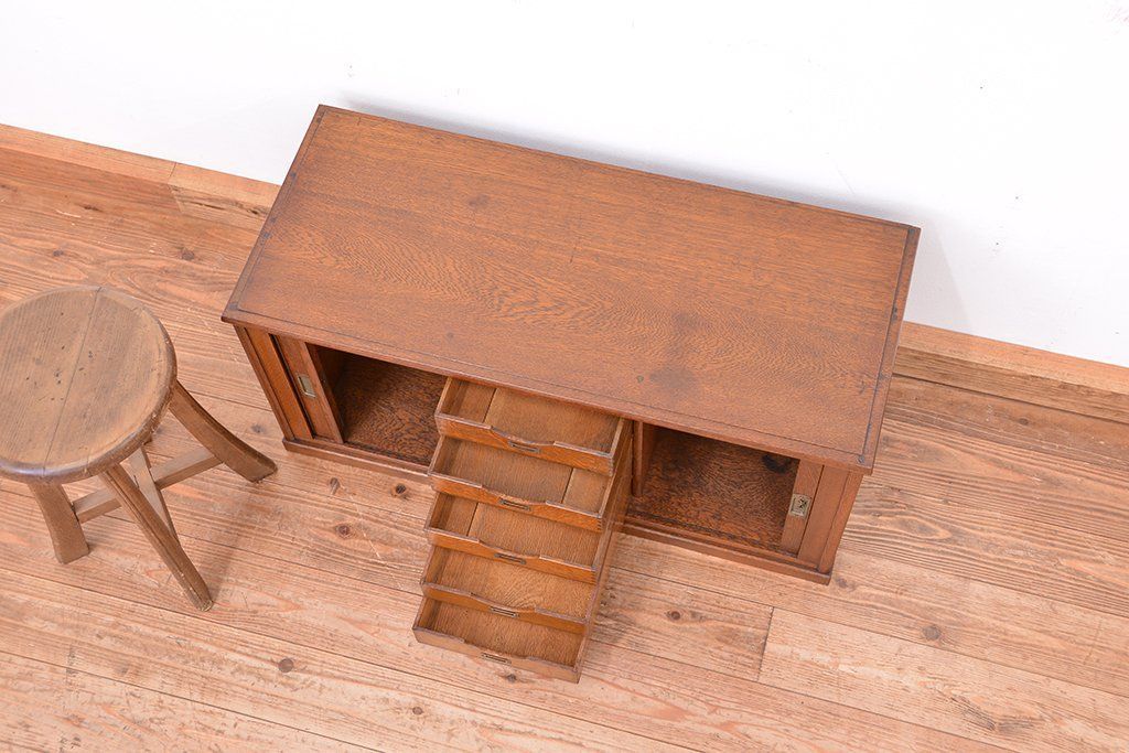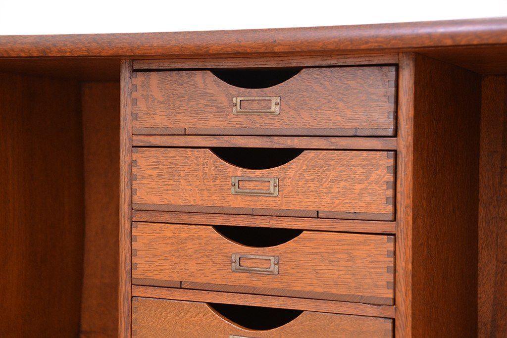 アンティーク家具 アンティーク 古いナラ材の上質なシャッター書類棚(収納棚、本立て、小引き出し)