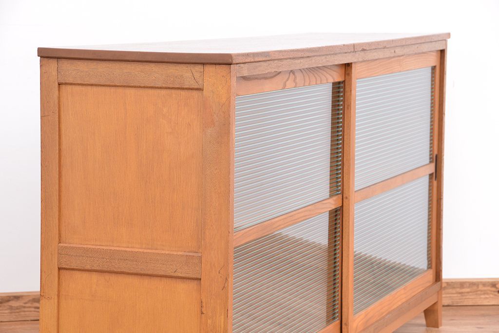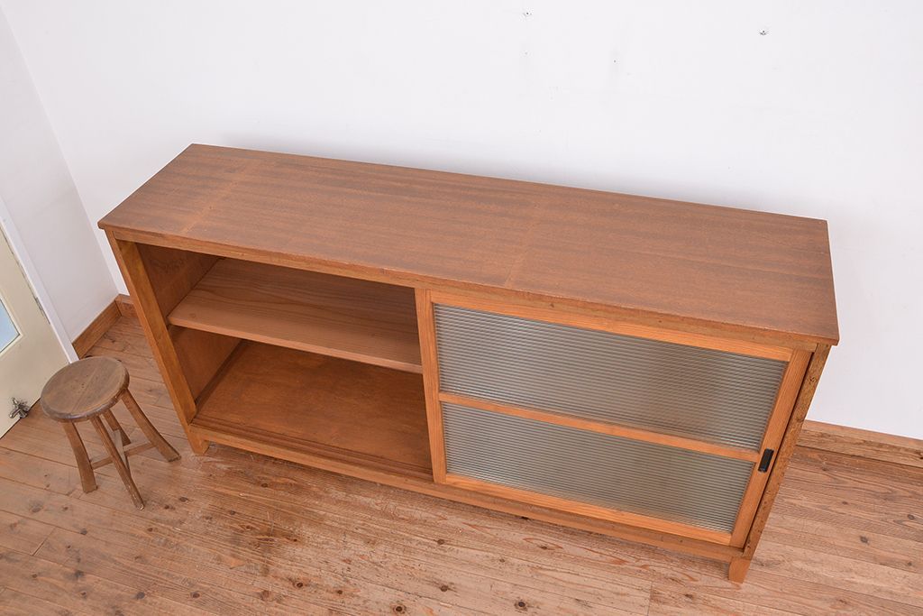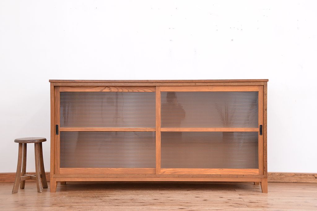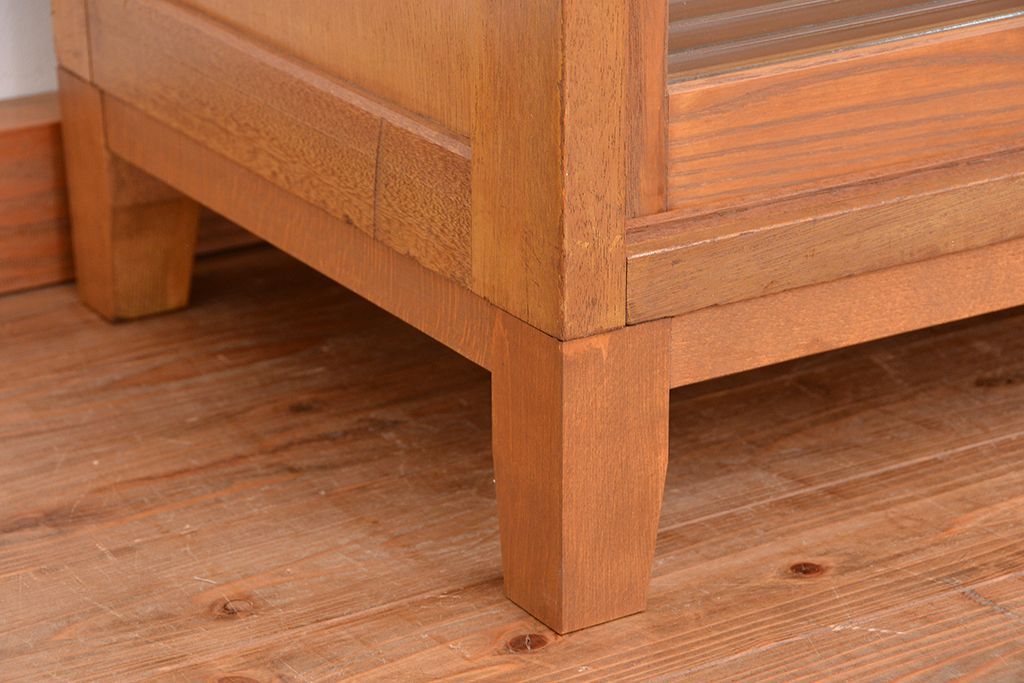 1970年代 古い学校の脚付きモールガラス収納棚(食器棚、本棚)です。