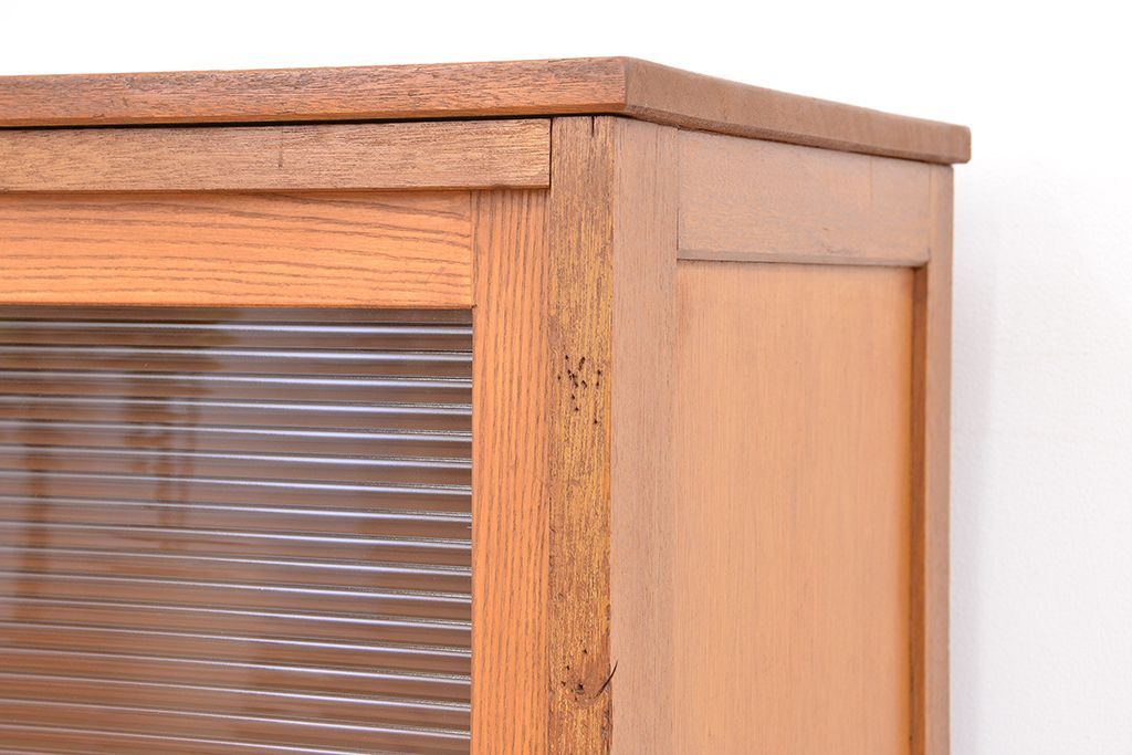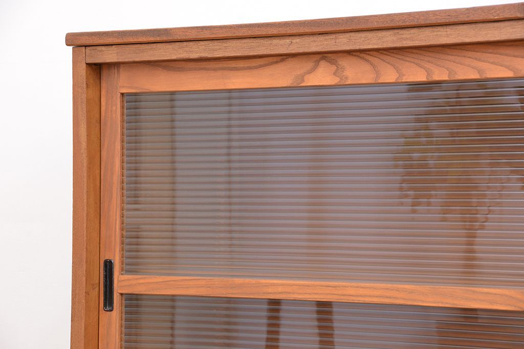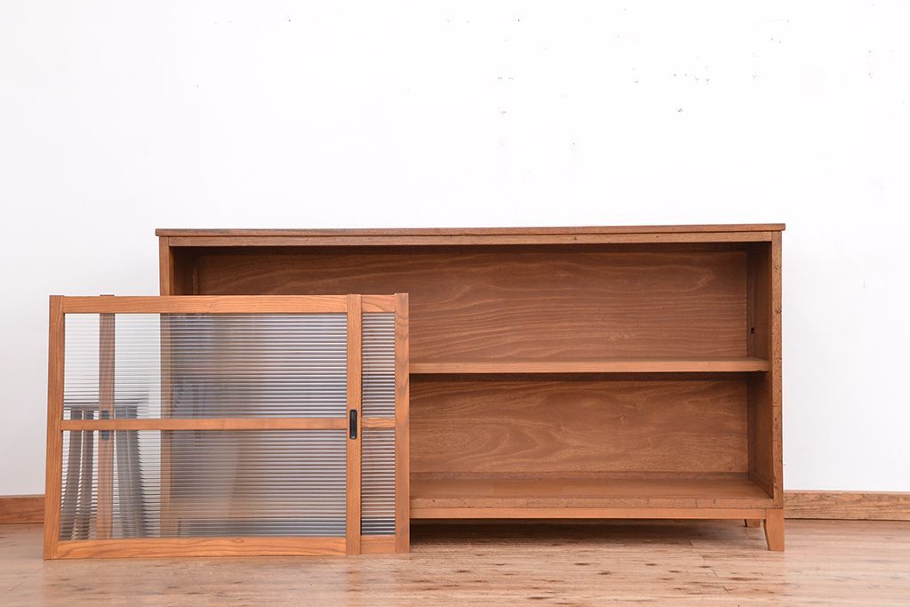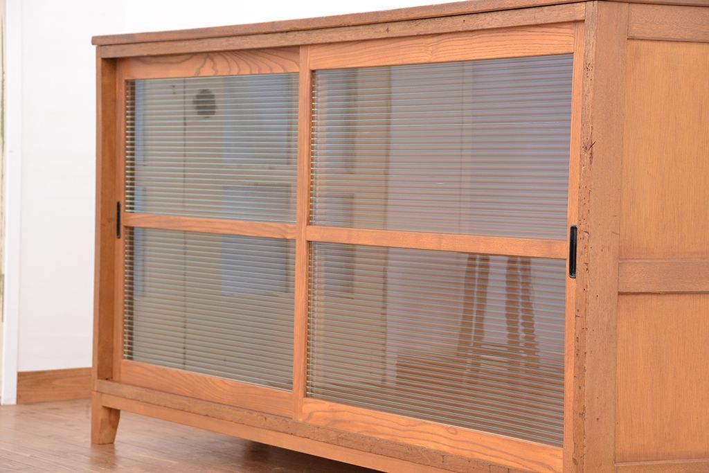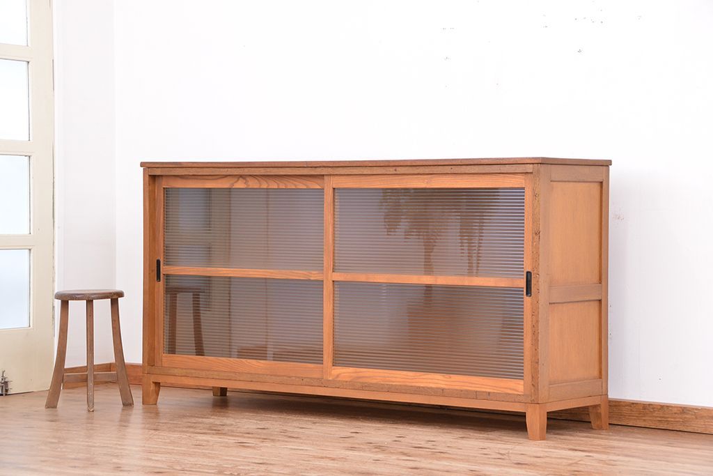 1970年代 古い学校の脚付きモールガラス収納棚(食器棚、本棚)です。