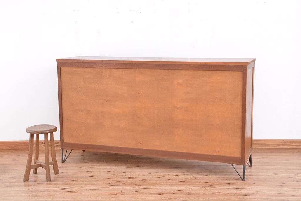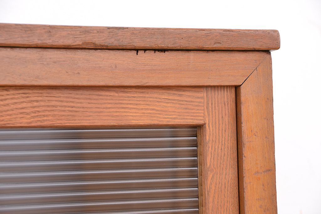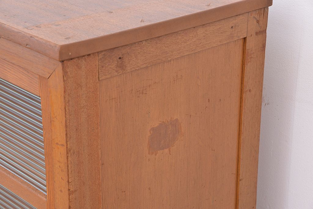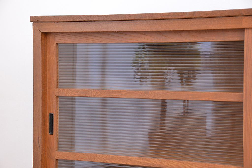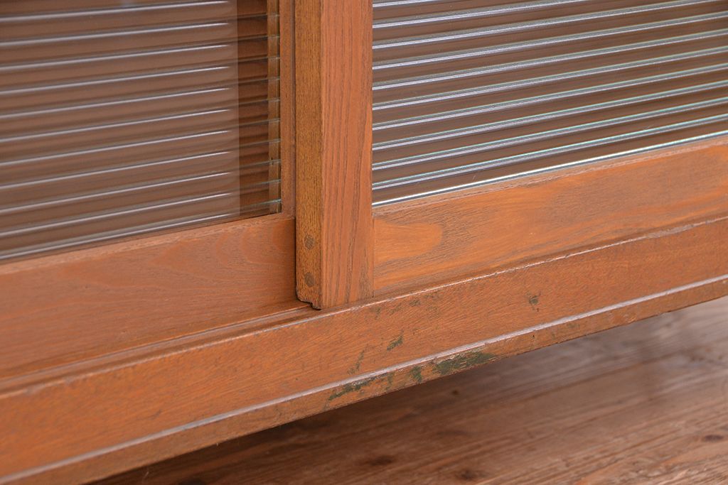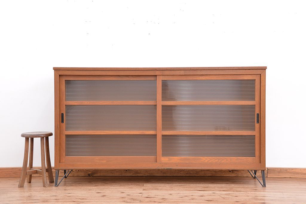1970年代 古い学校の鉄脚モールガラス収納棚?(食器棚・本棚)です。
