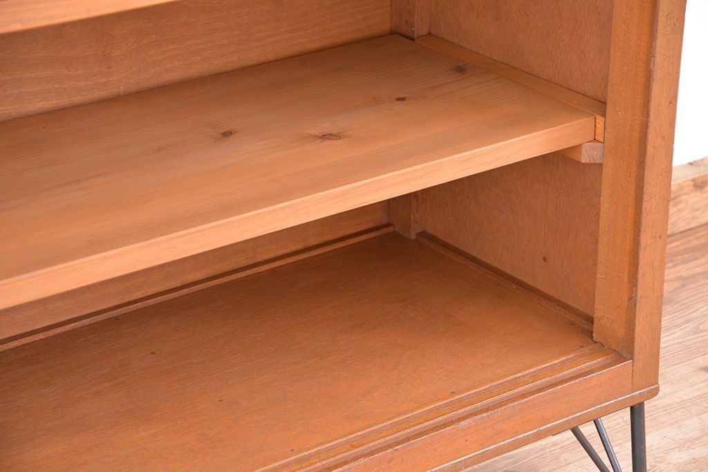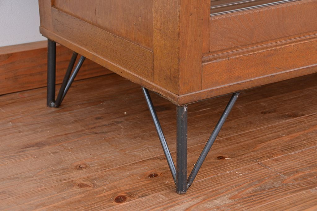アンティーク家具 1970年代 古い学校の鉄脚モールガラス収納棚?(食器棚・本棚)