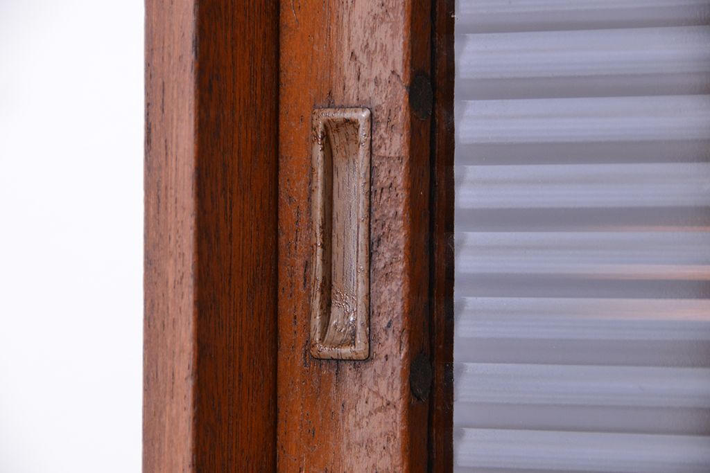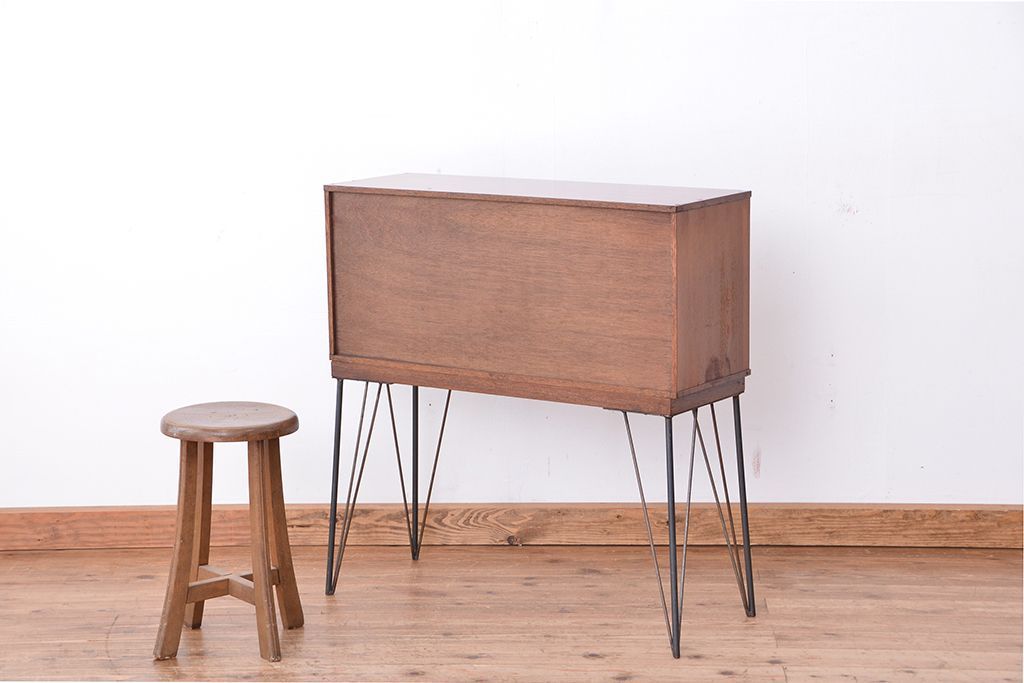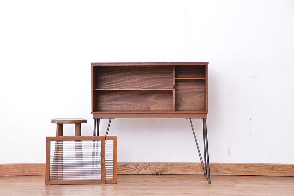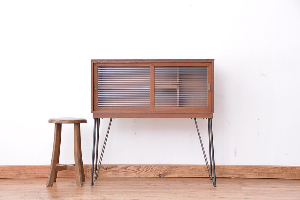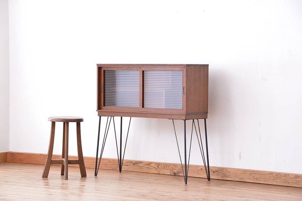 アンティーク家具 アンティーク モールガラス引き戸の鉄脚付戸棚?(ガラス収納棚)