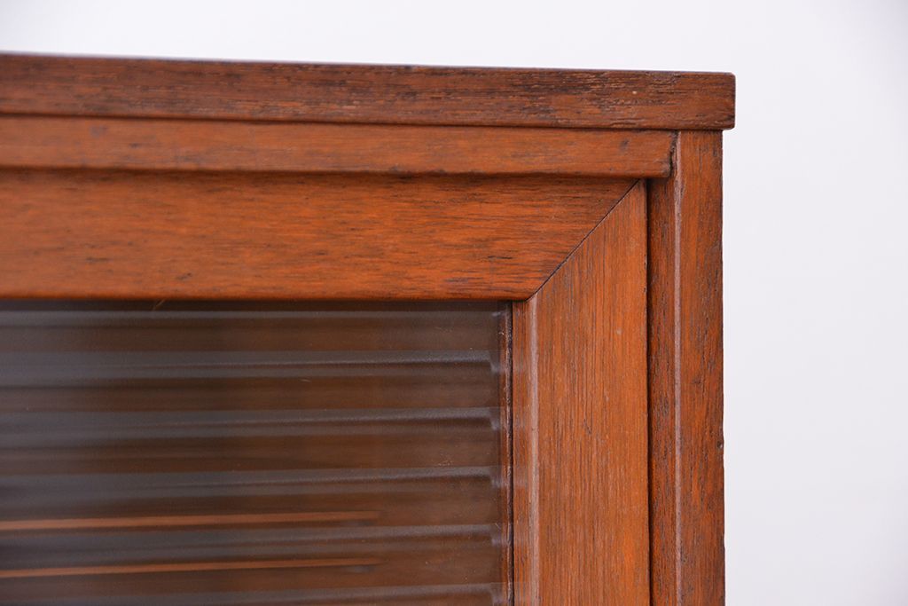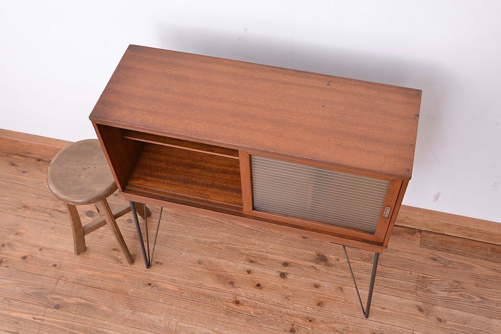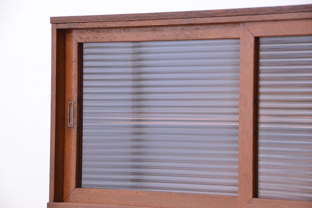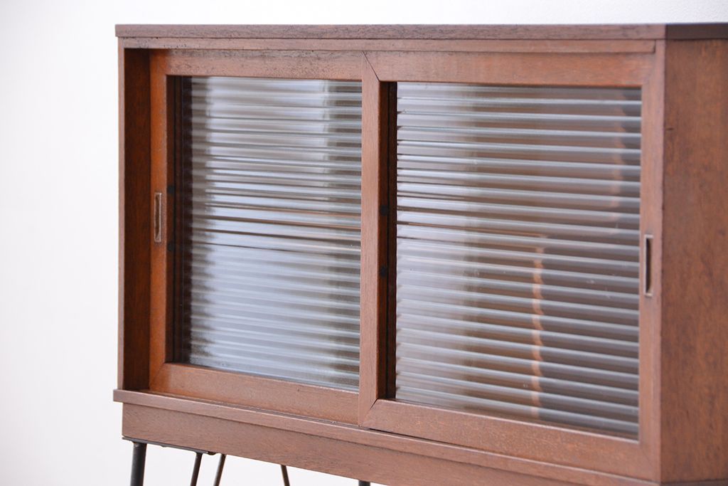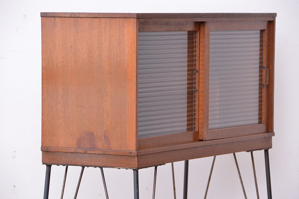 アンティーク モールガラス引き戸の鉄脚付戸棚?(ガラス収納棚)です。