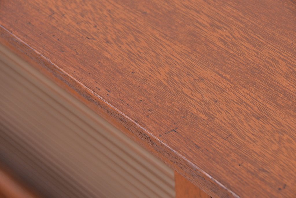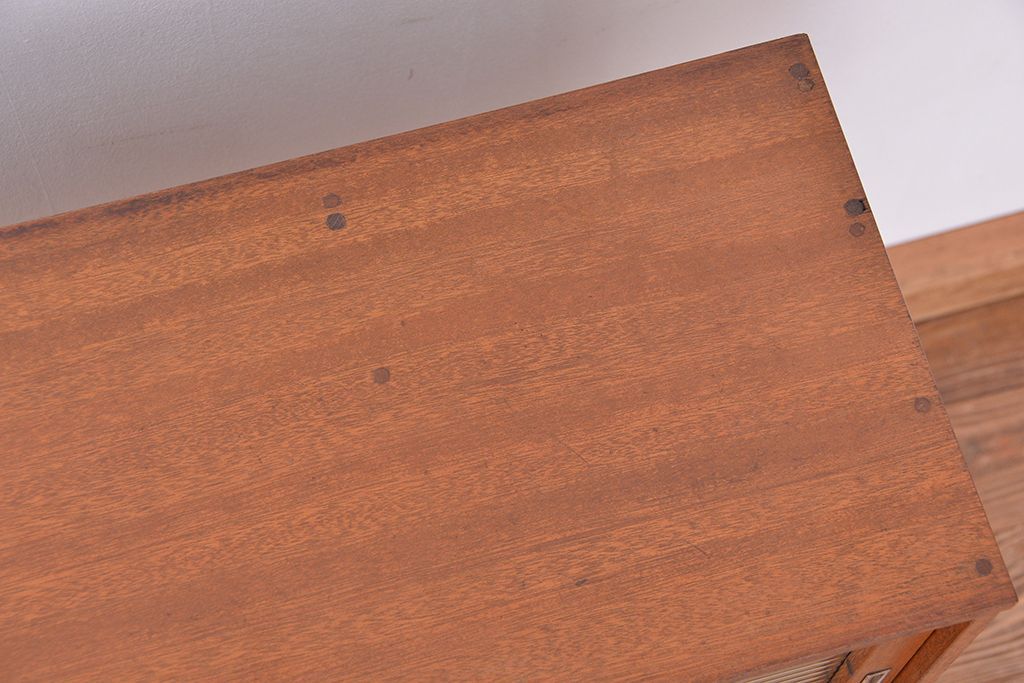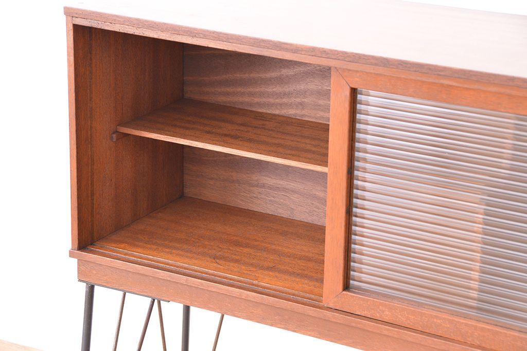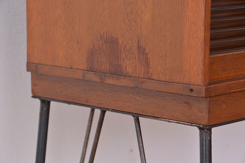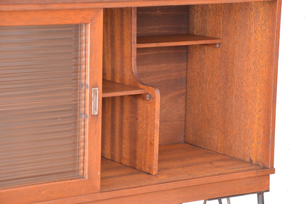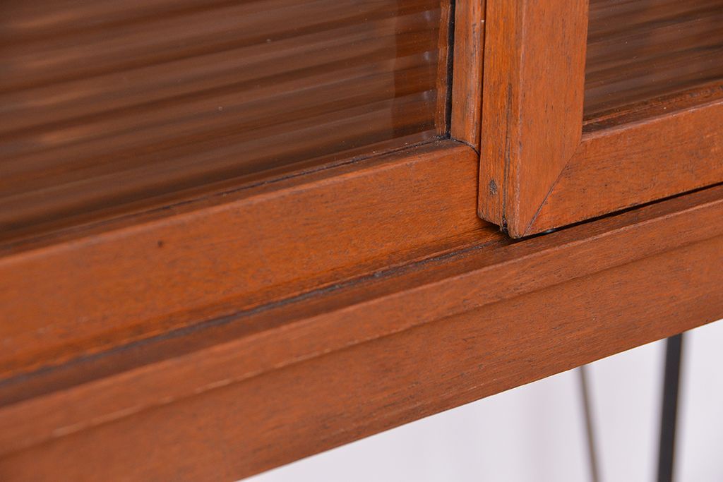 アンティーク モールガラス引き戸の鉄脚付戸棚?(ガラス収納棚)です。