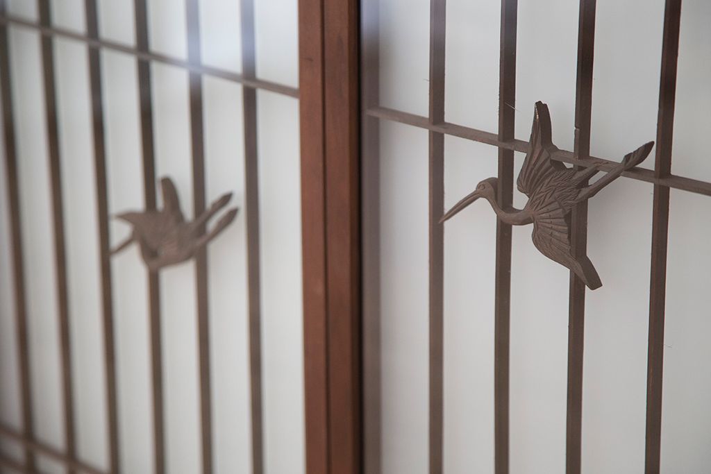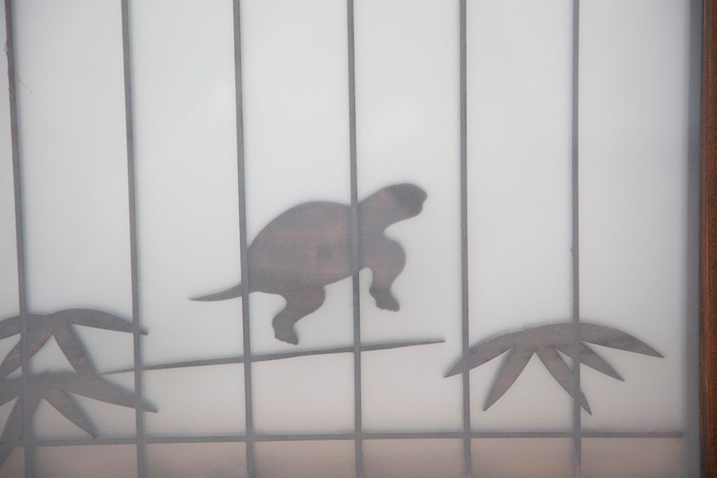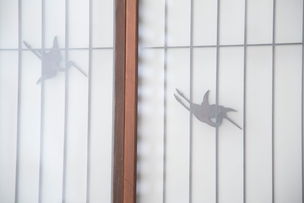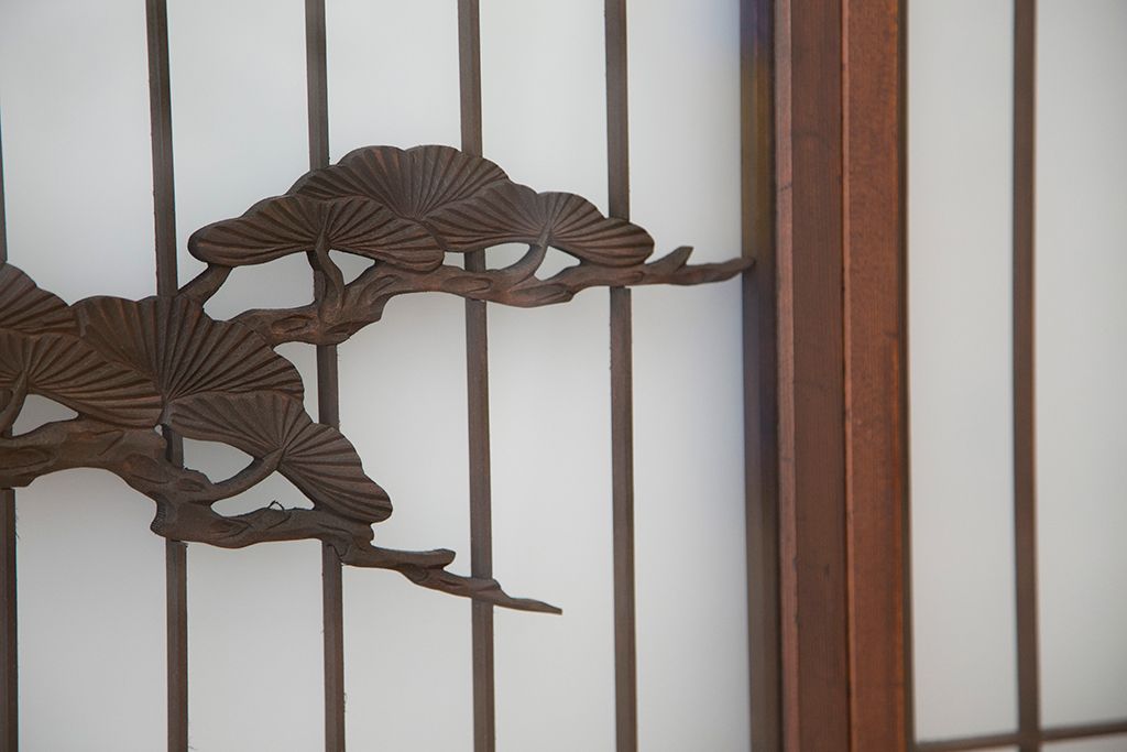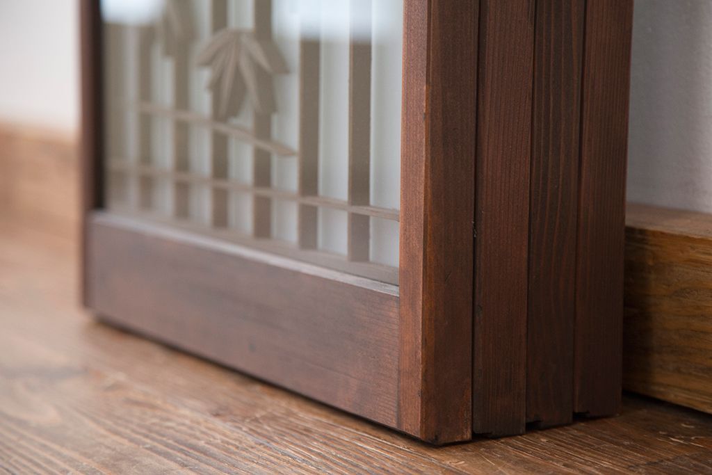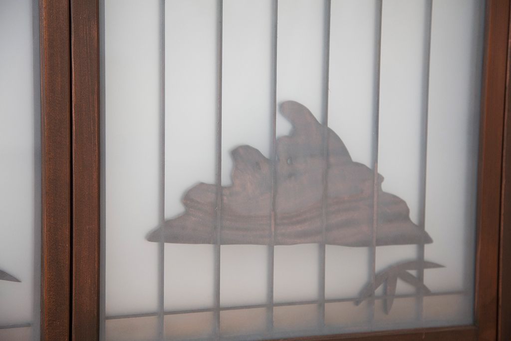 ラフジュ工房> ドア・建具> 4枚〜セット > 中古 縁起も良い!松竹梅と亀鶴コラボ 書院戸4枚セット?(明り取り)(ガラス戸)