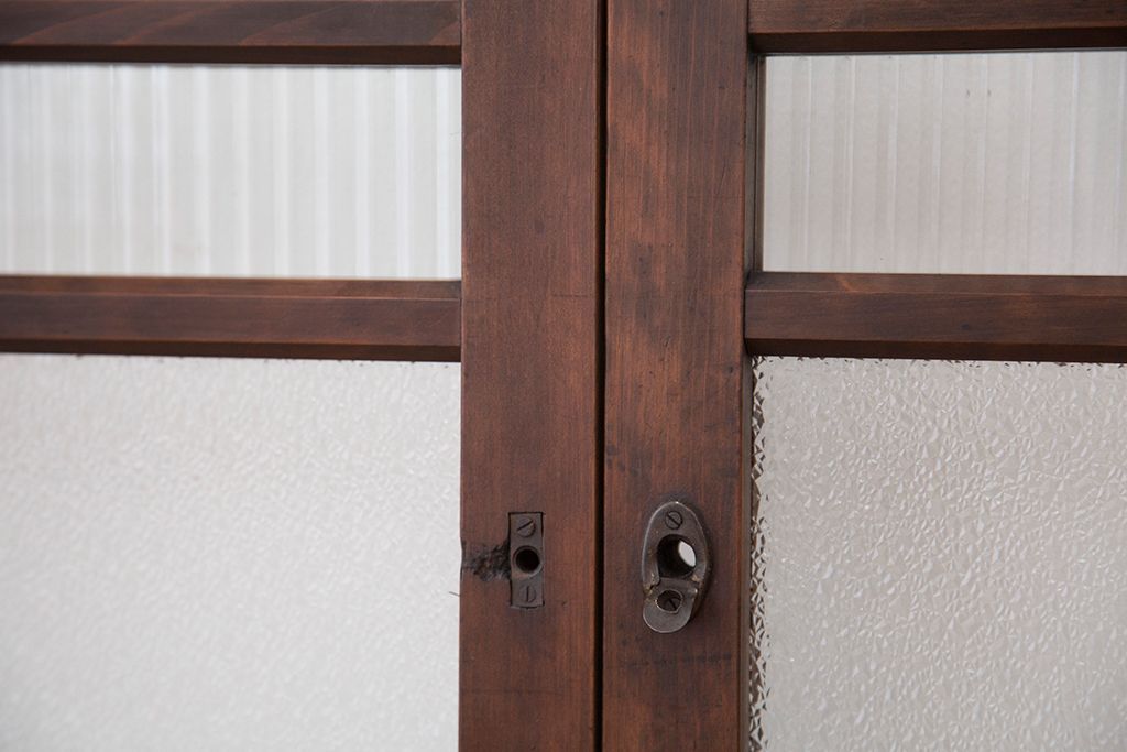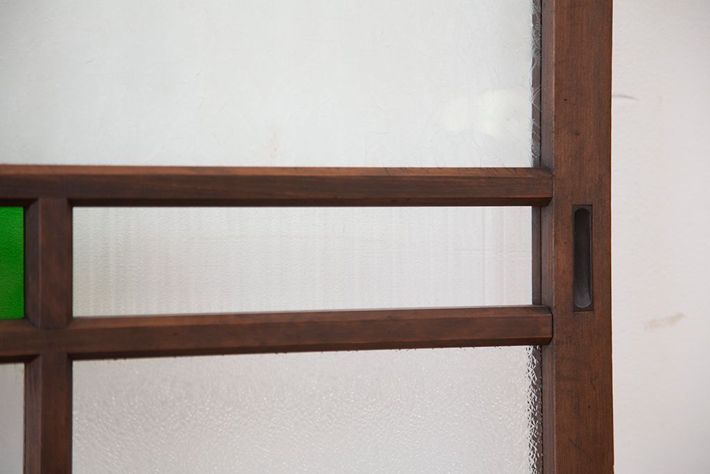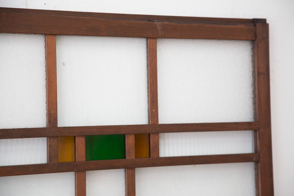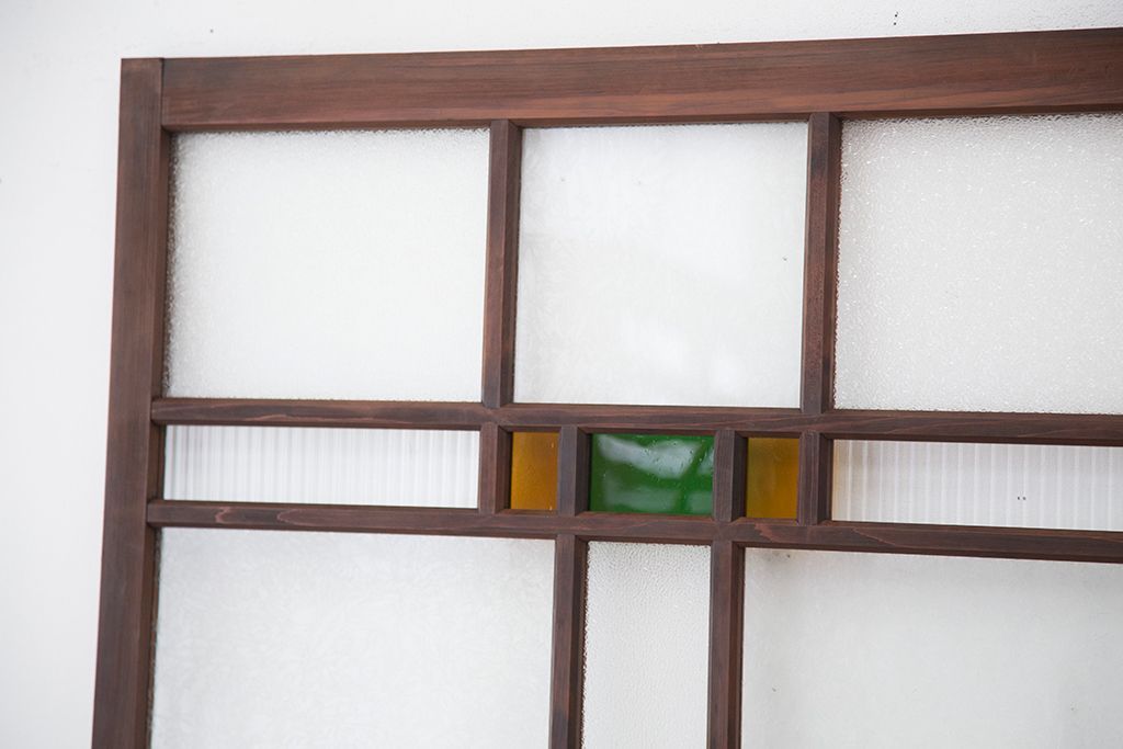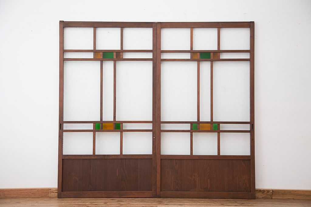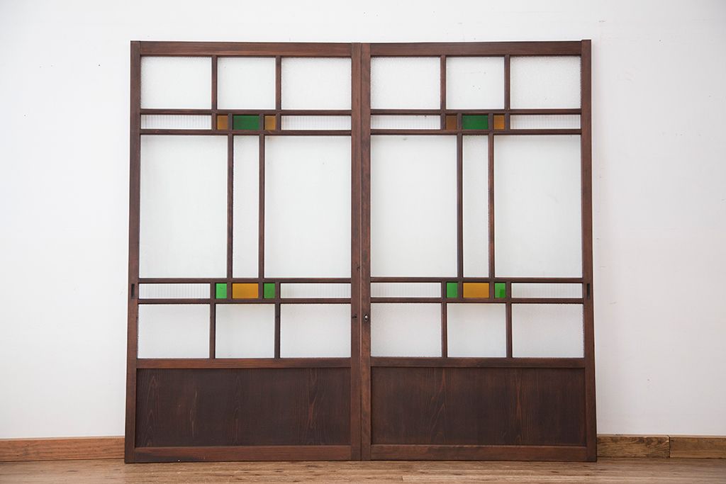 大正ロマン 古い木の色ガラス引き戸ガラス戸2枚セット(建具/ダイヤガラス/モールガラス/結霜ガラス)