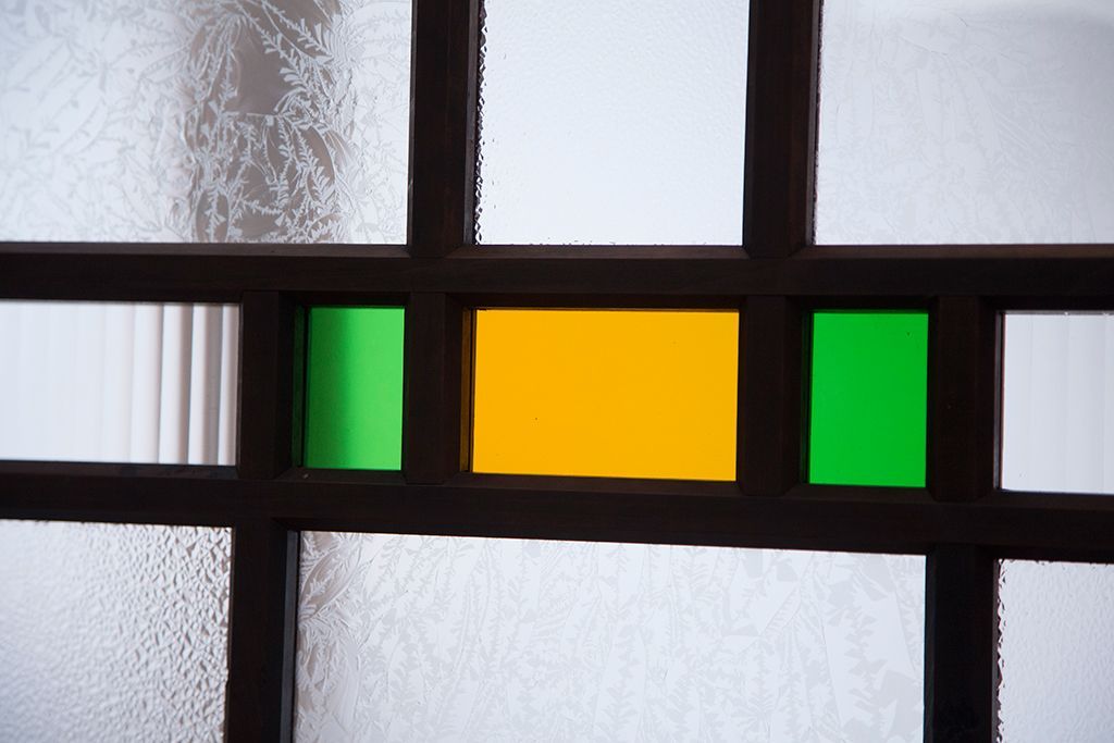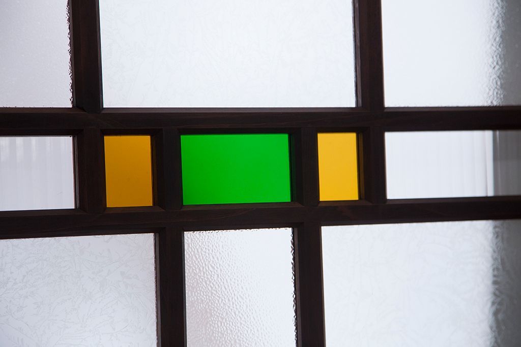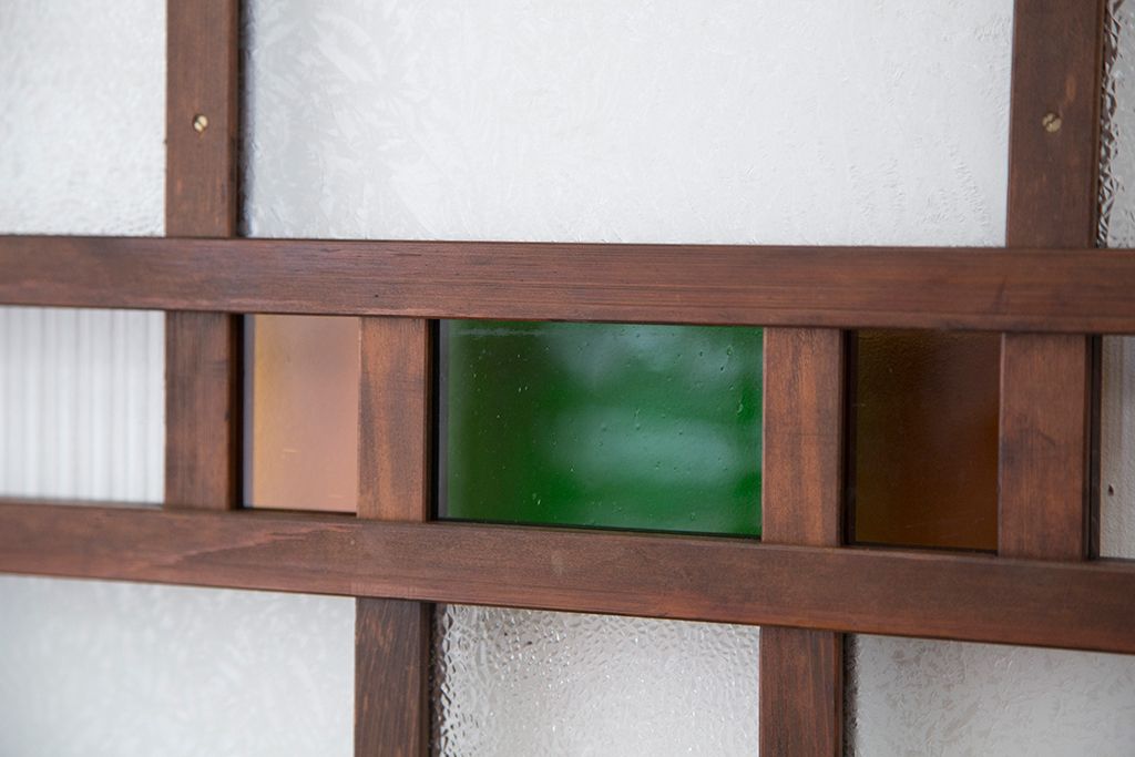 人気のモールガラスと色ガラス、結霜ガラスが使われいてとても素敵なデザインです。