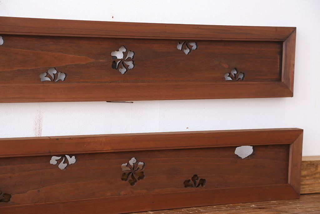 古いお屋敷の透かし彫り欄間2枚セット(欠損有り)