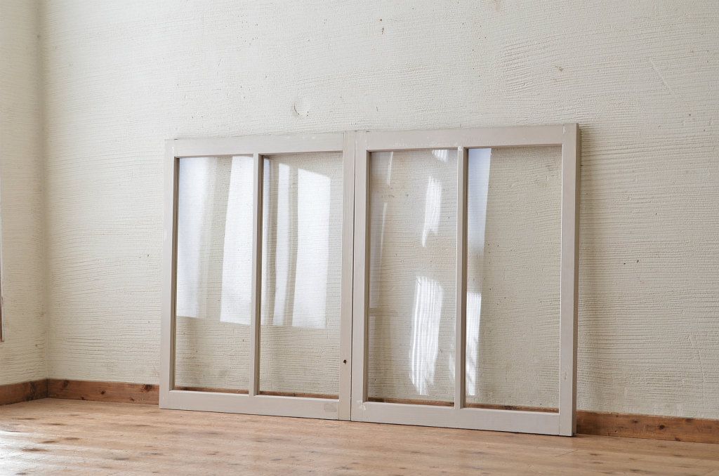 アンティークペイント引き戸(ガラス戸)2枚セット3