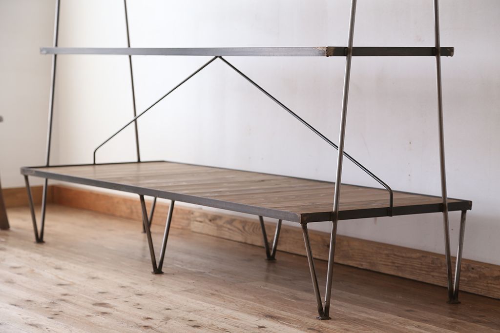 アイアン部分は鉄工所に製作してもらったもので、非常に頑丈です、店舗什器などにご好評いただいております。