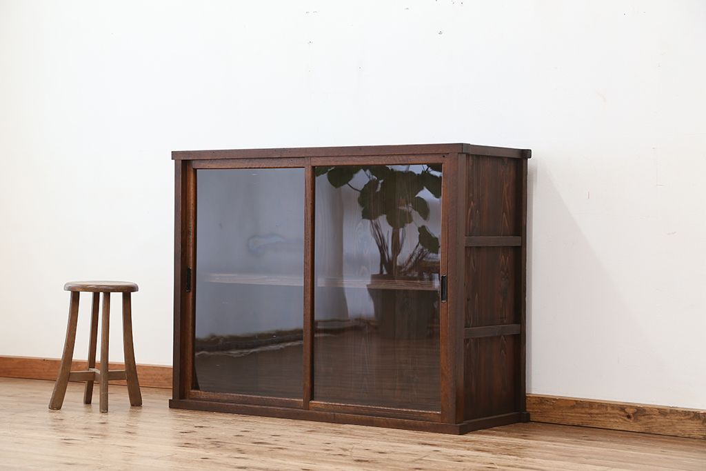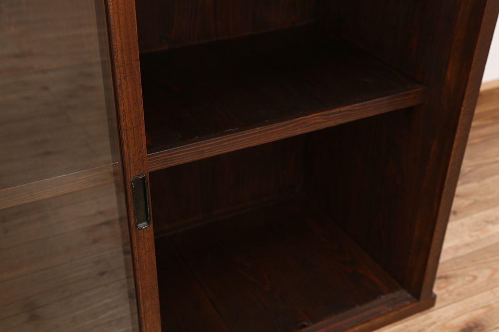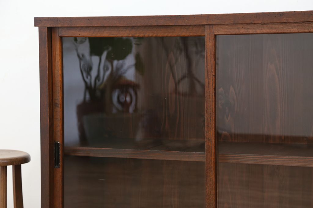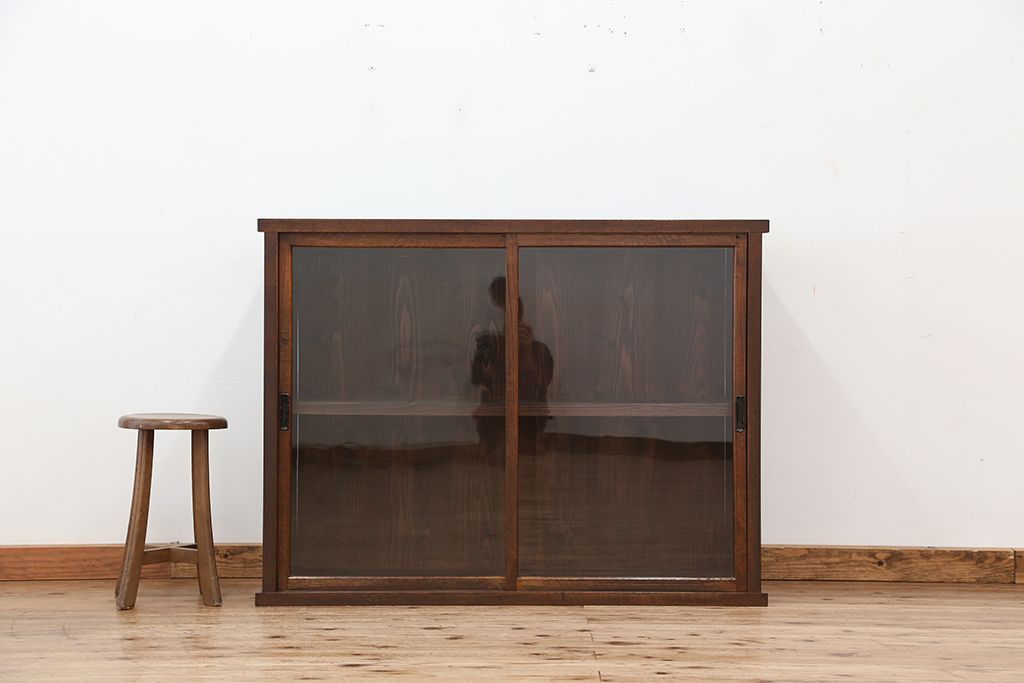 アンティーク家具 ★アンティーク シンプルなガラス引き戸収納棚(食器棚、飾り棚)