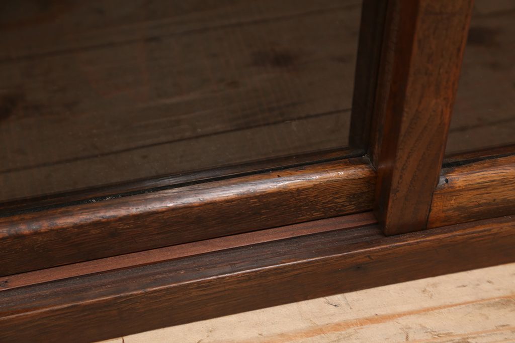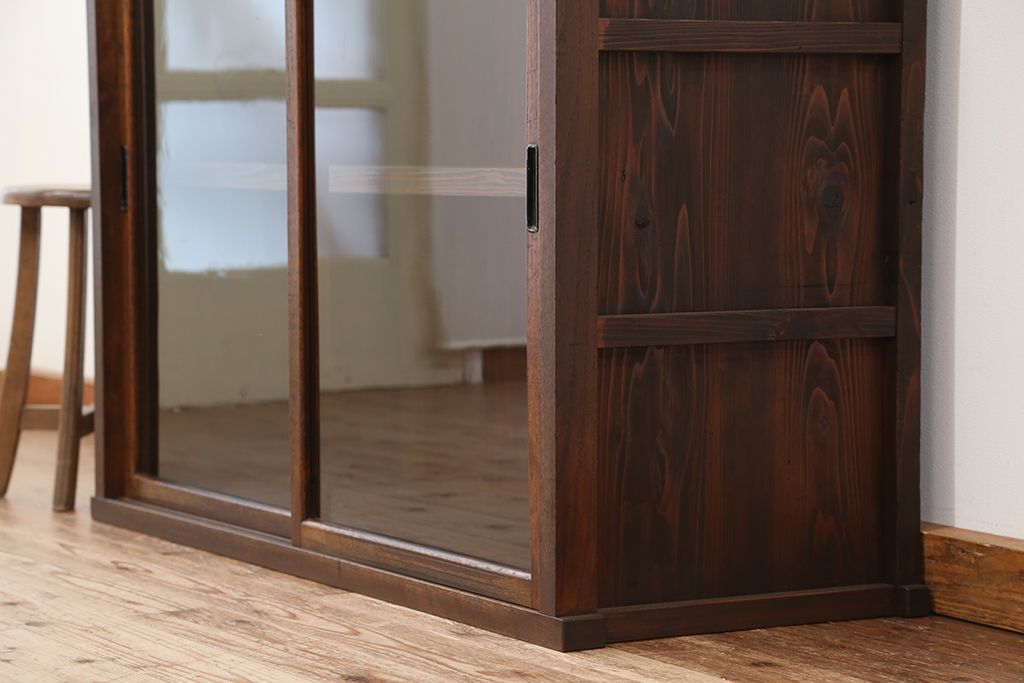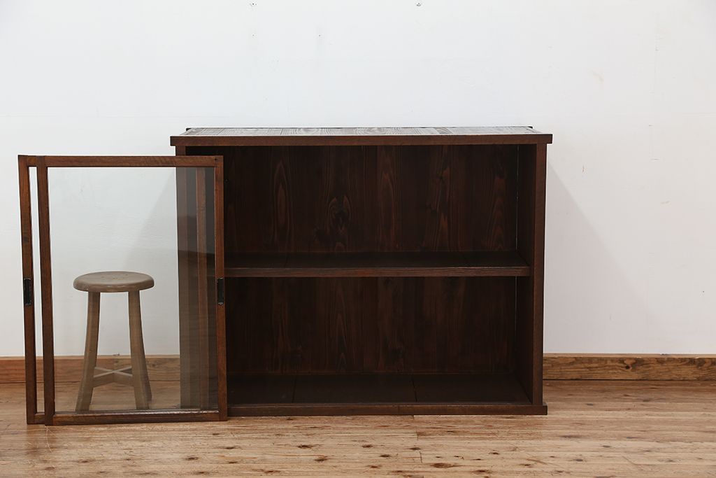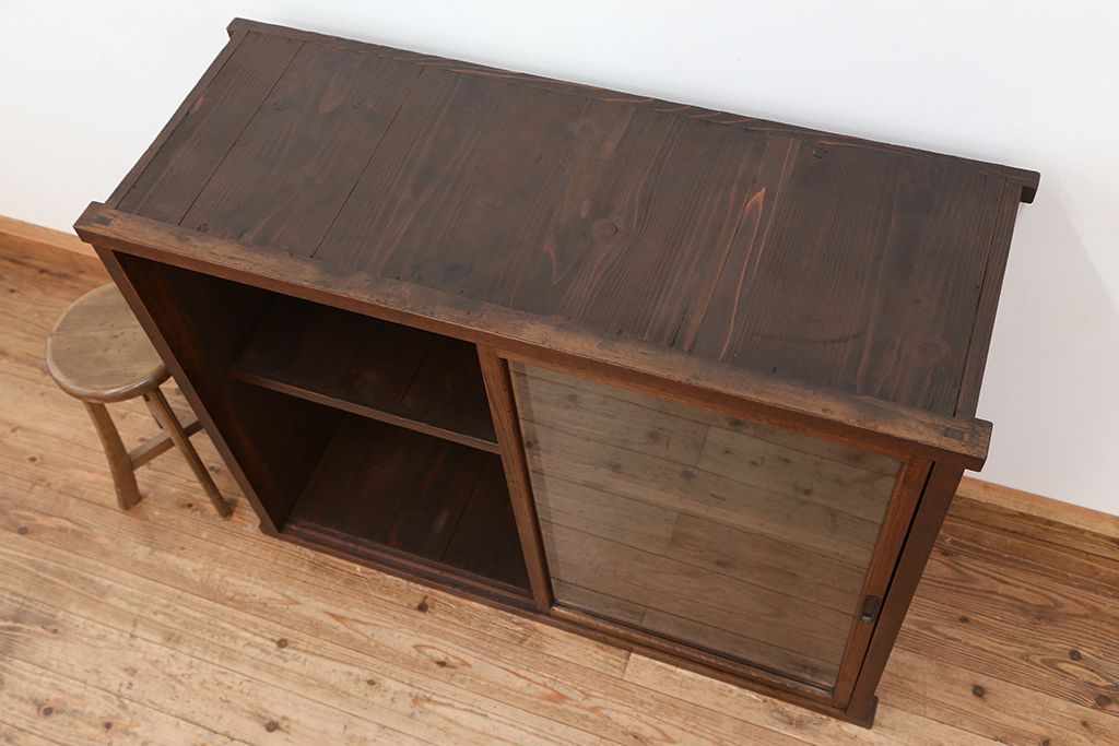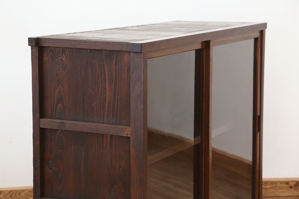 アンティーク家具 ★アンティーク シンプルなガラス引き戸収納棚(食器棚、飾り棚)