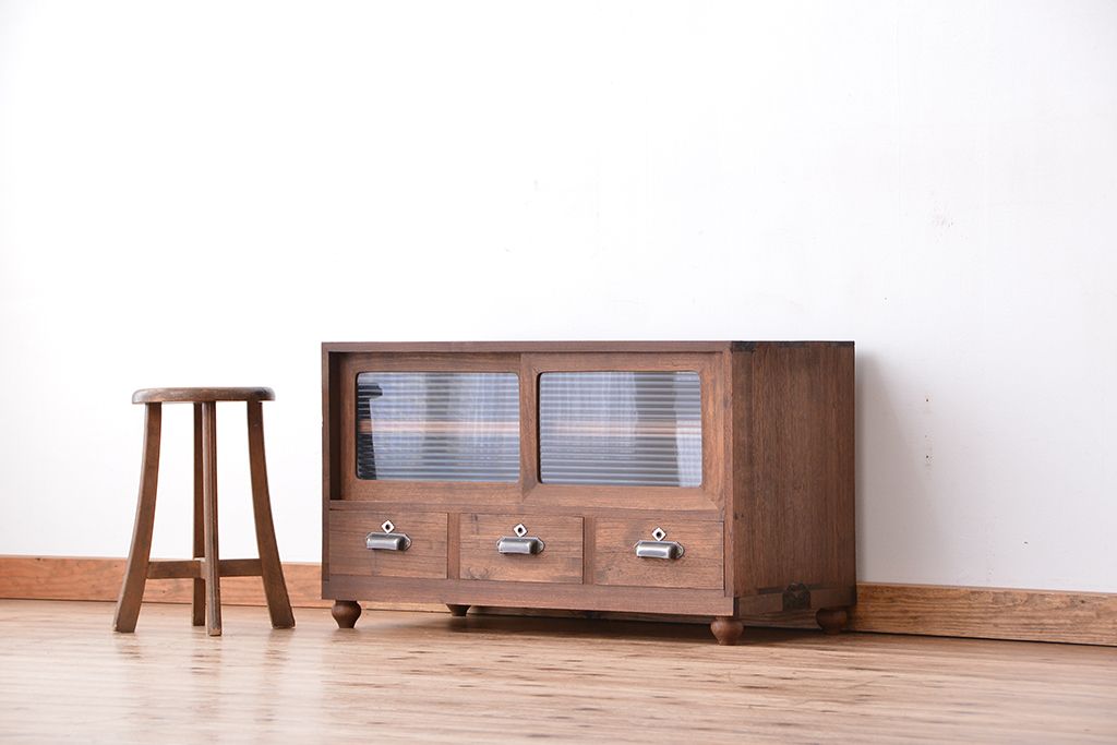アンティーク モールガラス脚付きローボード?(収納棚)です。