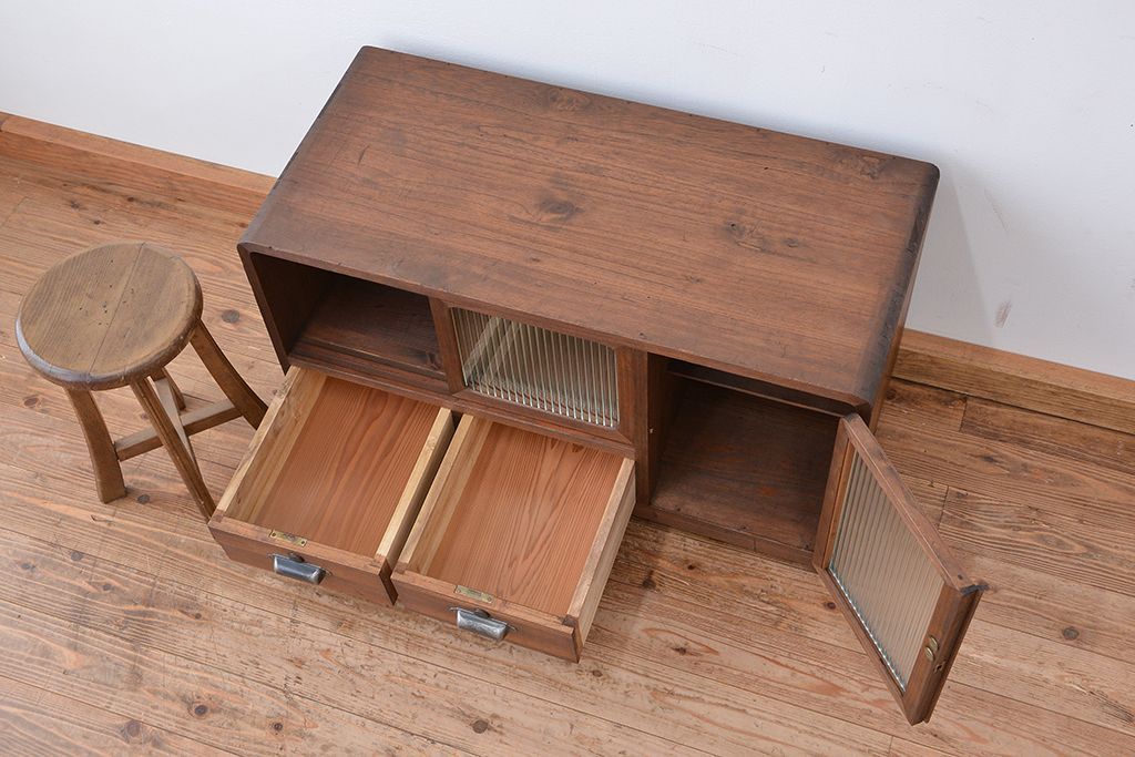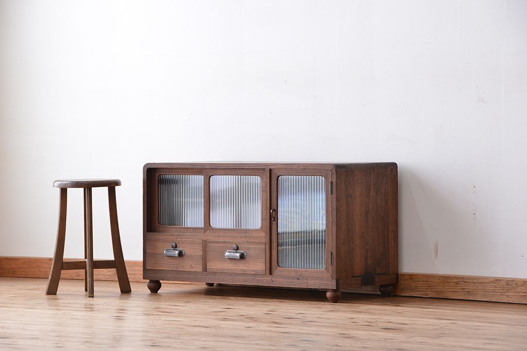 アンティーク モールガラス脚付きローボード?(収納棚)です。