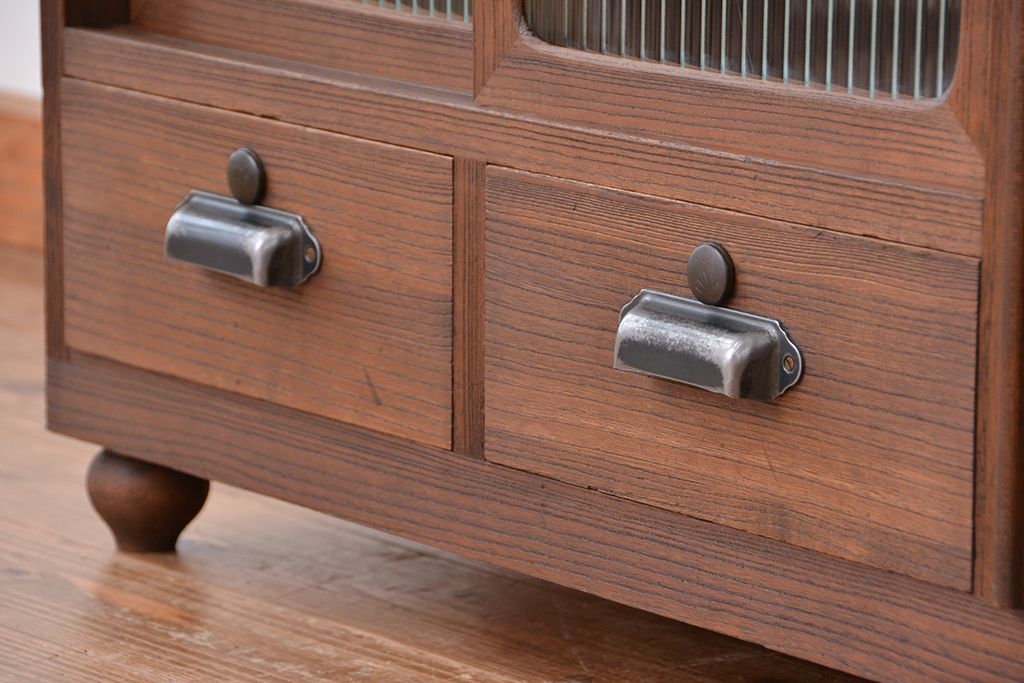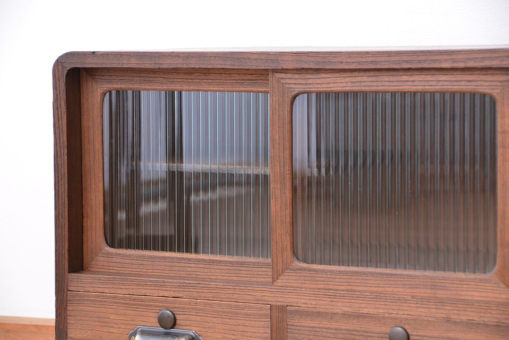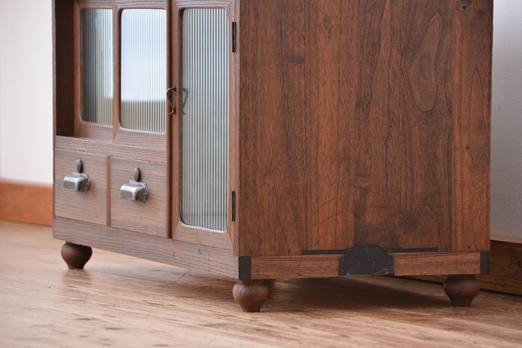 アンティーク家具 アンティーク モールガラス脚付きローボード?(収納棚)