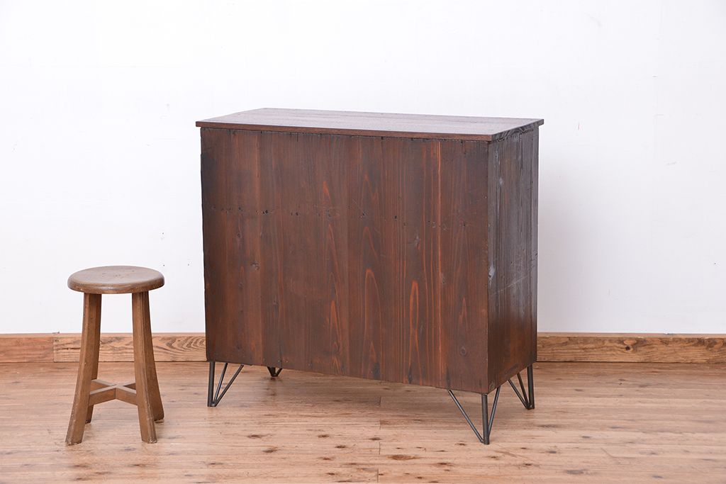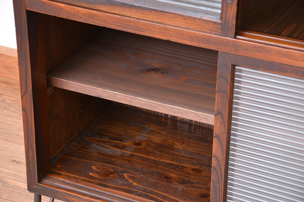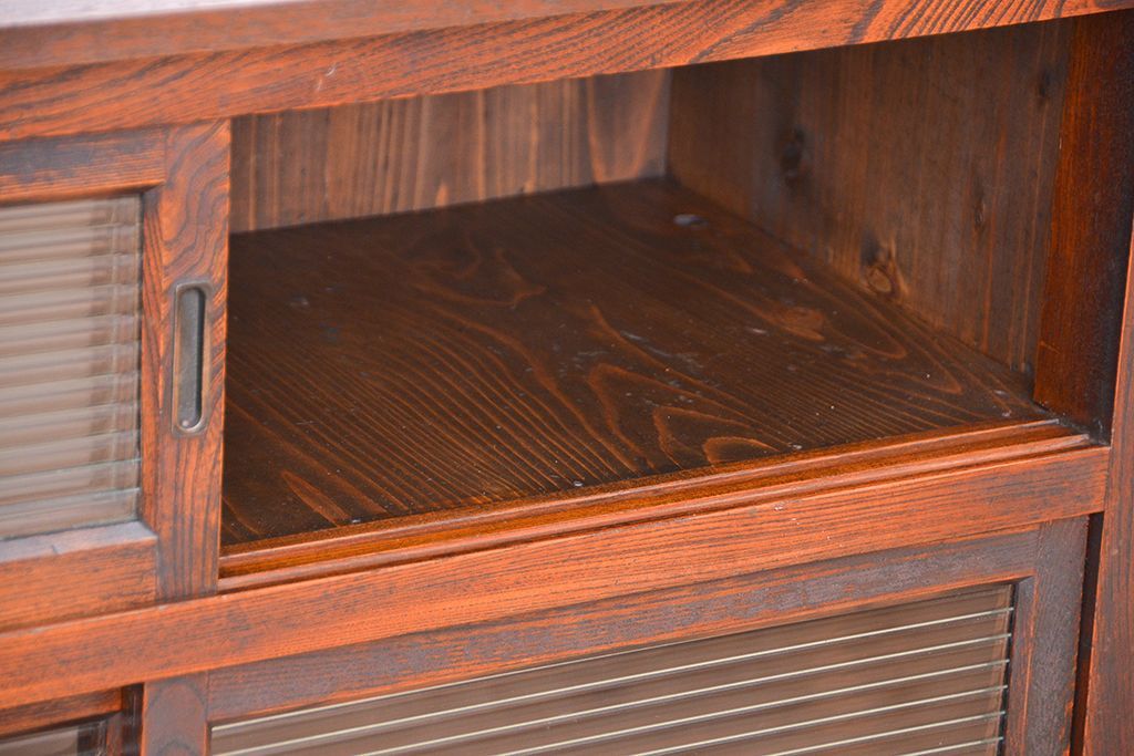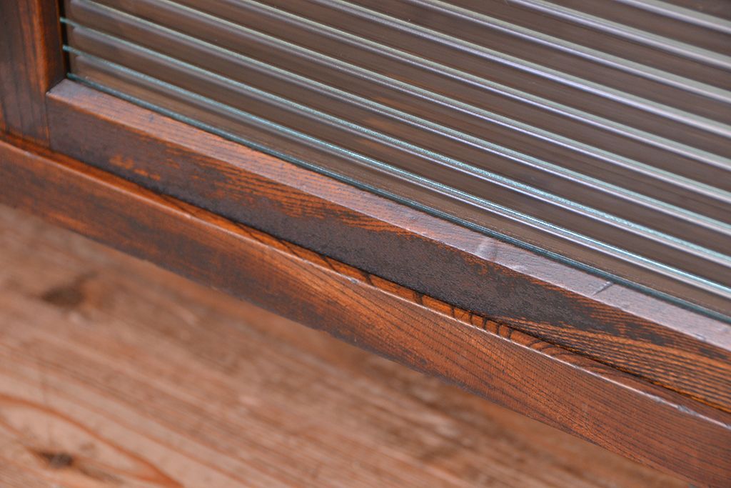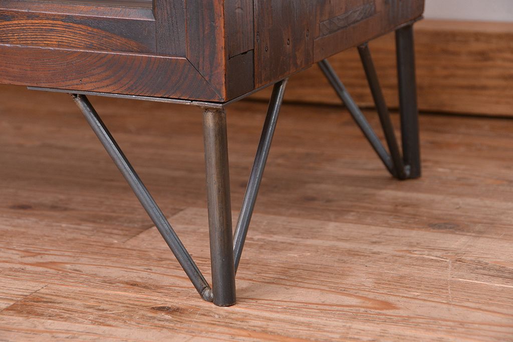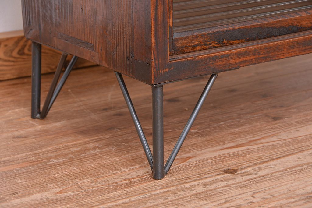 アンティーク家具 アンティーク 前面欅材の鉄脚付きモールガラス収納棚(食器棚)