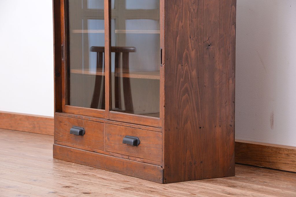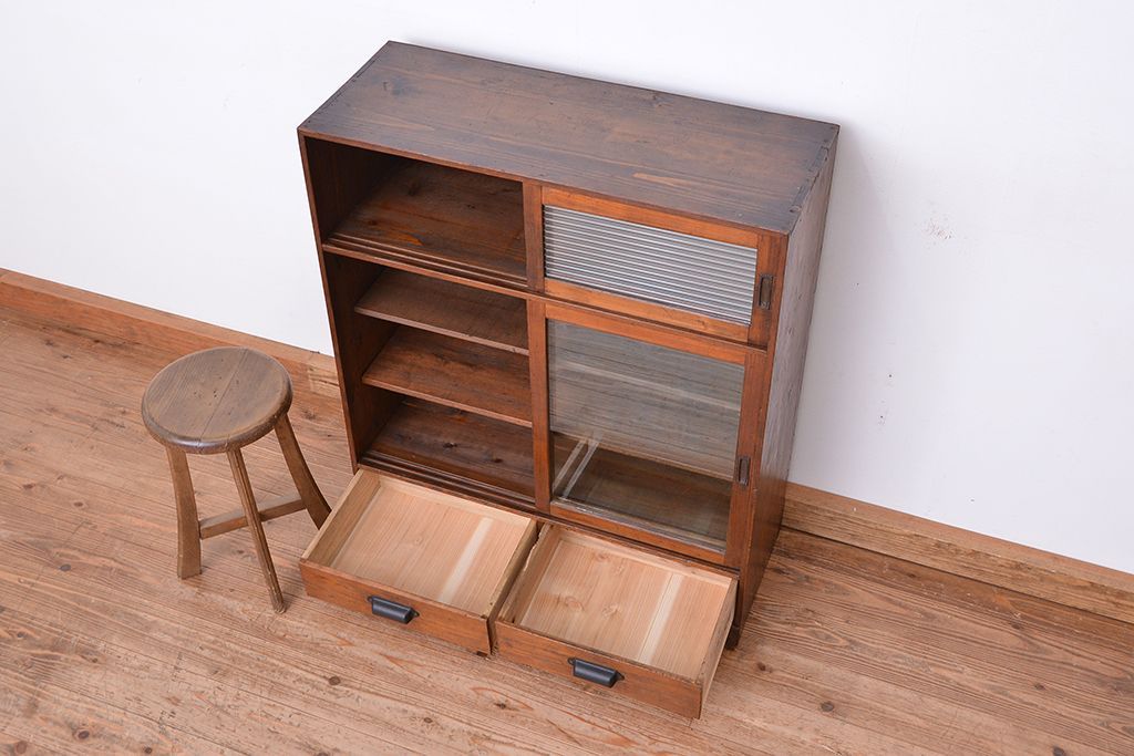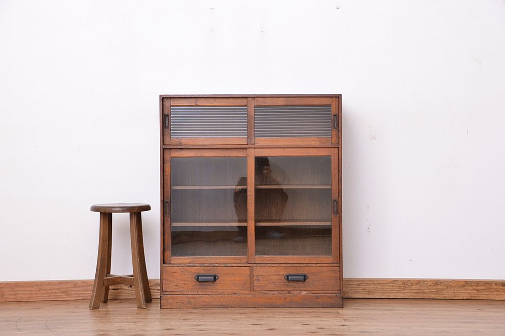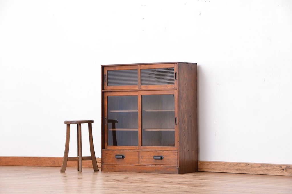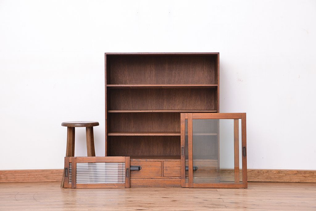 アンティーク家具 アンティーク 古い木のシンプルな収納棚(食器棚)