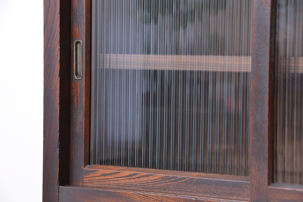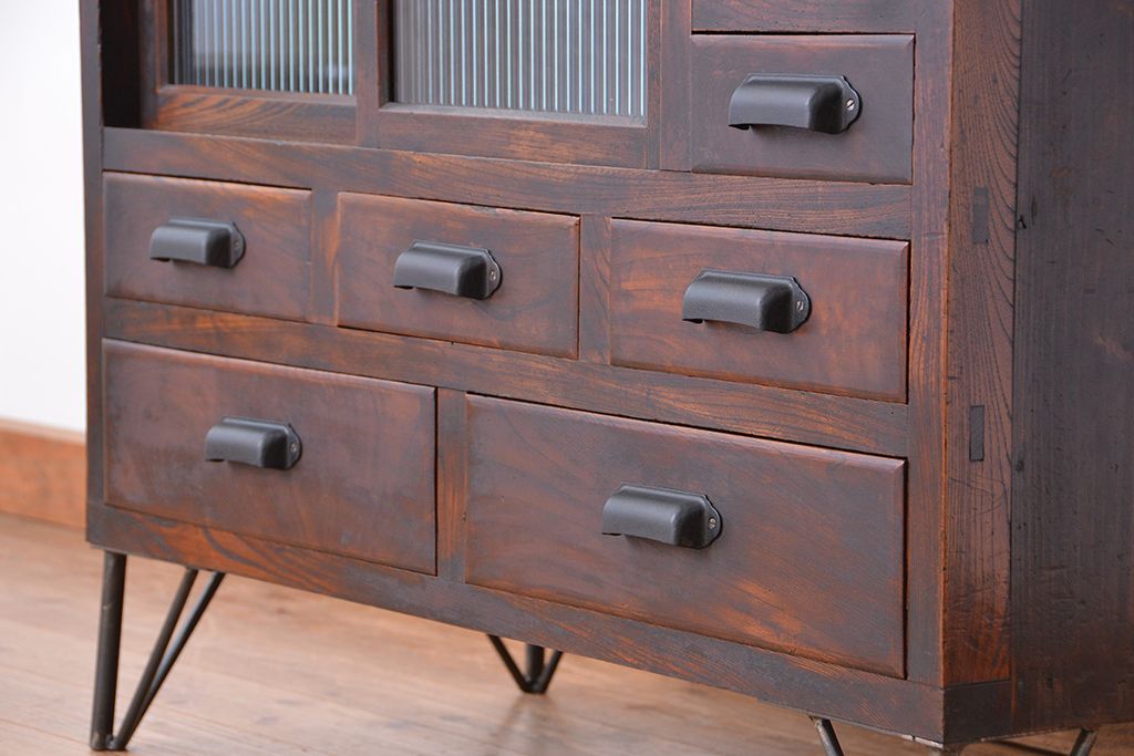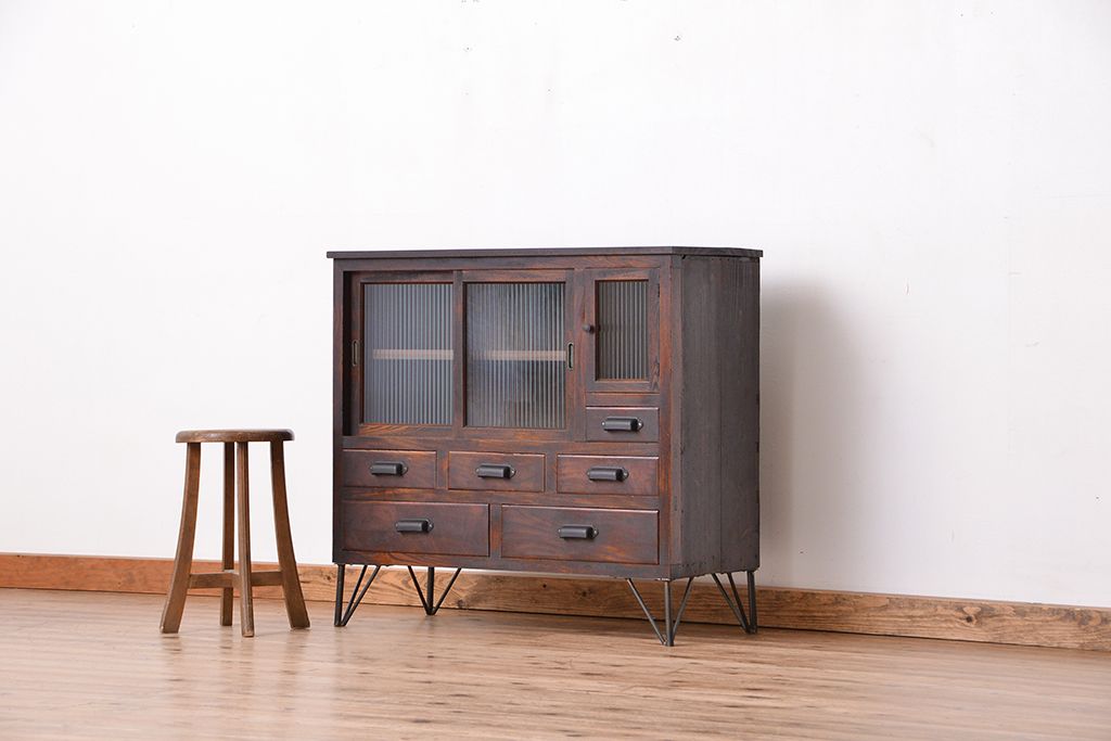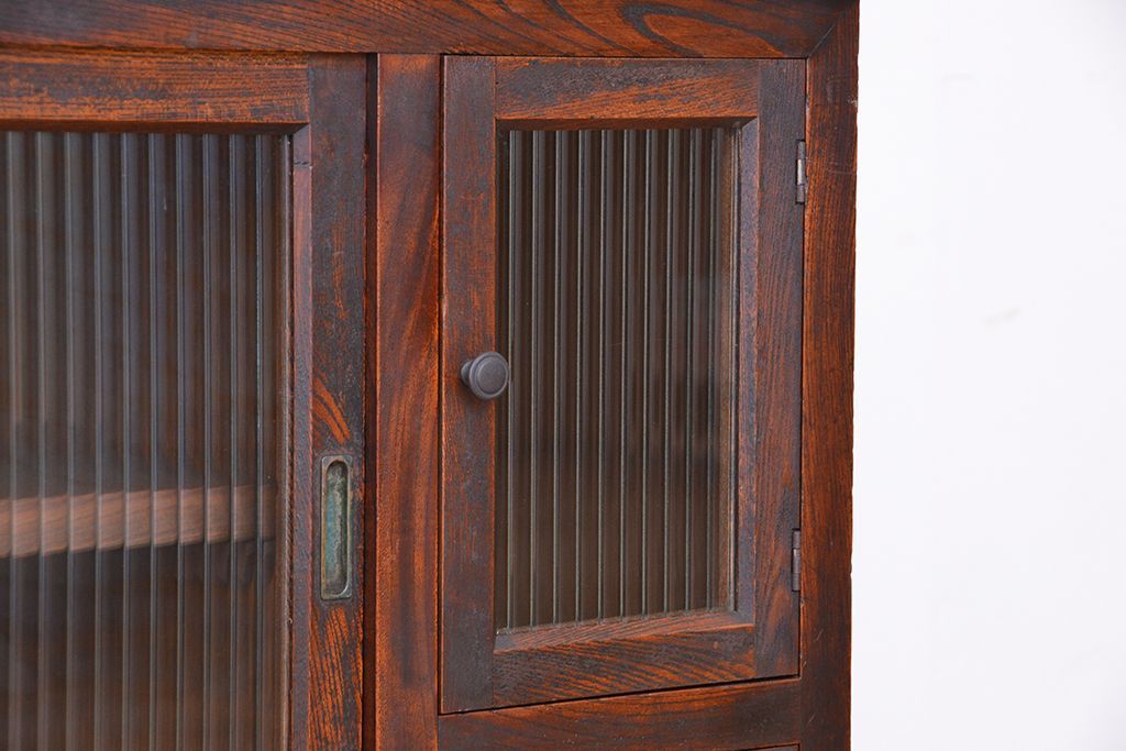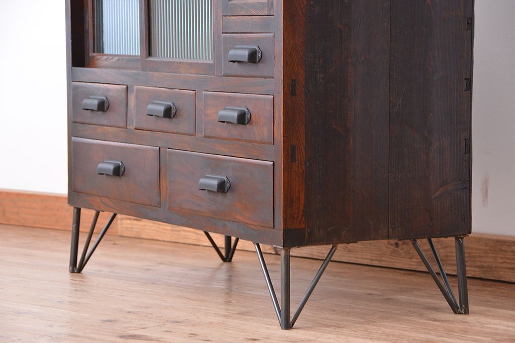 アンティーク家具 アンティーク 前面欅材のモールガラス鉄脚収納棚
