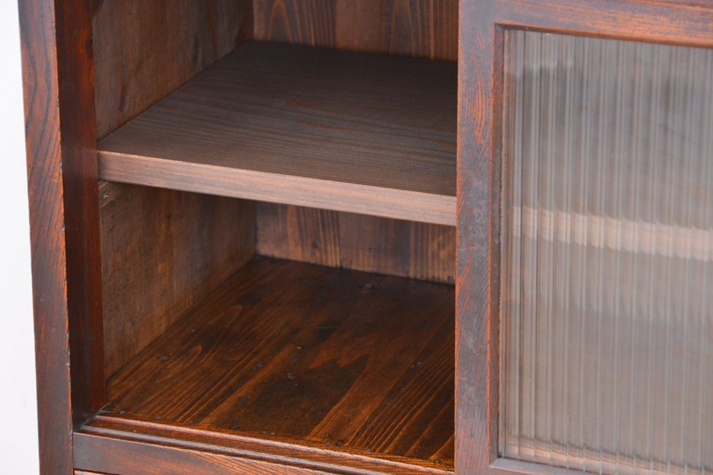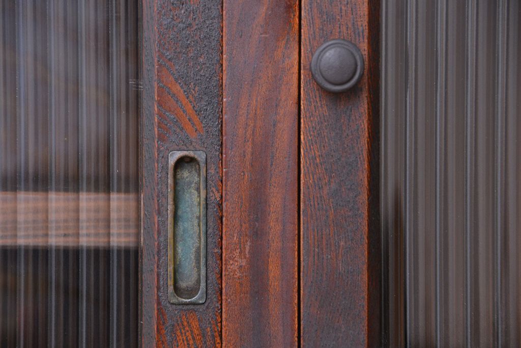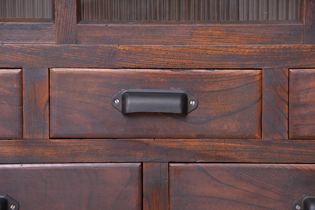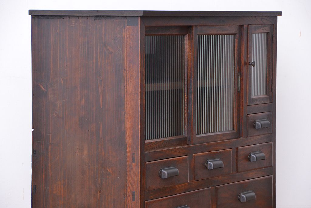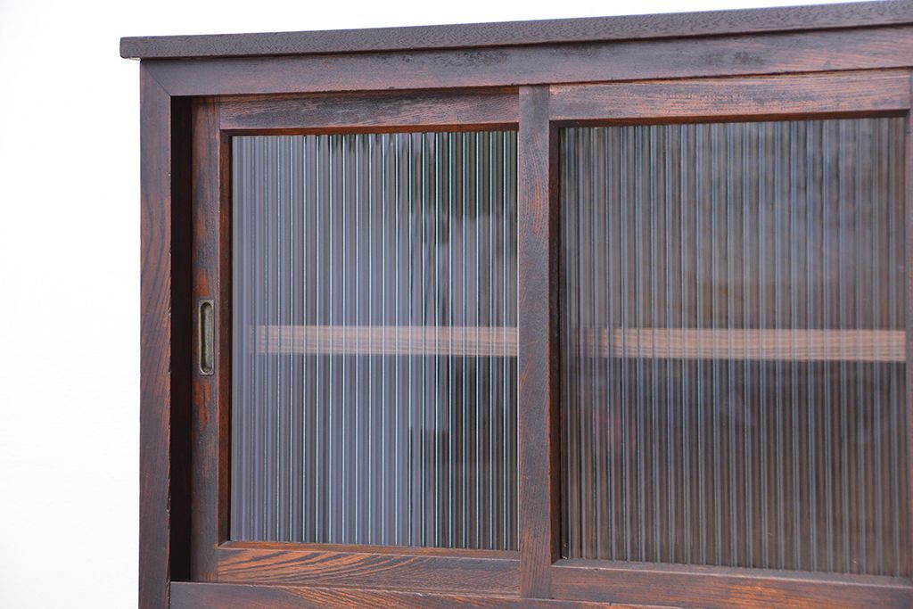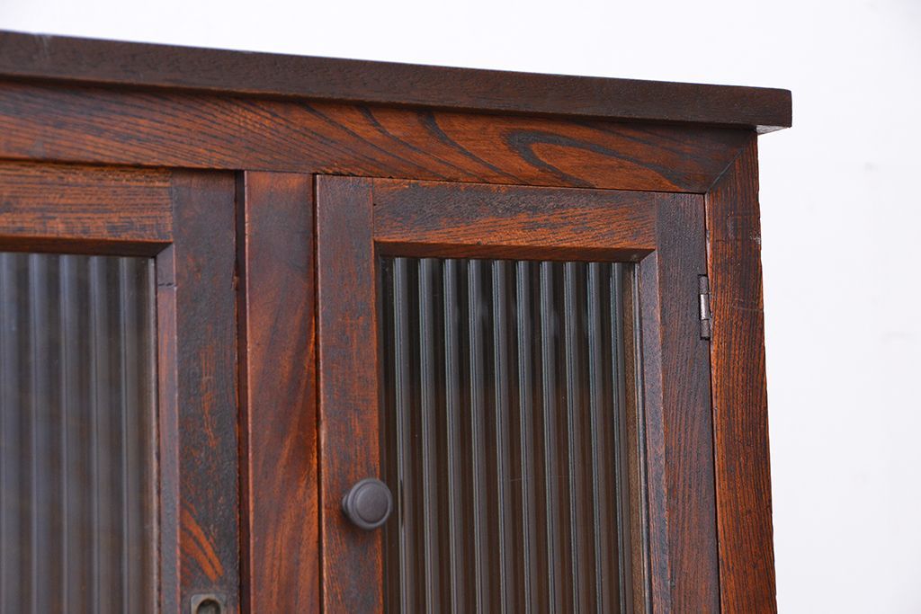 アンティーク家具 アンティーク 前面欅材のモールガラス鉄脚収納棚