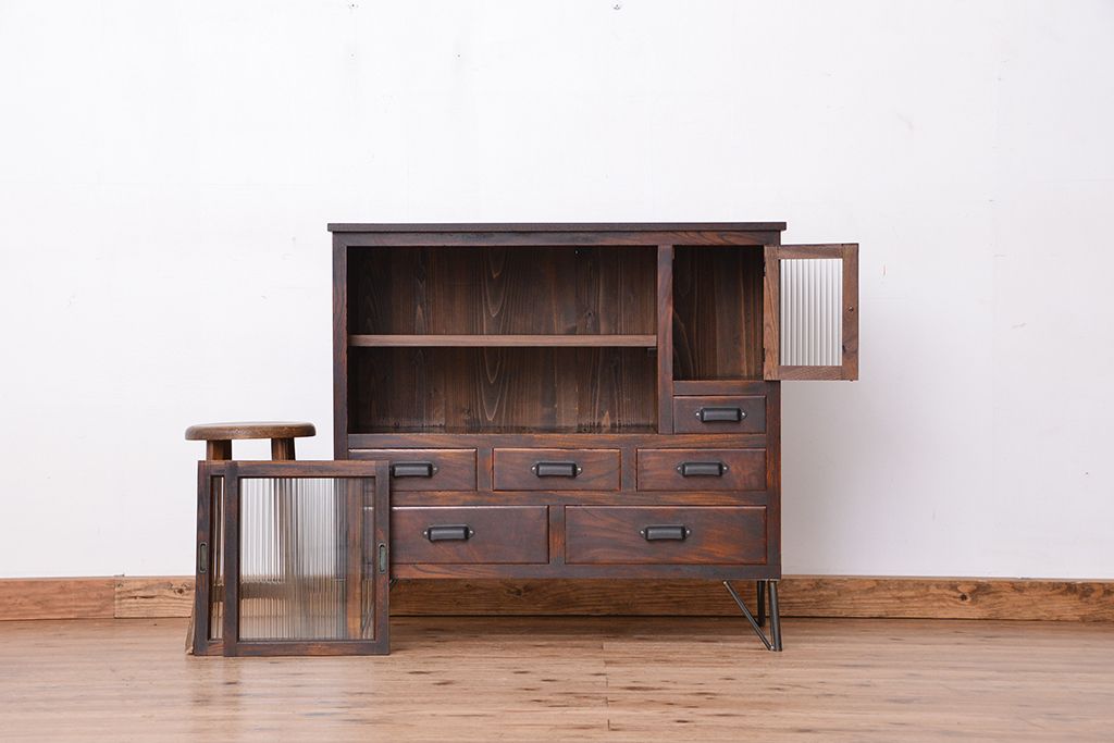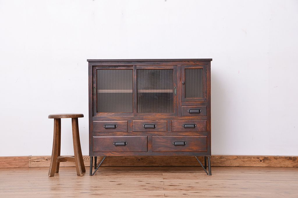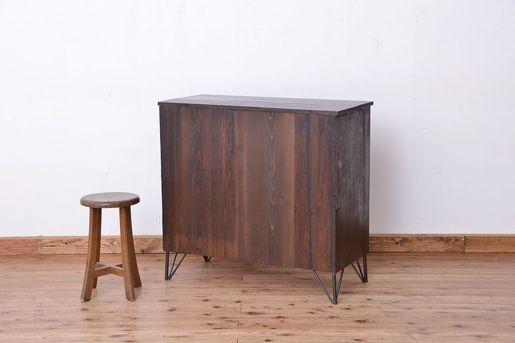 時代感のある家具をフローリングに似合う鉄脚でアレンジしました。