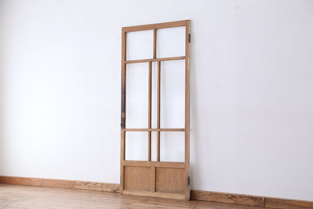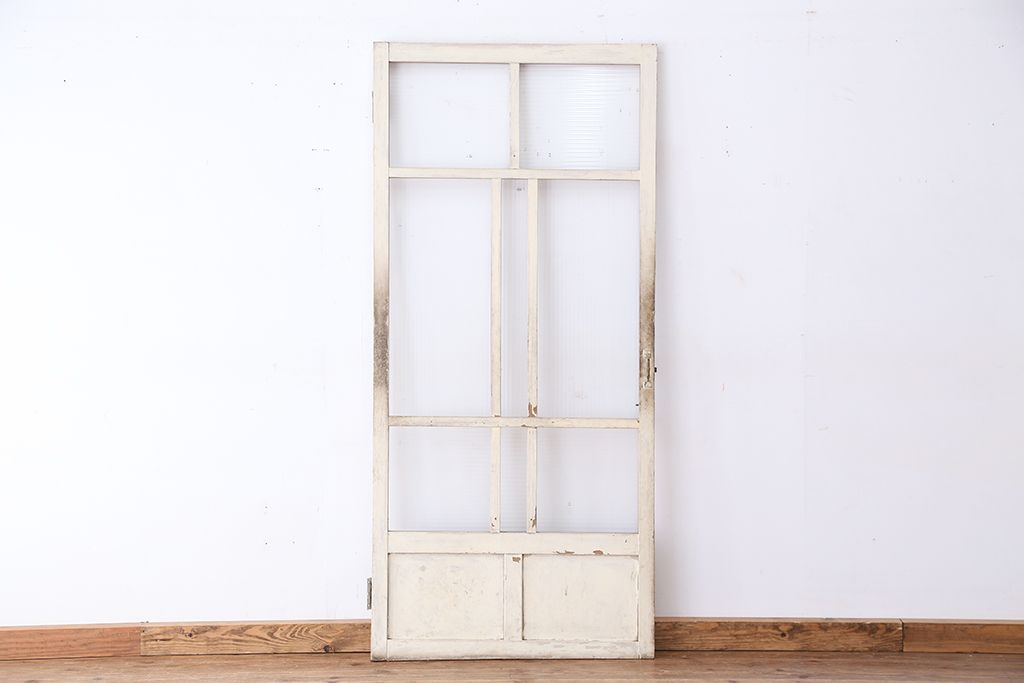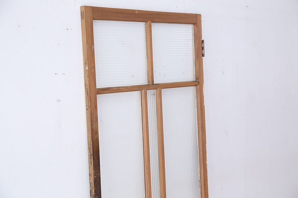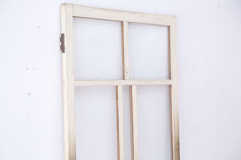 アンティーク ペンキと木味の使い込まれたモールガラス扉1枚(ドア)