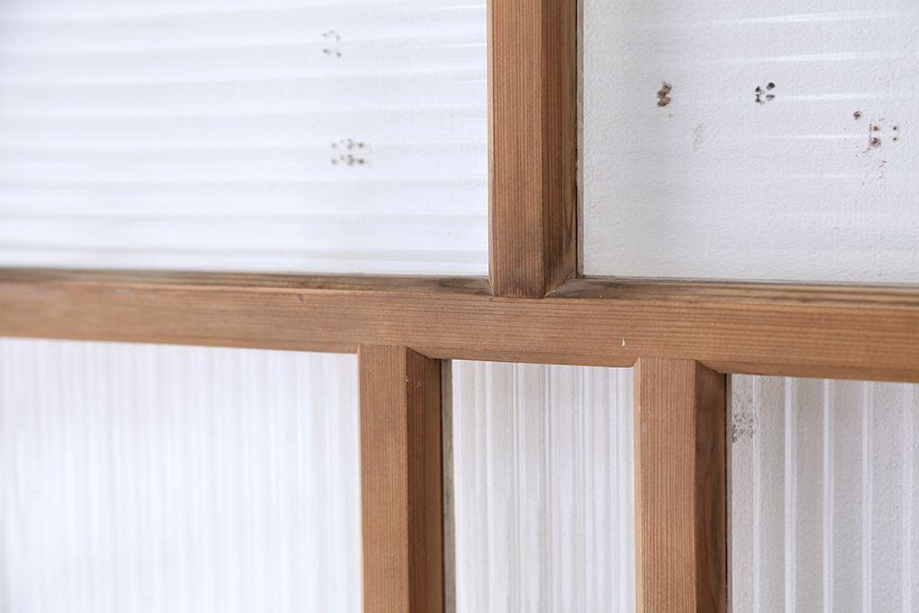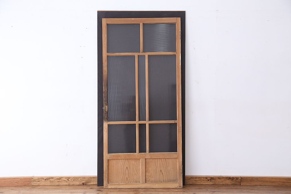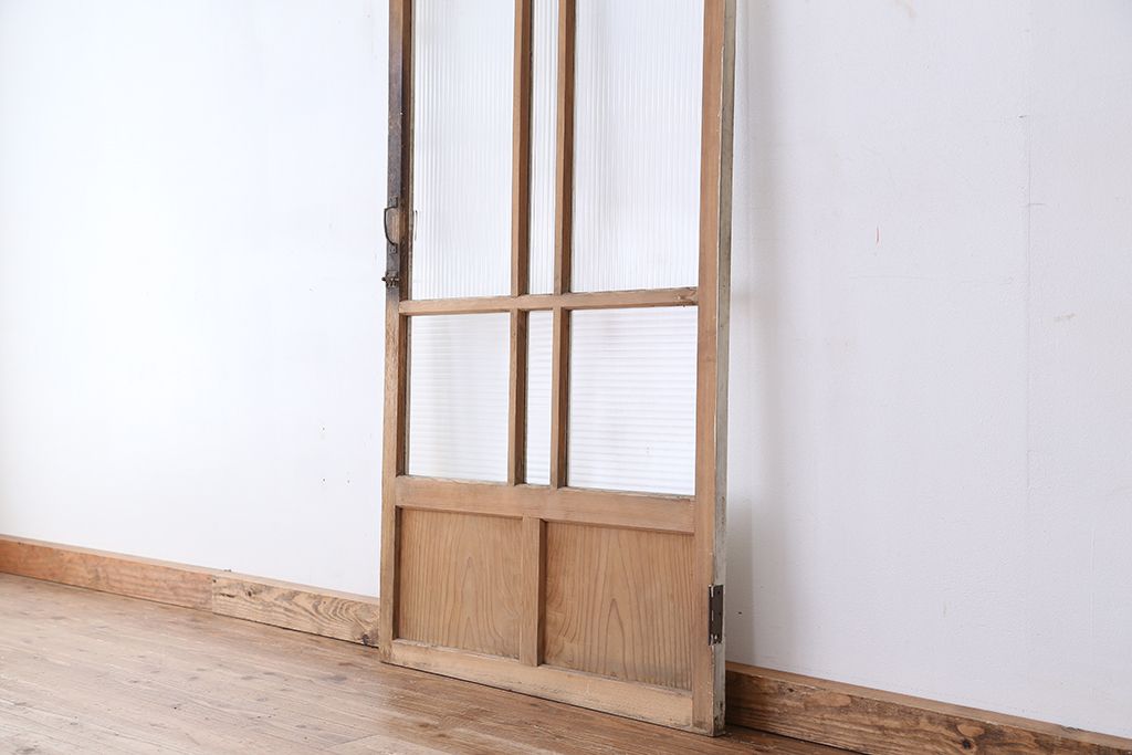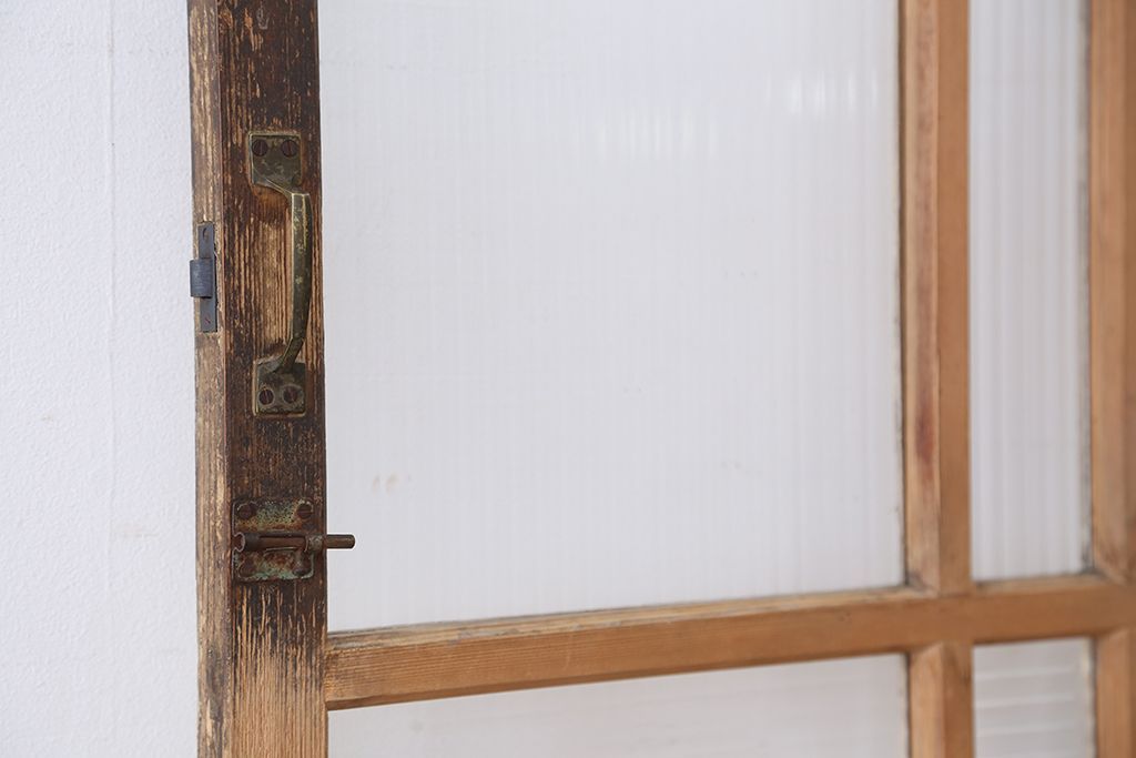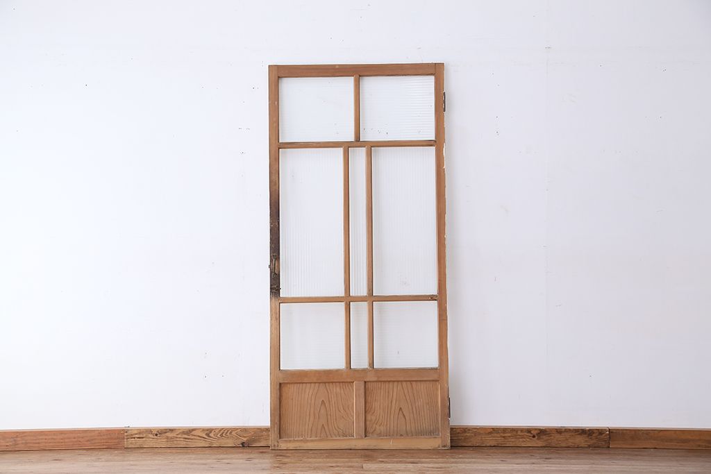 アンティーク ペンキと木味の使い込まれたモールガラス扉1枚(ドア)