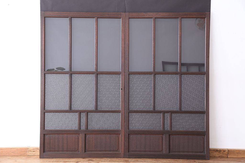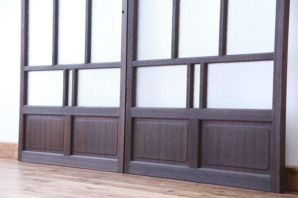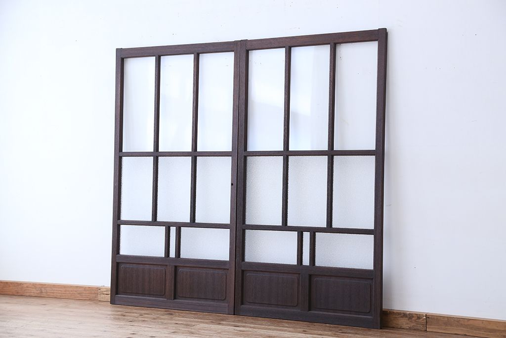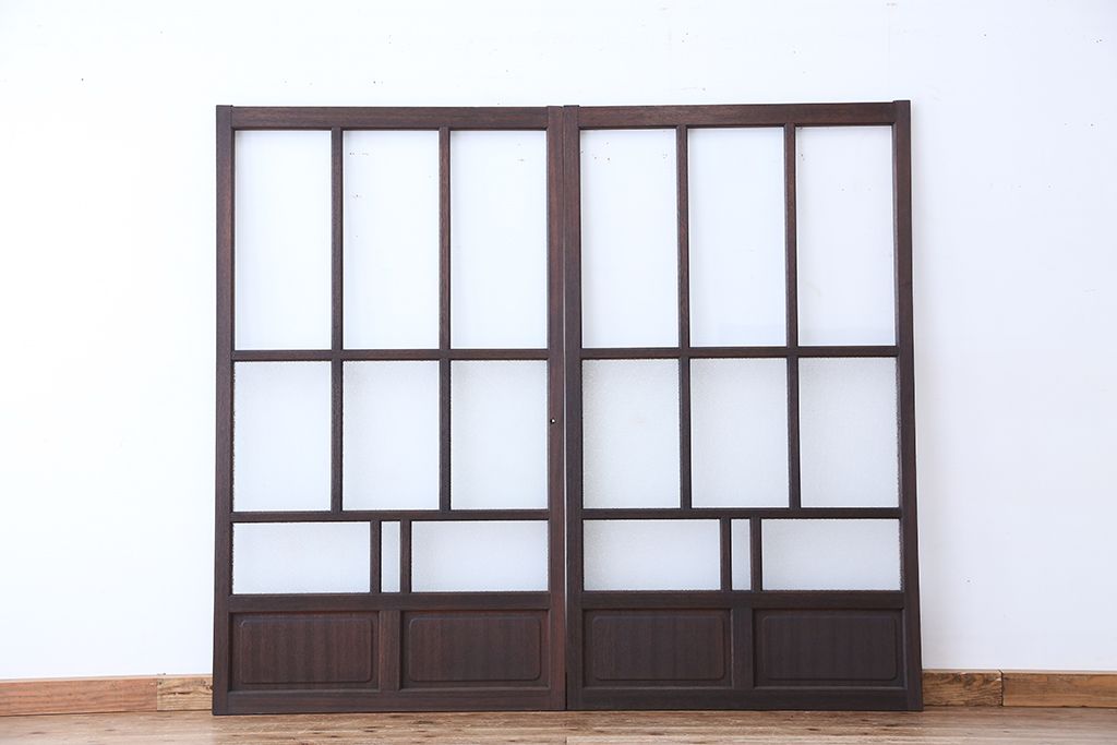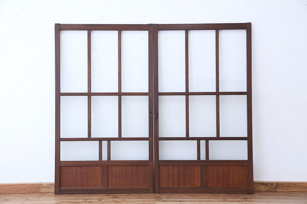和製アンティーク ダイヤガラス!古い木の背の低い引き戸2枚セット(ガラス戸・窓)