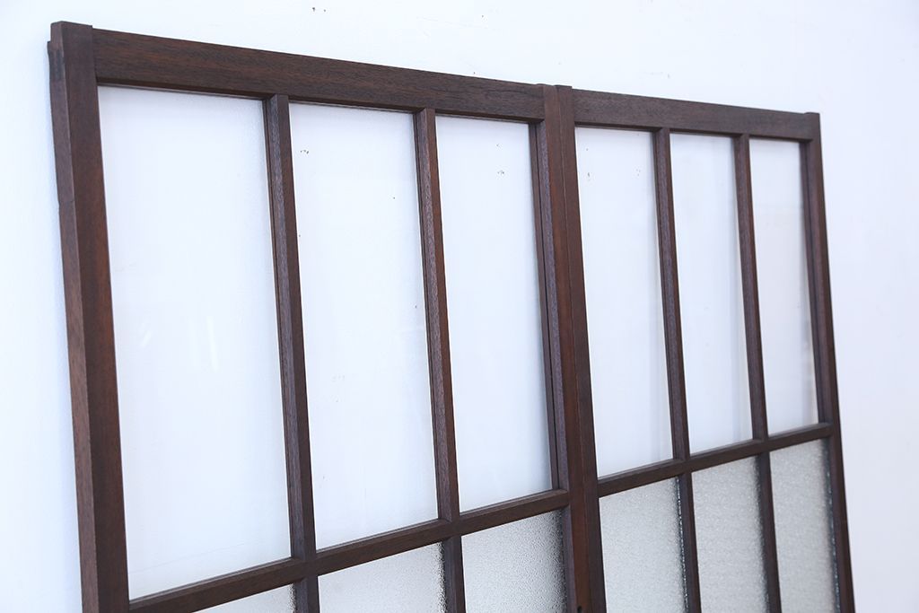 和製アンティーク ダイヤガラス!古い木の背の低い引き戸2枚セット(ガラス戸・窓)です。