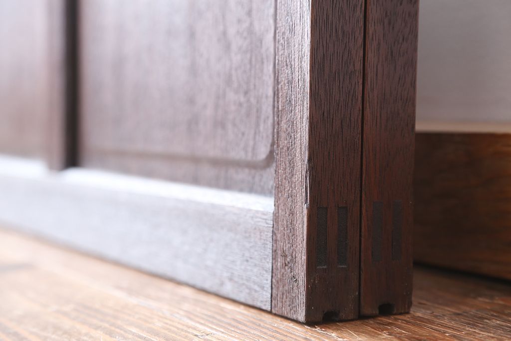 味わい深い木の質感とダイヤガラスの組み合わせで
