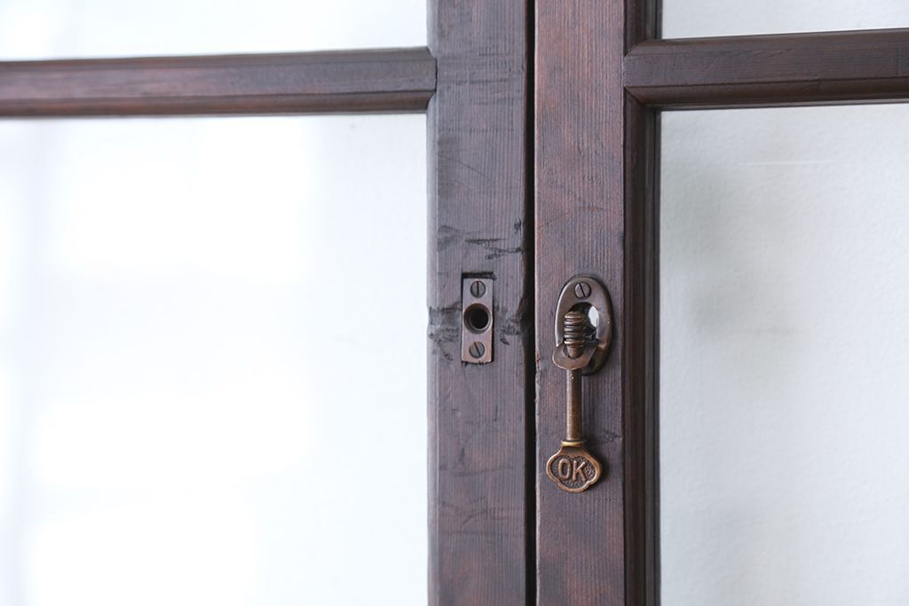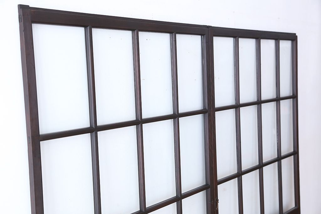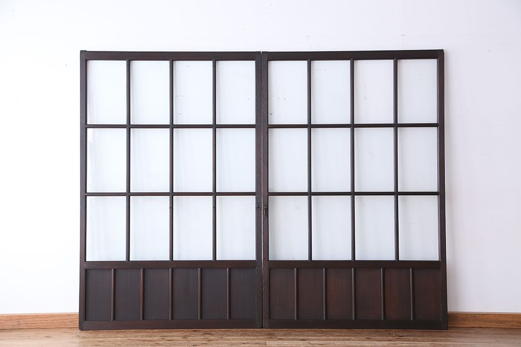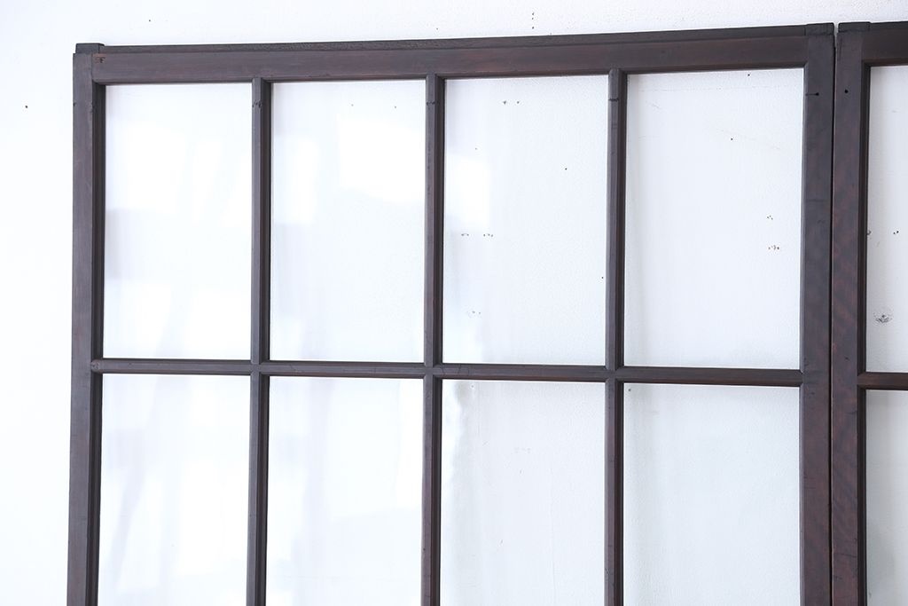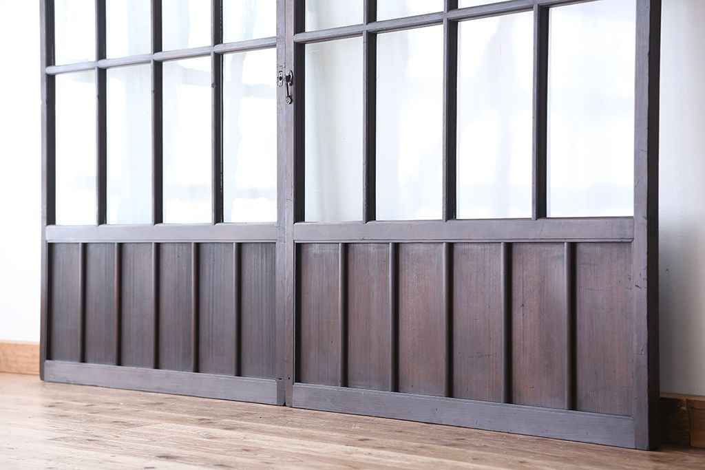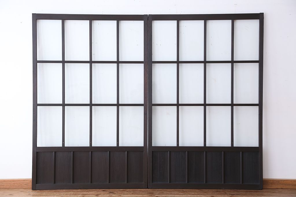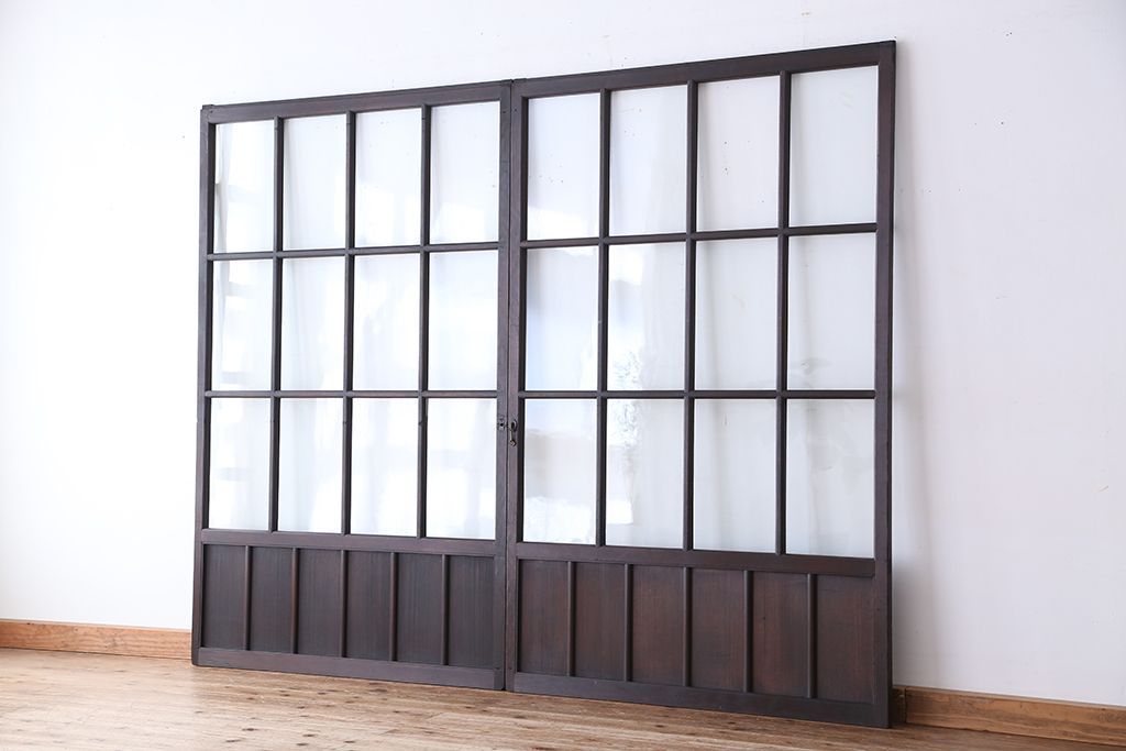 アンティーク 幅の広いシンプルなガラス戸 2枚セット(引き戸)