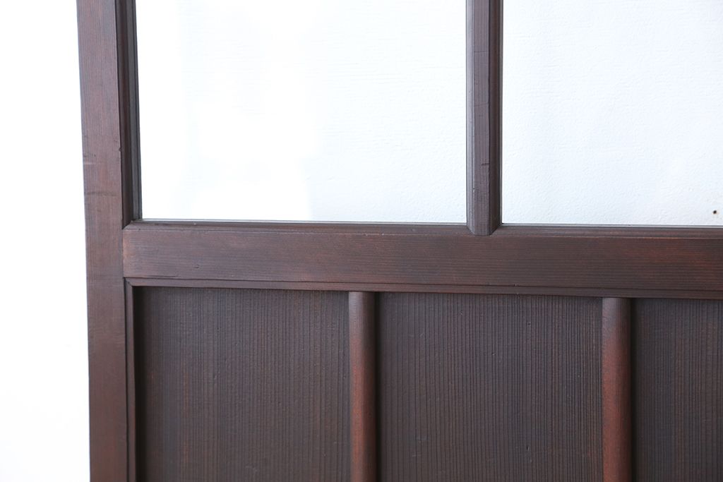 アンティーク 幅の広いシンプルなガラス戸 2枚セット(引き戸)です。
