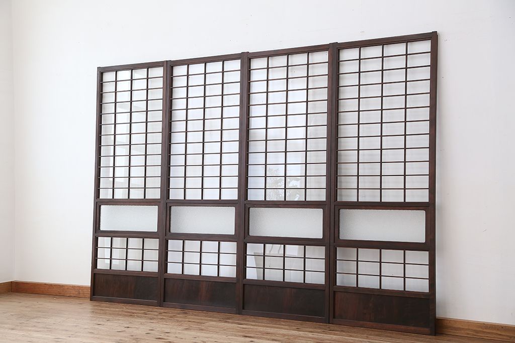 アンティーク 美しいガラス格子戸 4枚セット(ガラス戸/引き戸)です。