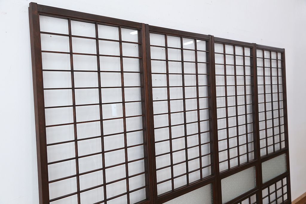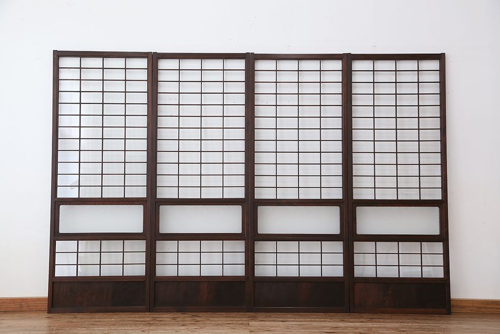 アンティーク 美しいガラス格子戸 4枚セット(ガラス戸/引き戸)