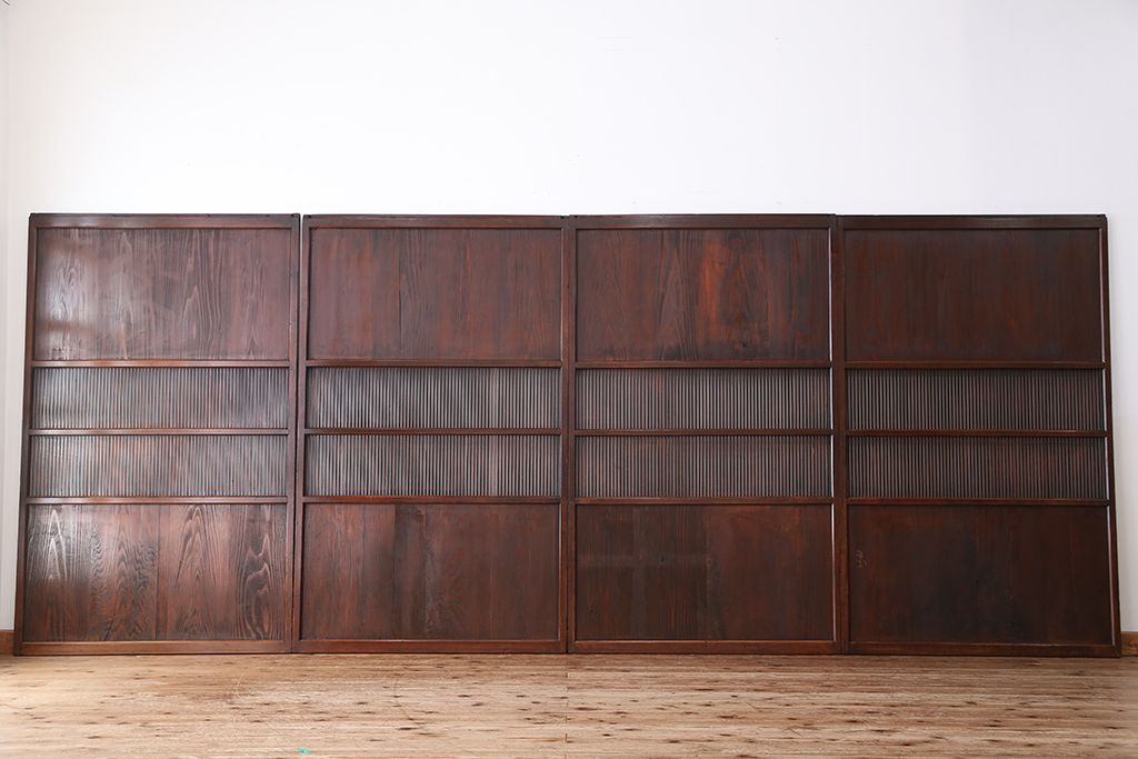 アンティーク 味わい深い幅広格子帯戸4枚セット(1)