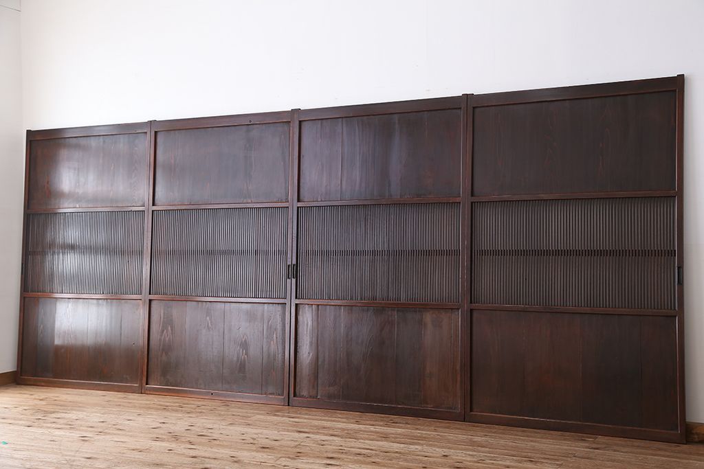 アンティーク 味わい深い幅広格子帯戸4枚セット(2)