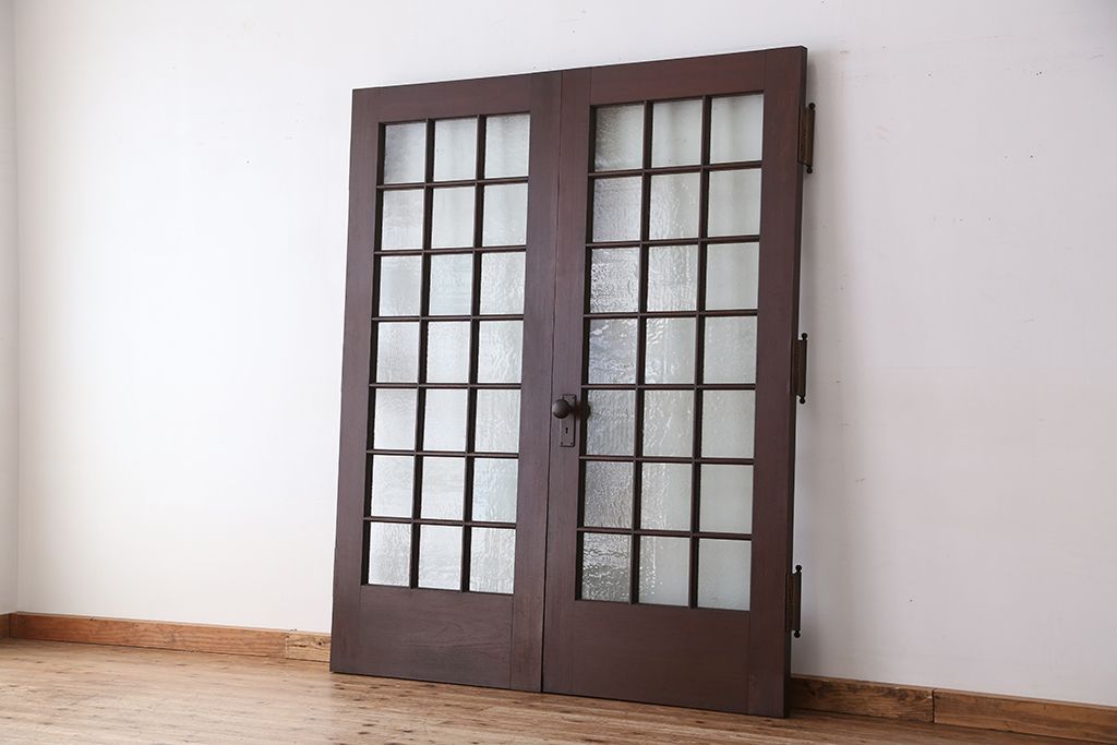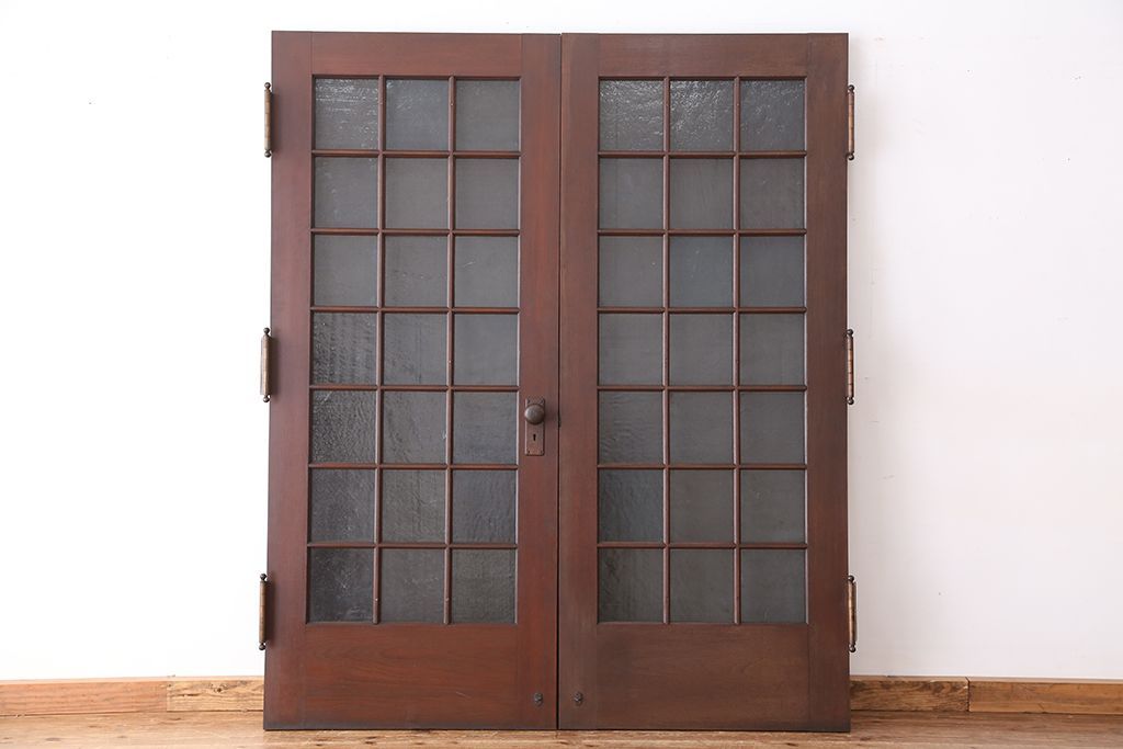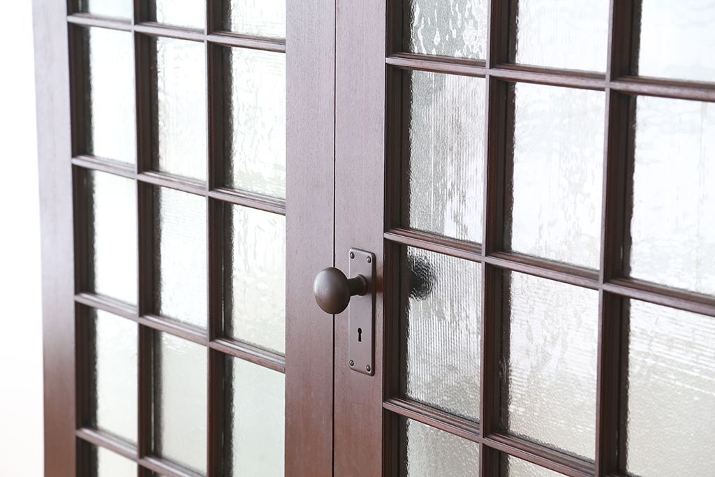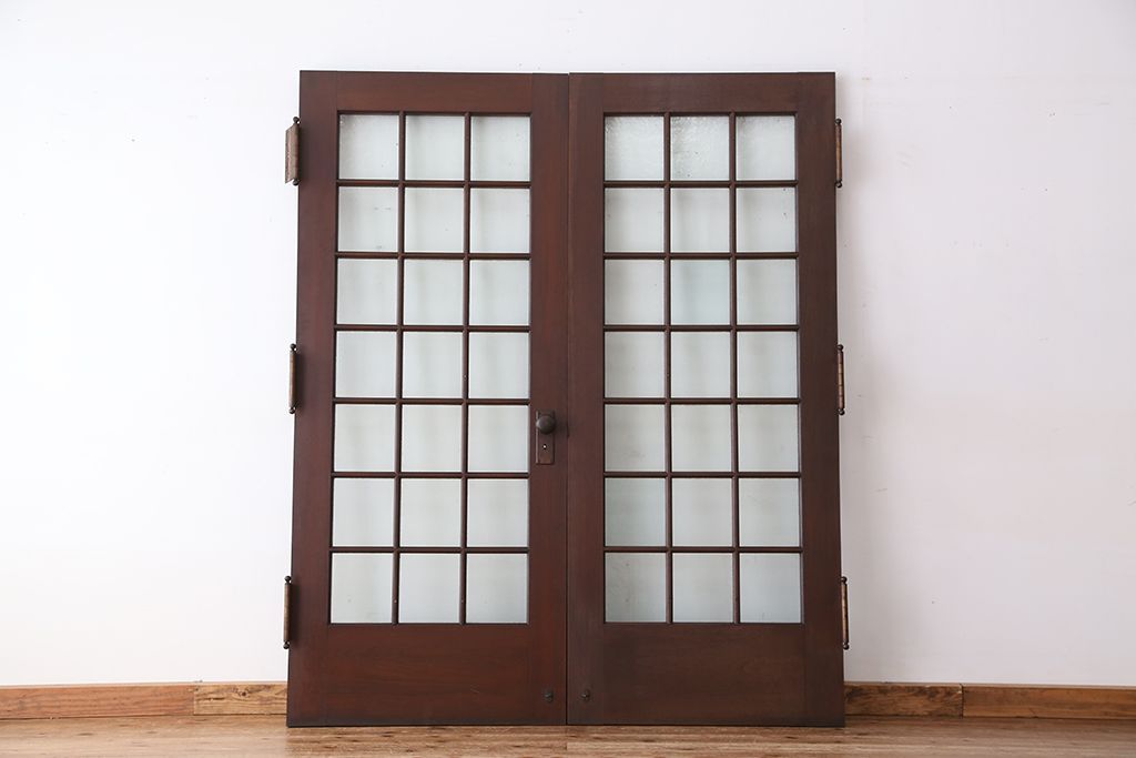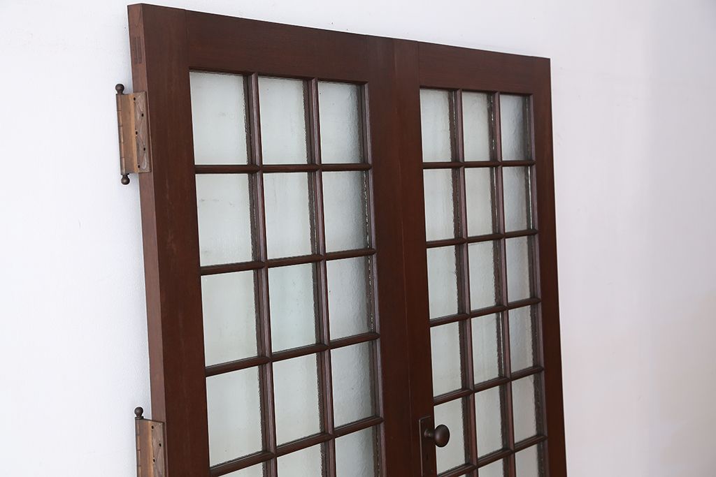 大正ロマン チーク材 国産 重厚で上質な両開きドア1対(扉)