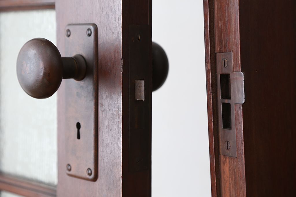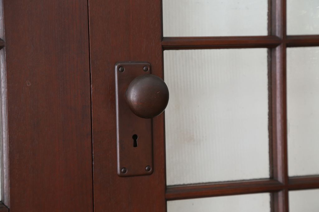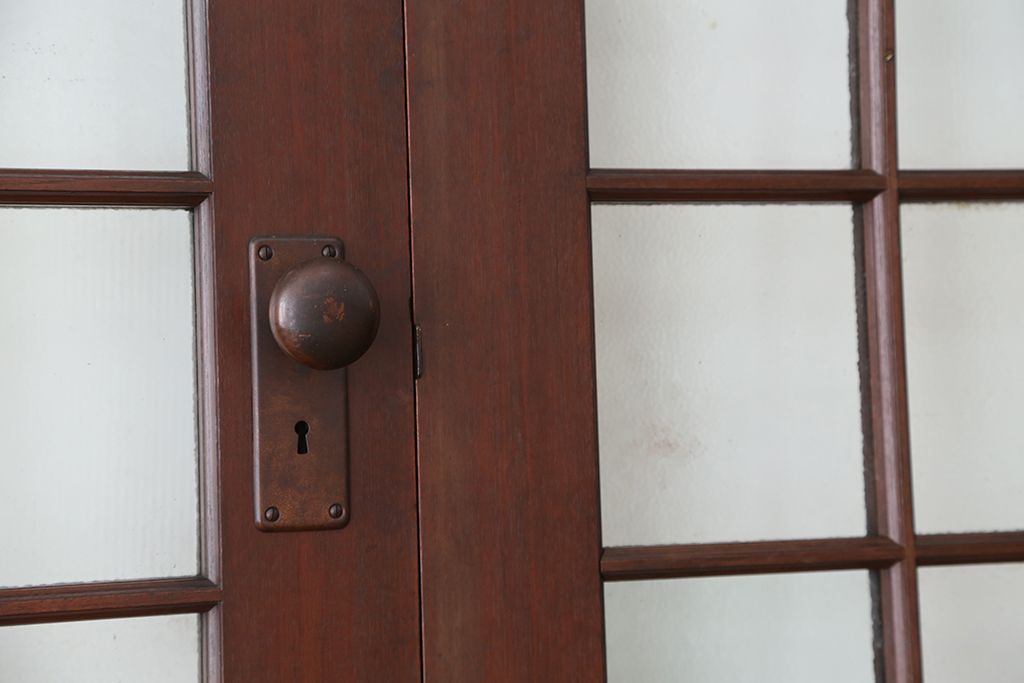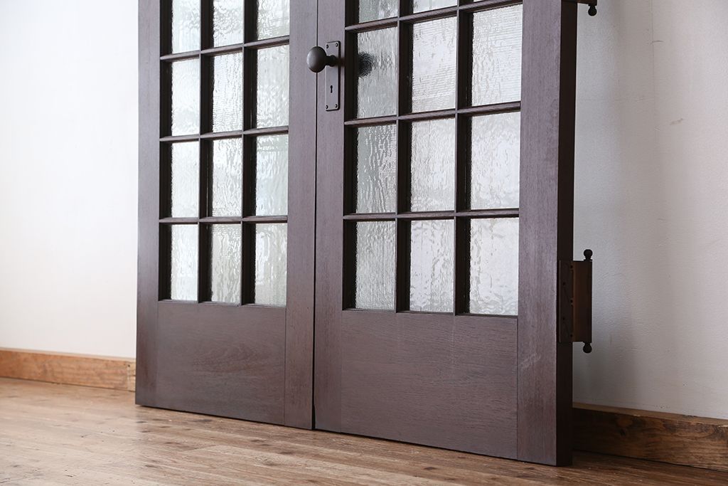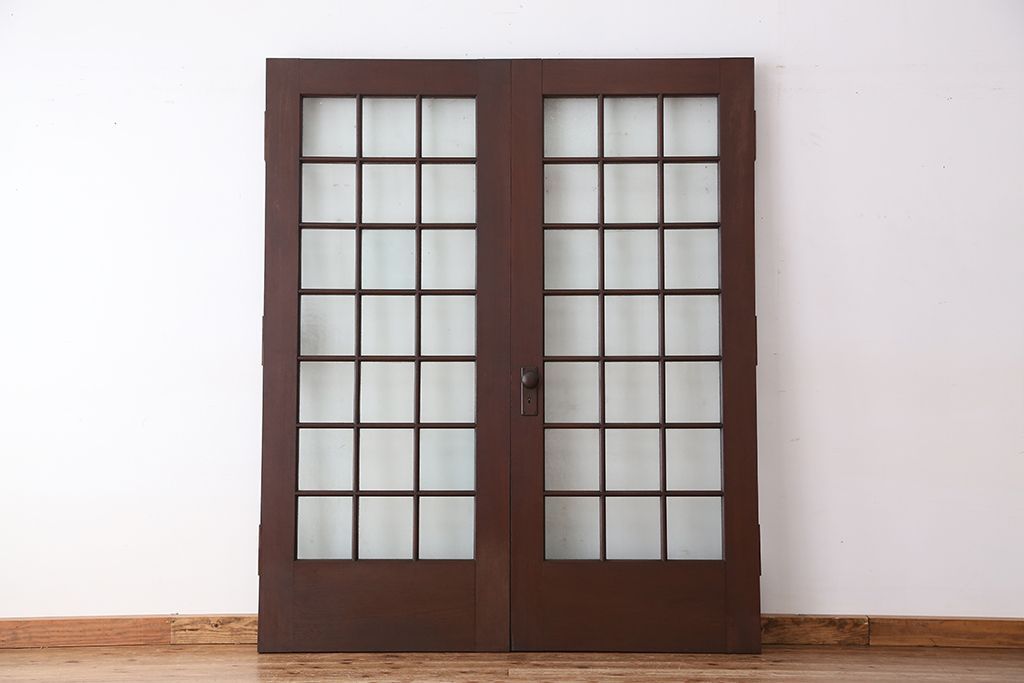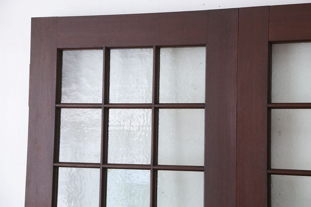 大正ロマン チーク材 国産 重厚で上質な両開きドア1対(扉)