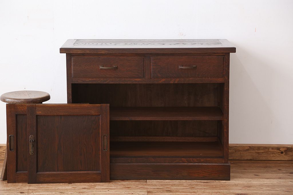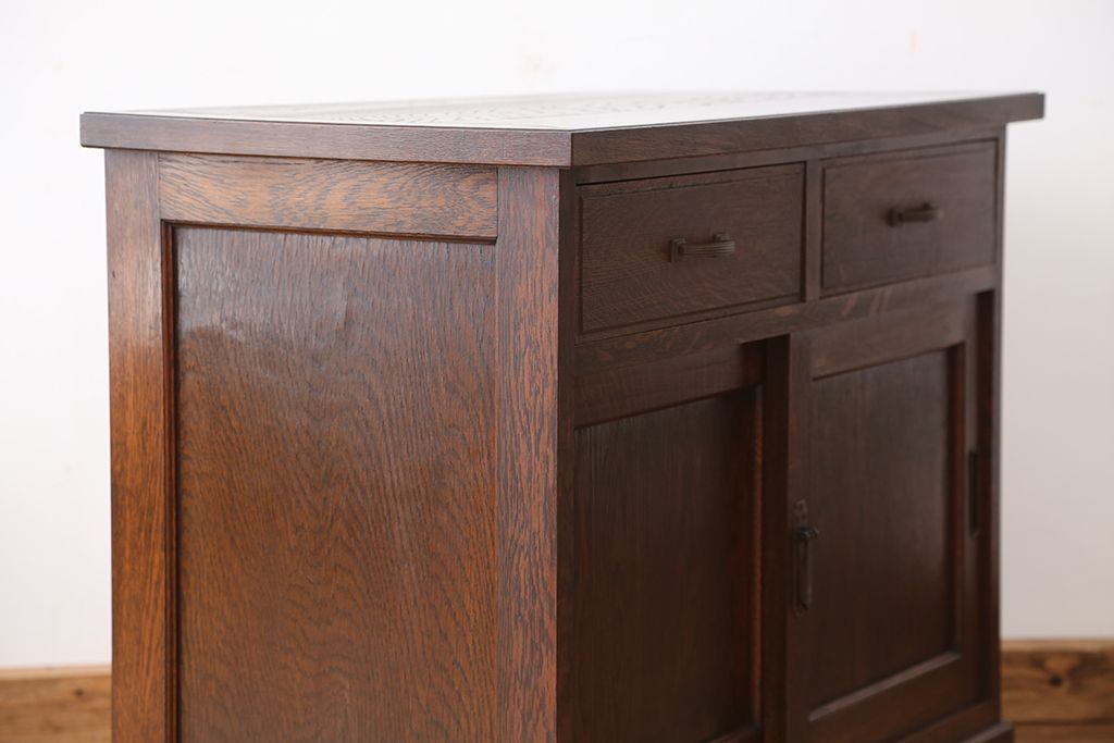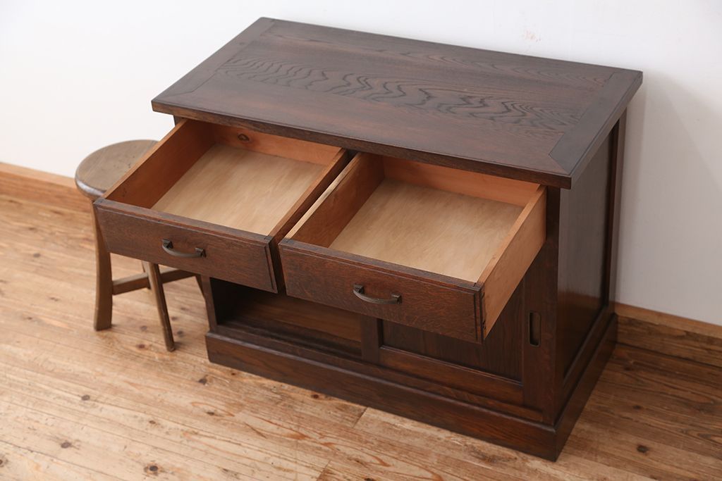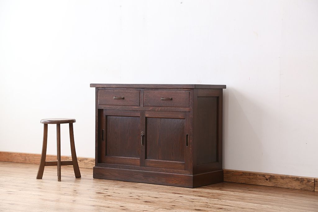アンティーク 古いナラ材の上質なキッチンキャビネット(収納棚、食器棚)です。