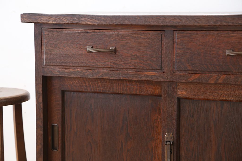 アンティーク家具 アンティーク 古いナラ材の上質なキッチンキャビネット(収納棚、食器棚)
