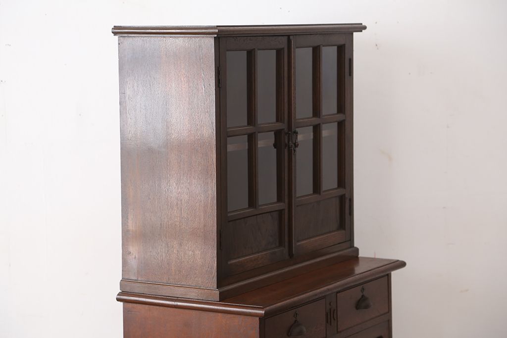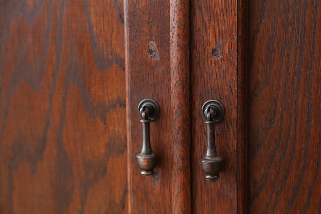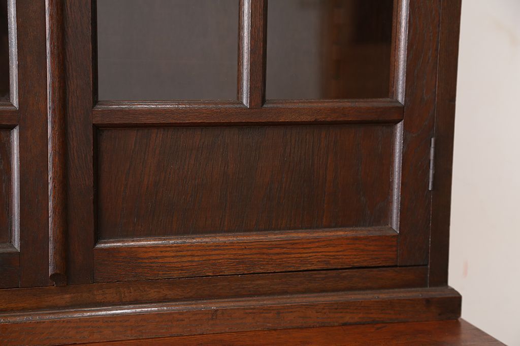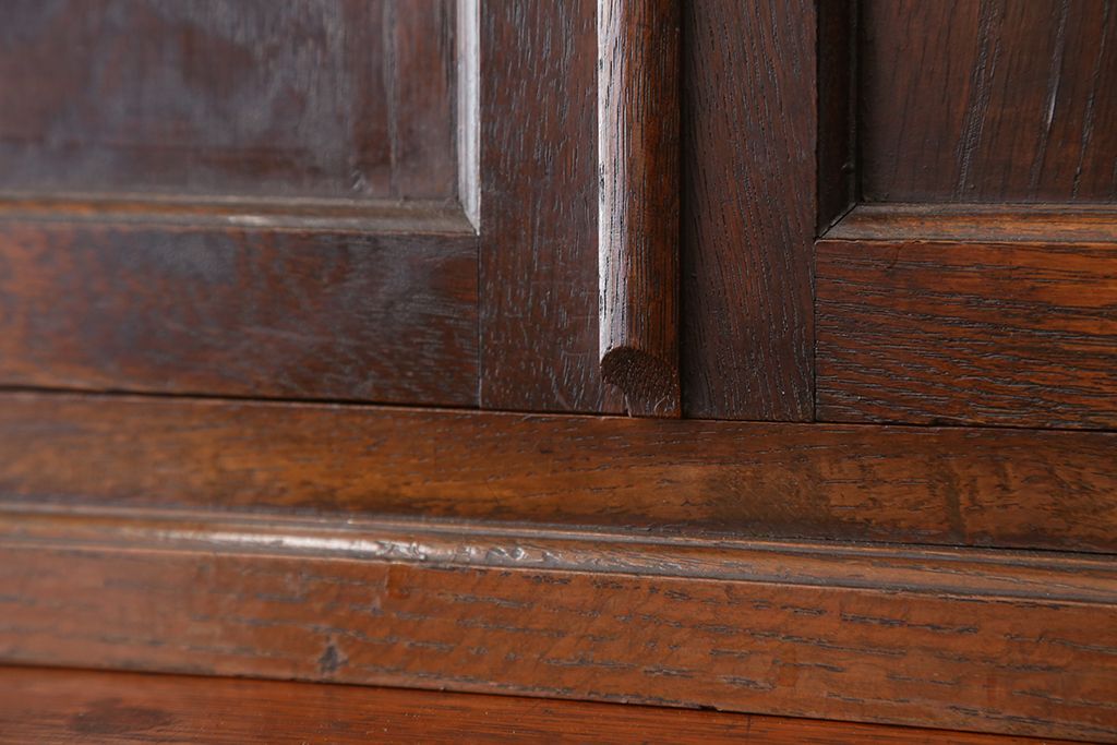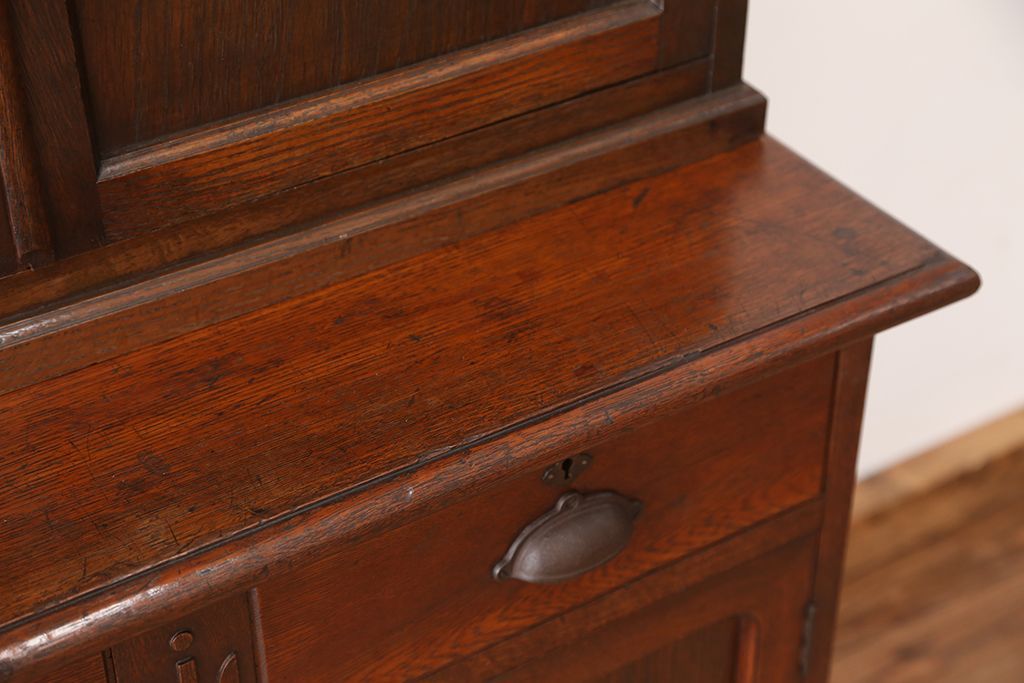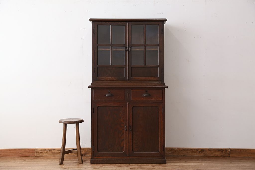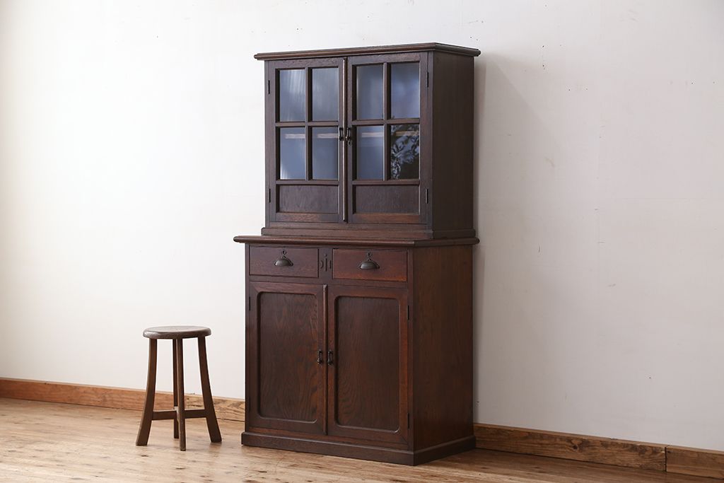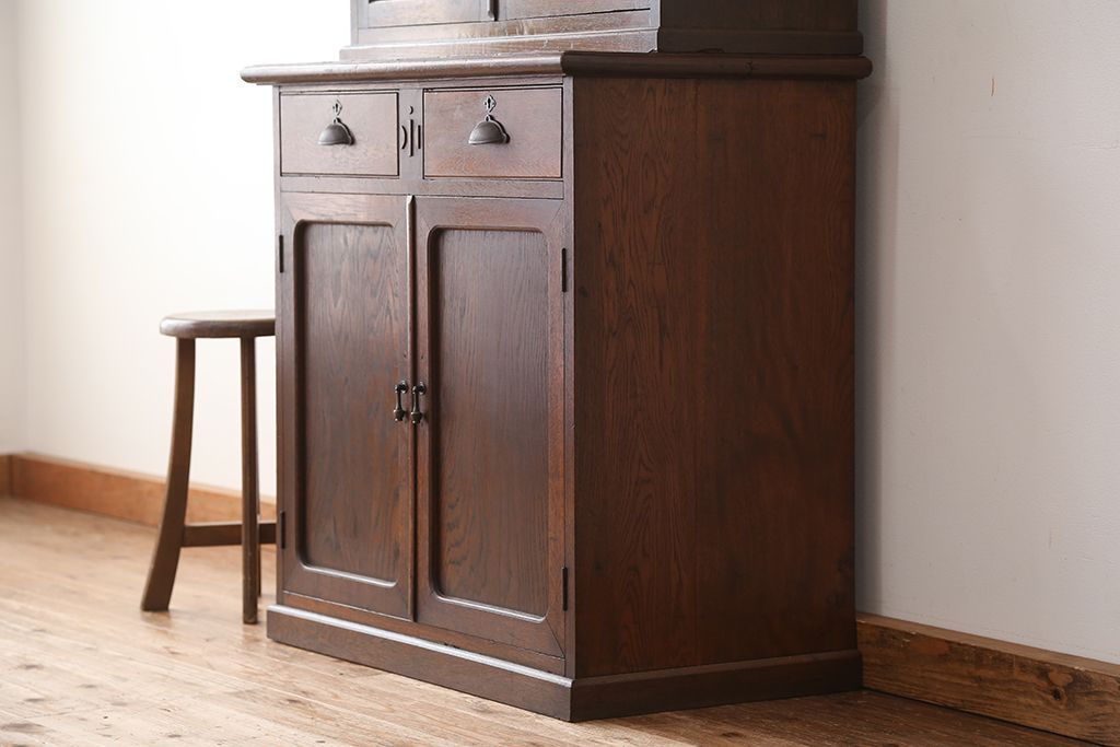 アンティーク家具 大正ロマン 特別注文造り 厚手ナラ材の上質な二段重ね食器棚(収納棚)