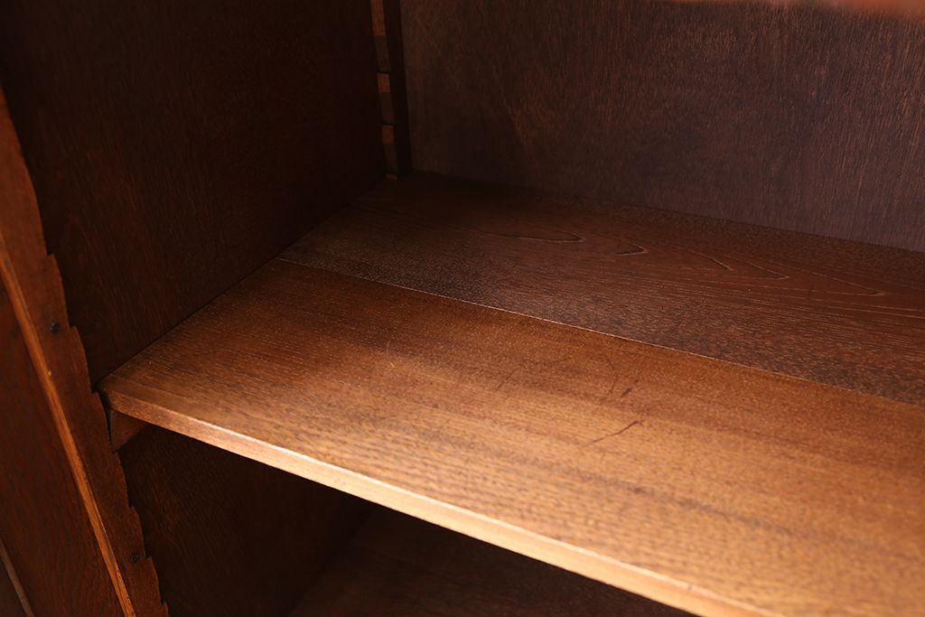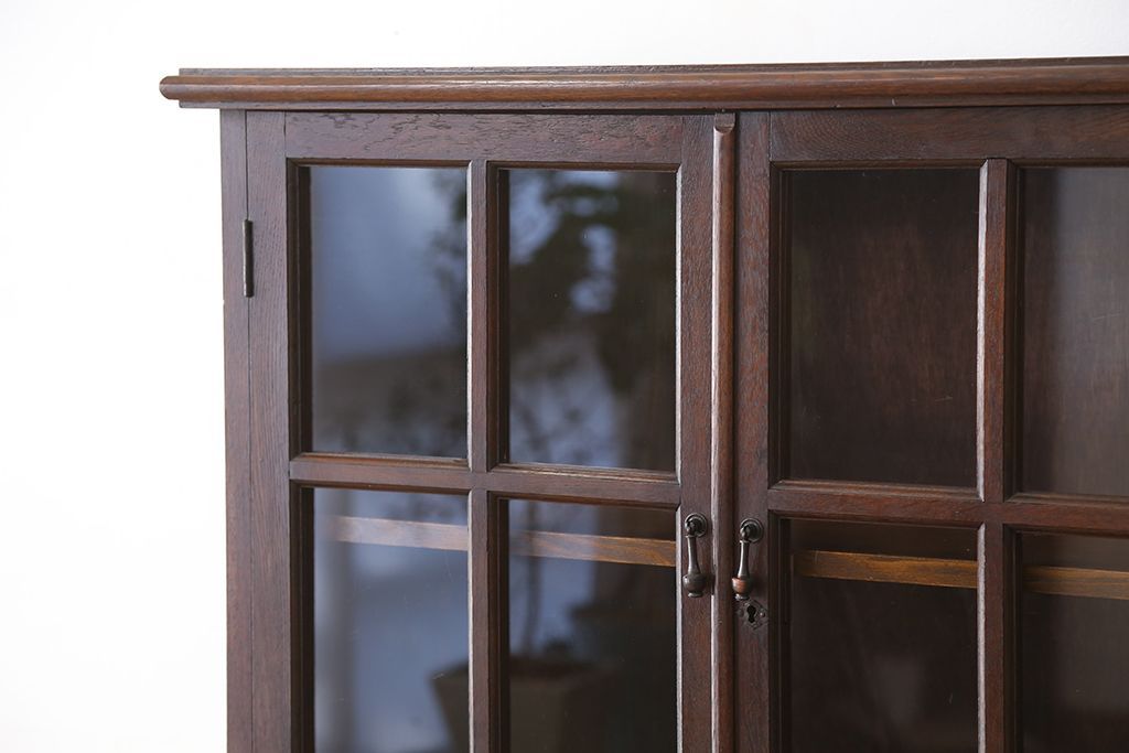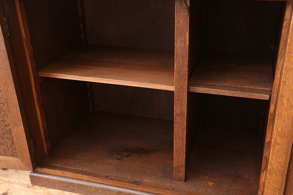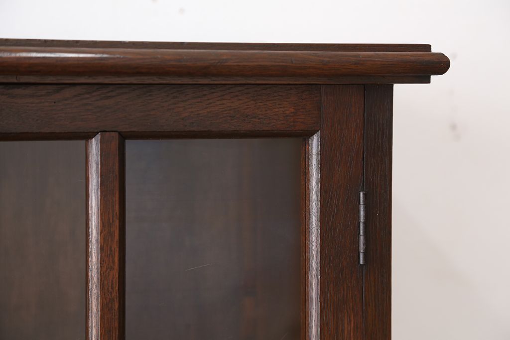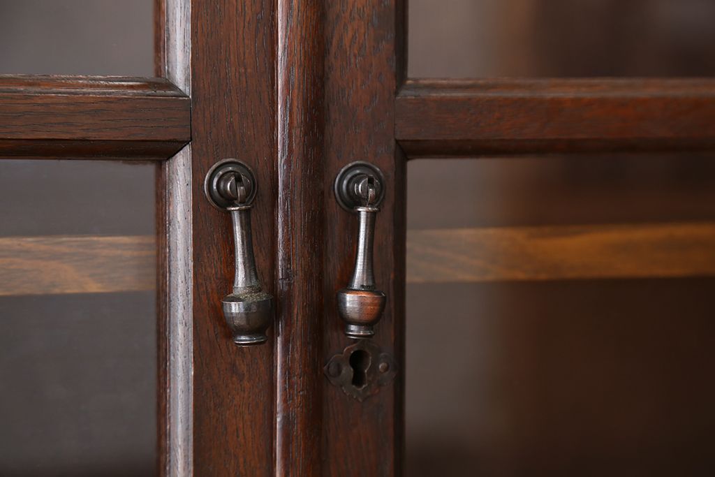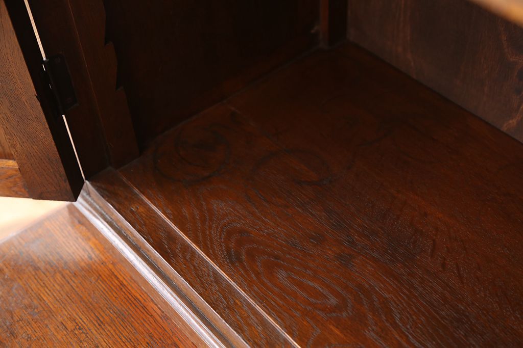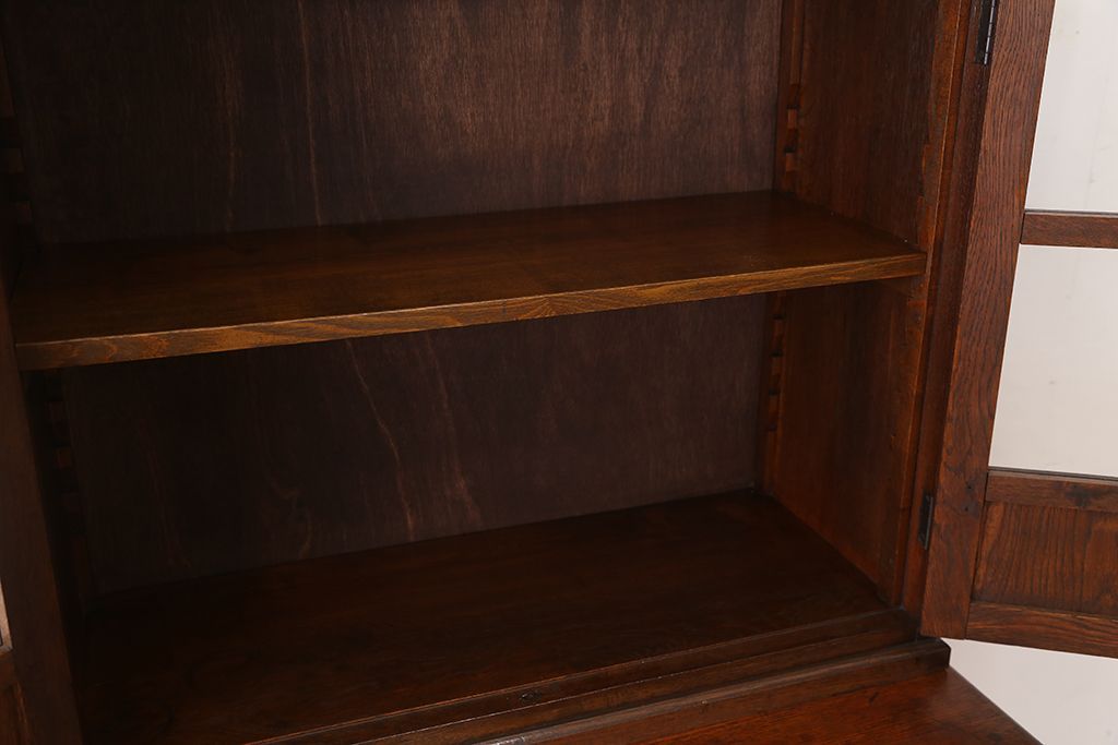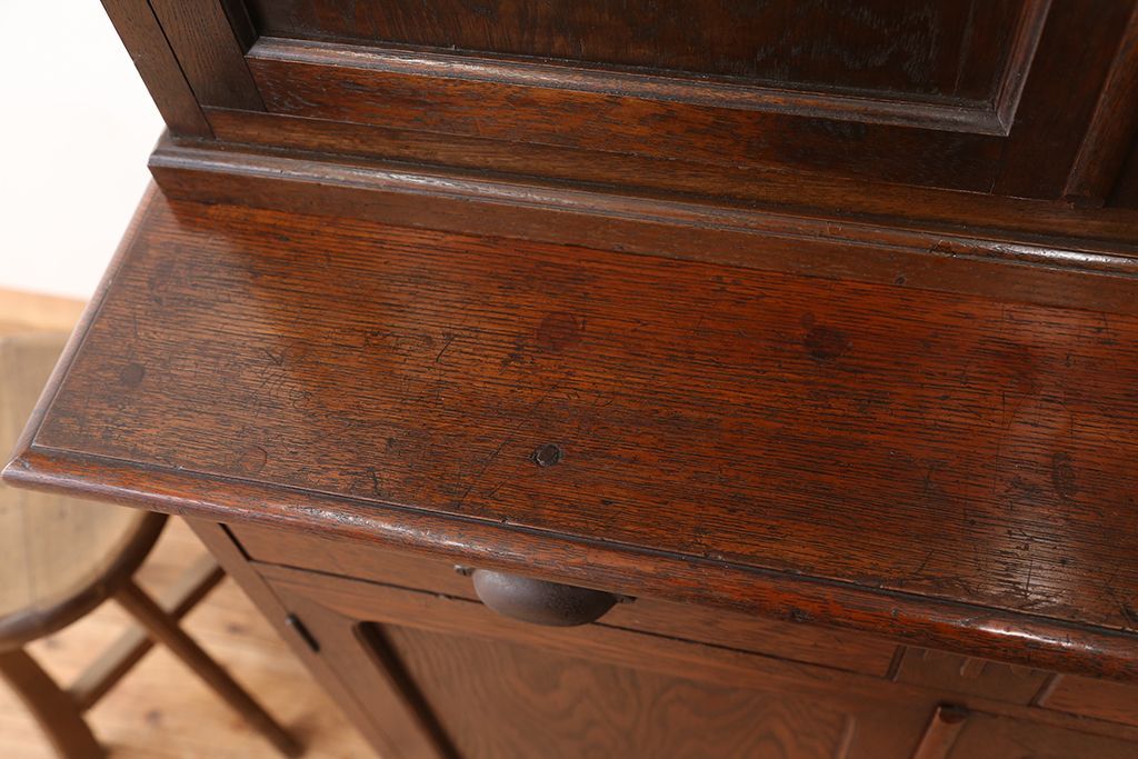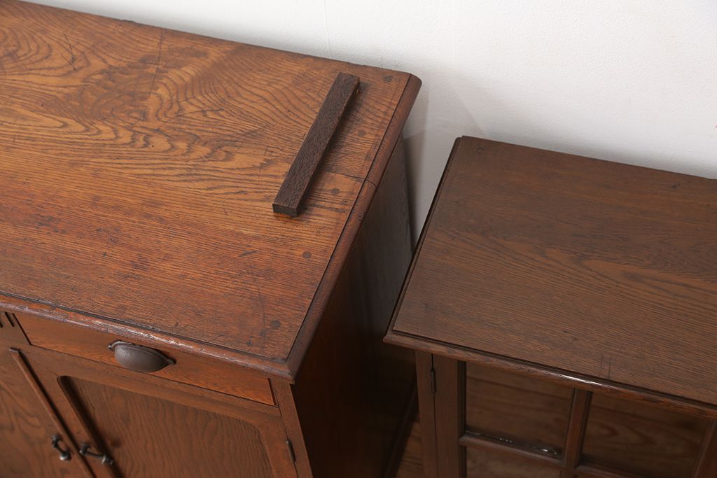 アンティーク家具 大正ロマン 特別注文造り 厚手ナラ材の上質な二段重ね食器棚(収納棚)