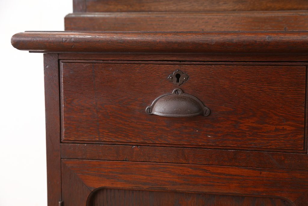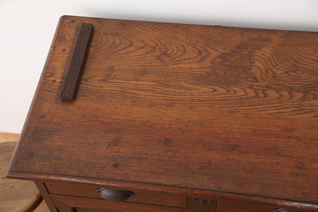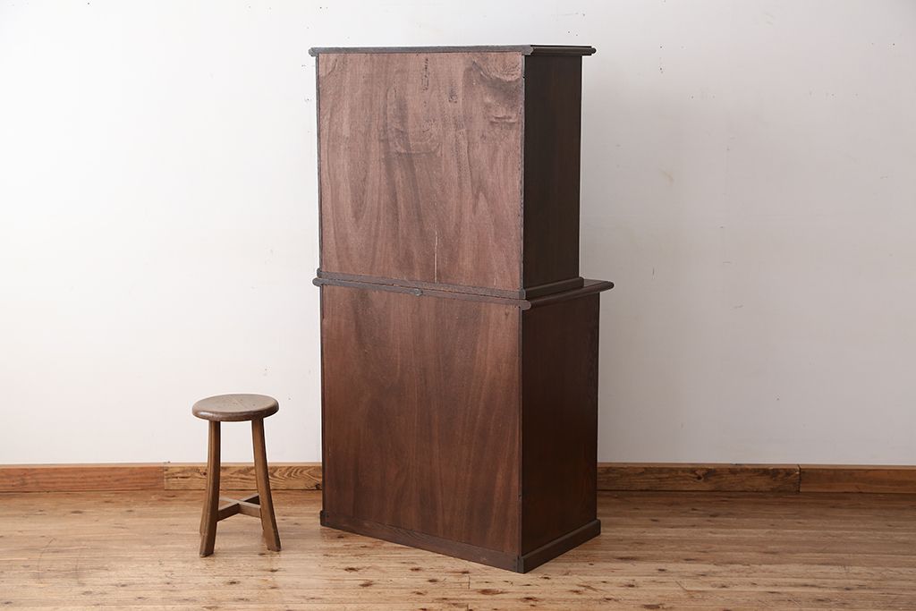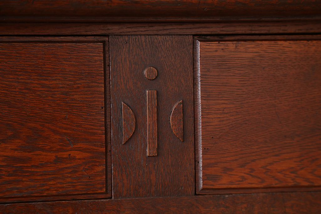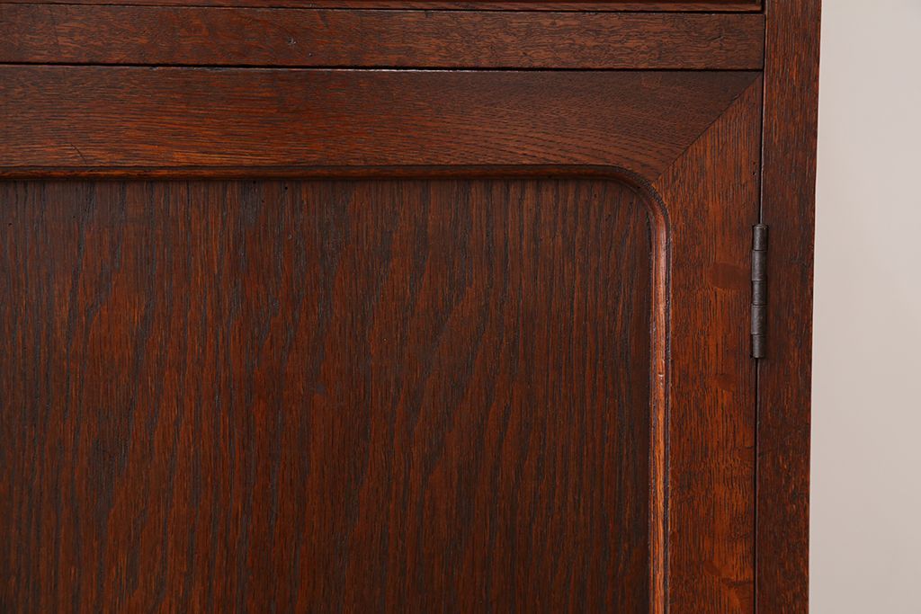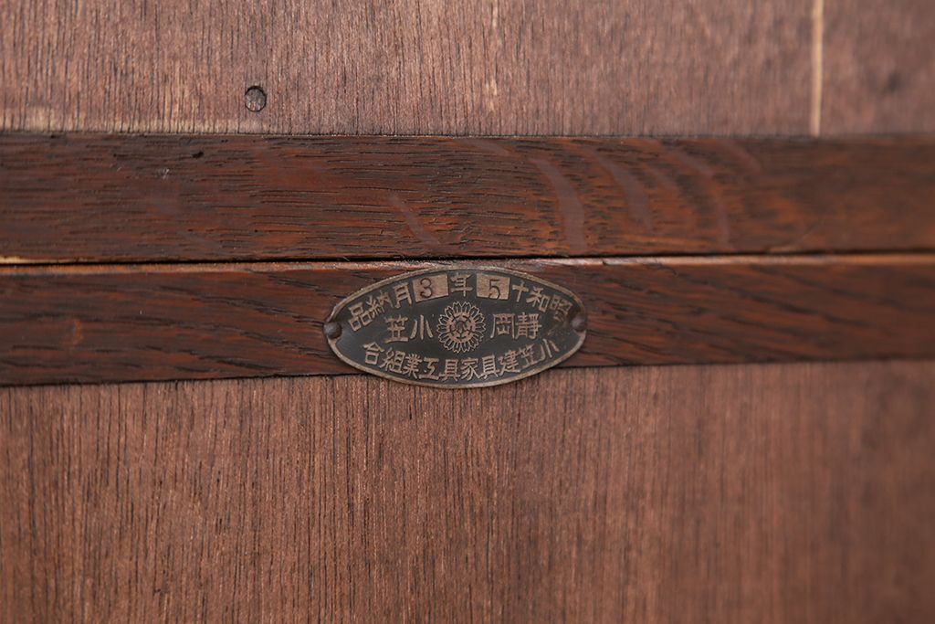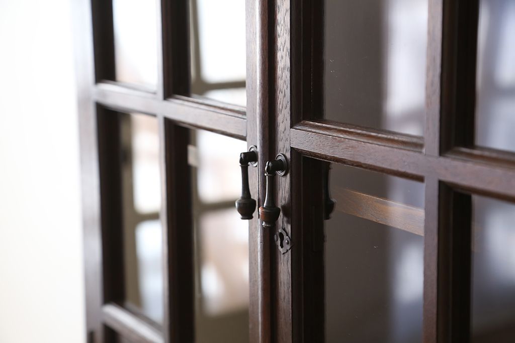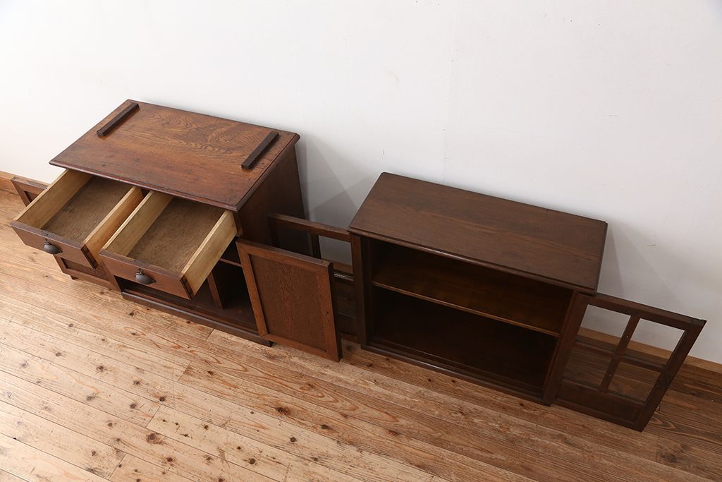 アンティーク家具 大正ロマン 特別注文造り 厚手ナラ材の上質な二段重ね食器棚(収納棚)