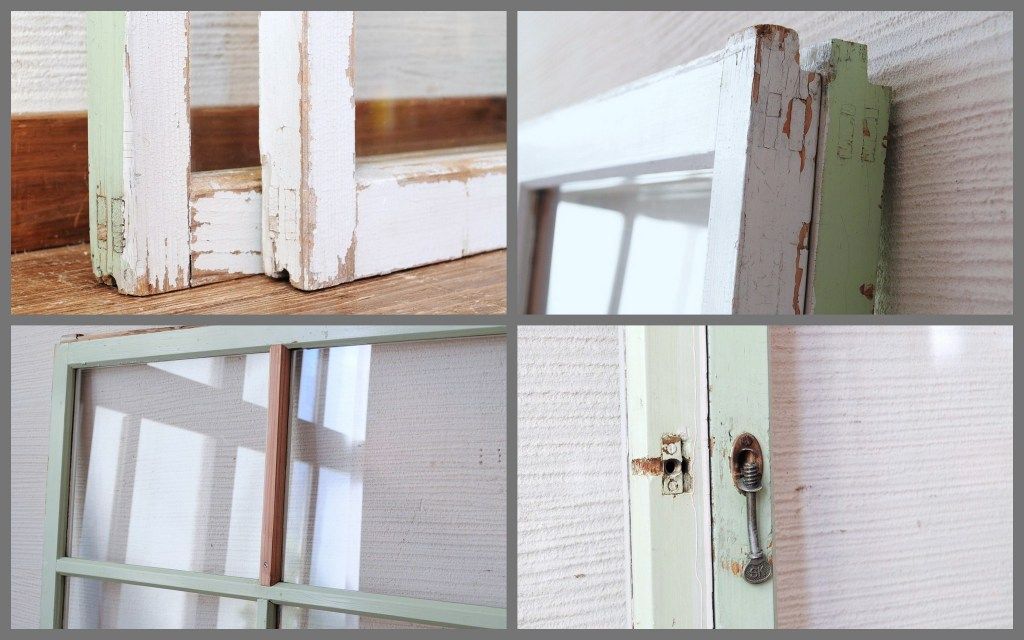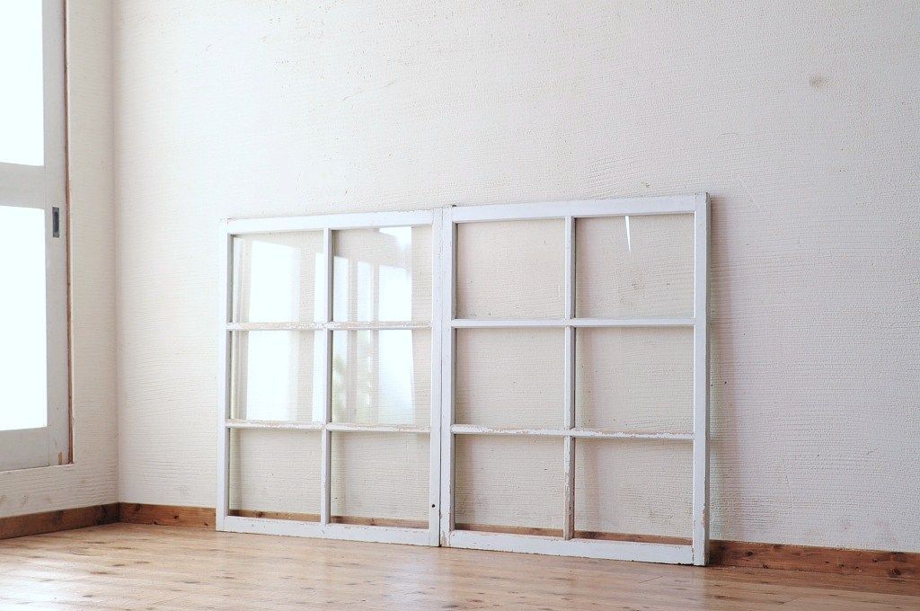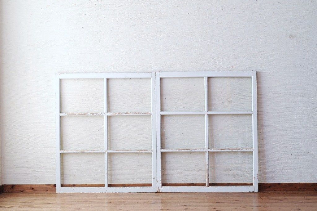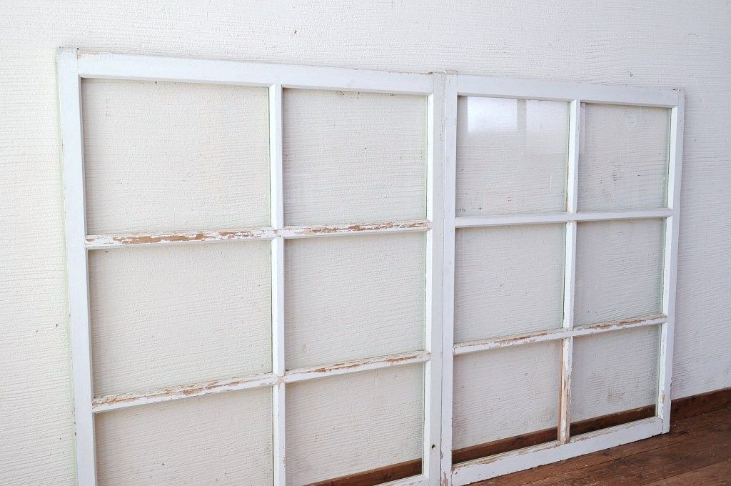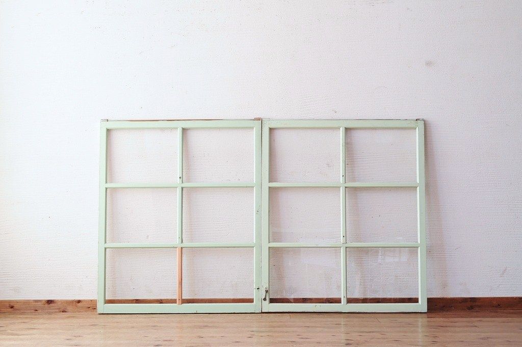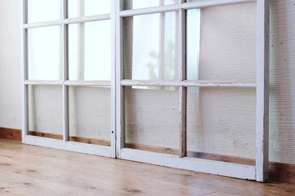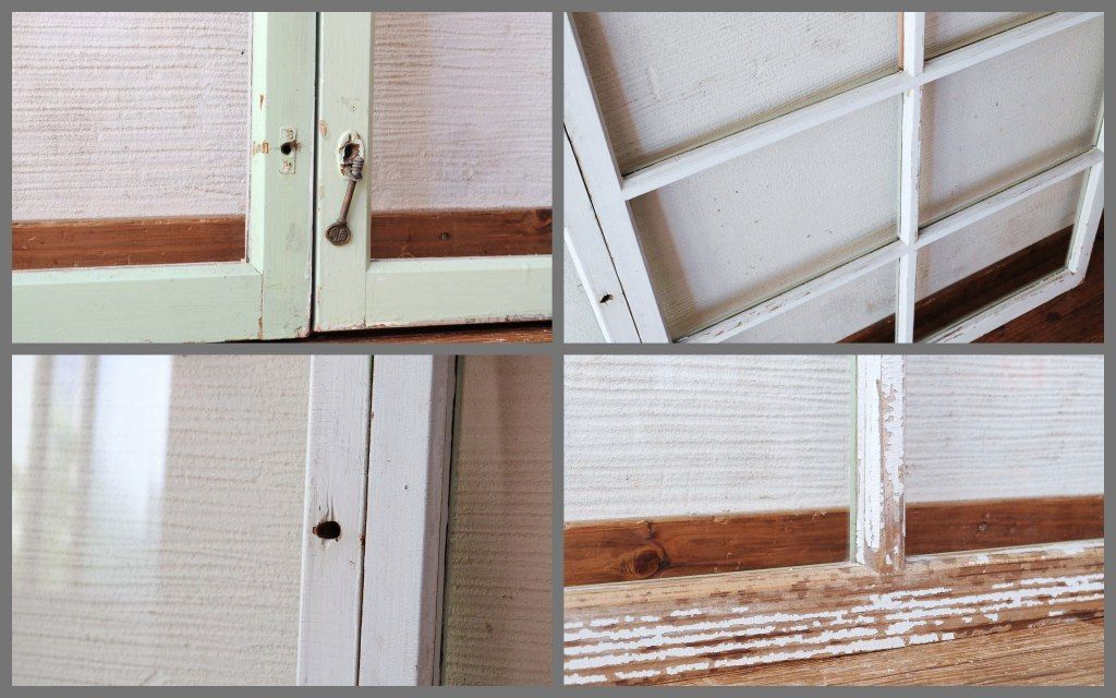 レトロ 古い学校のペンキの剥げた引き戸2枚セット2(窓)